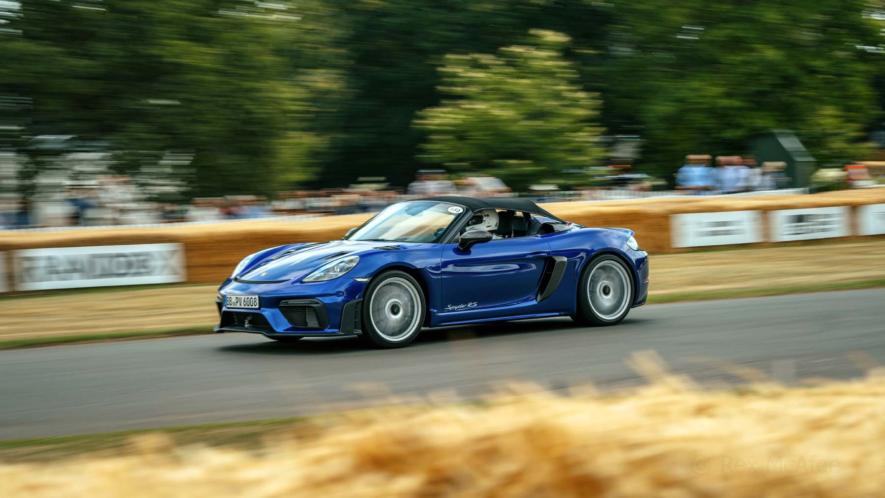 Porsche fans and owners enjoyed a whole host of action, with the focus on the challenging 1.16-mile hill-climb running through the center of the venue. One of the many Porsche models mastering its way up Goodwood’s famous hill climb was the very first Porsche sports car, the 1948 356 No 1. From the other end of the Porsche 75 Years spectrum was the recently announced 718 Spyder RS, which made its global dynamic debut on Goodwood hill.
