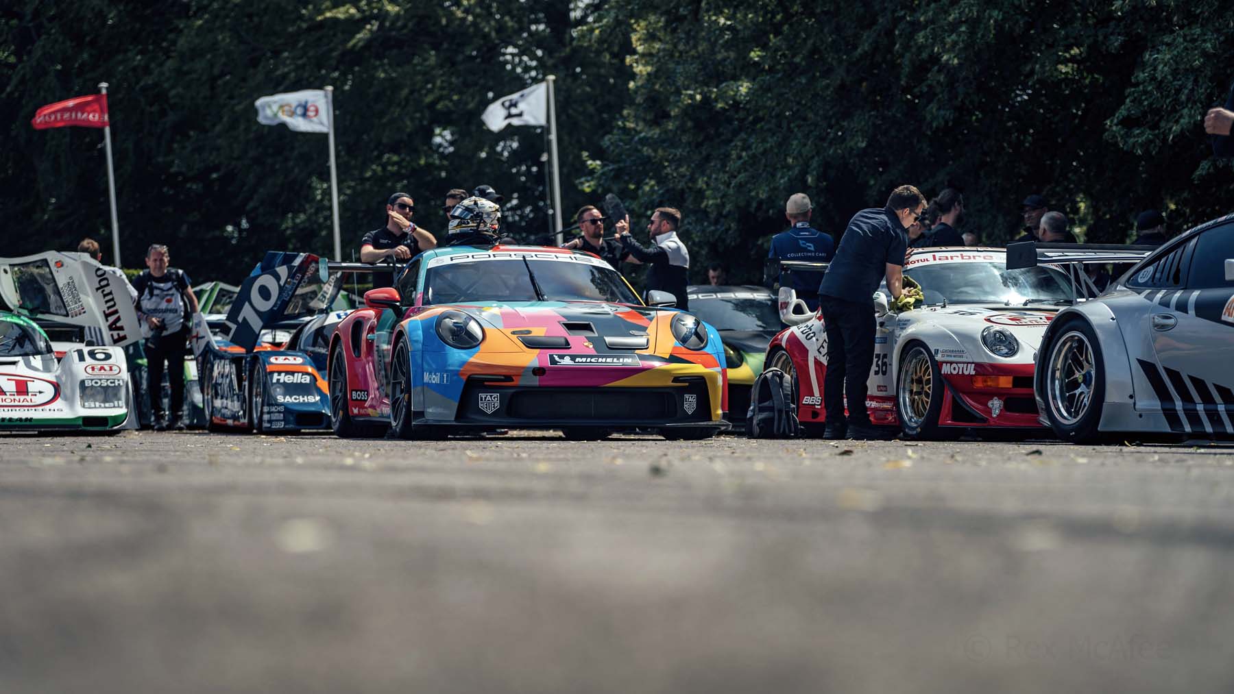 The festival welcomed an international entourage of approximately 70 media representatives, courtesy of Porsche. Given the abrupt cancellation on Saturday, an innovative approach was imperative to organize fresh activities for the day. A concerted overnight effort by the teams from Porsche Heritage and Museum and Porsche Cars Great Britain PR department, resulted in a successful development of a new agenda.