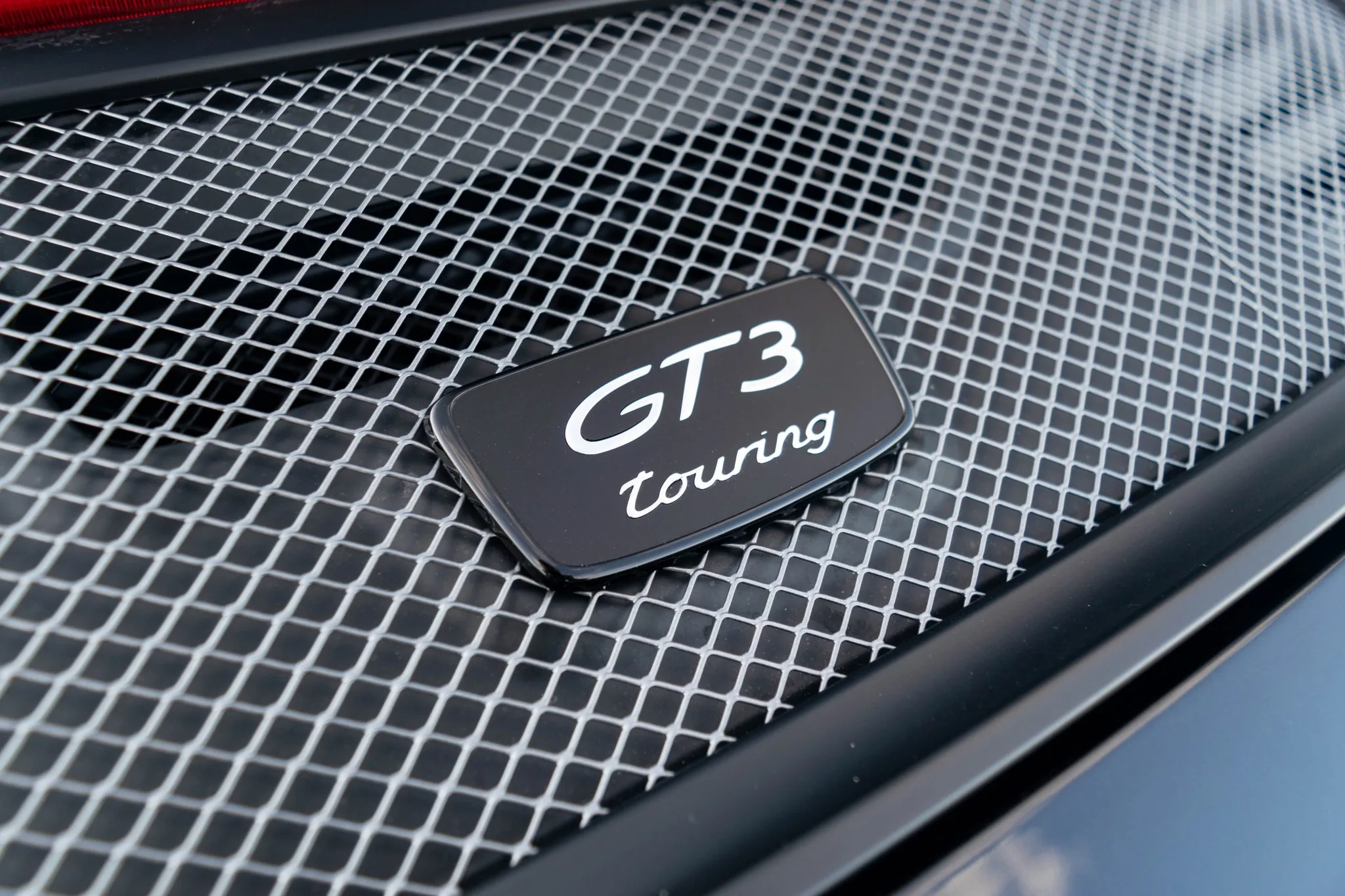 The GT3 Touring also includes a revised decklid with a mesh grille and a electrically erecting rear spoiler from the 991 Carrera, but with a Gurney flap on it to balance out the downforce created by the GT3 front spoiler.