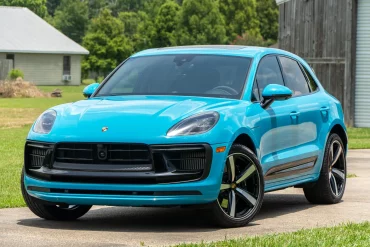 This 2023 Porsche Macan GTS is finished in Miami Blue over Black leather with Chalk stitching and was ordered with...
