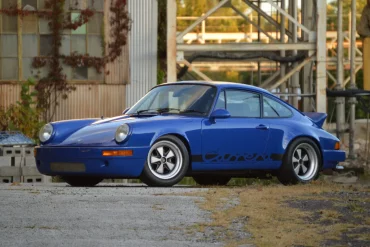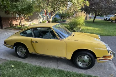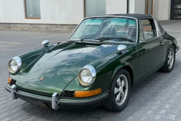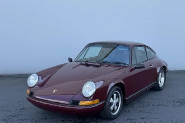 This 1971 Porsche 911T coupe has been modified with flared steel rear fenders, H4 headlights, staggered-width 15″ Fuchs alloy wheels,...