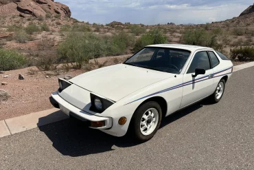 This 1977 Porsche 924 Championship Edition features an Alpine White finish with red and blue stripes modeled after those on...