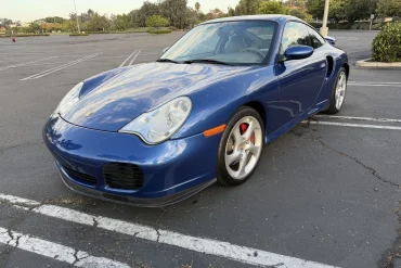 This 2004 Porsche 911 Turbo coupe is finished in Cobalt Blue Metallic over Graphite Grey full leather and was reportedly...