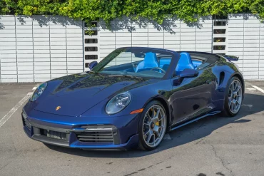 This 2022 Porsche 911 Turbo S is a Gentian Blue Metallic-finished cabriolet and has 985 miles following registration history in...
