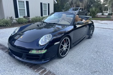 This 2007 Porsche 911 Carrera S cabriolet has been outfitted with an aftermarket body kit, a GT2-style rear wing, LED...