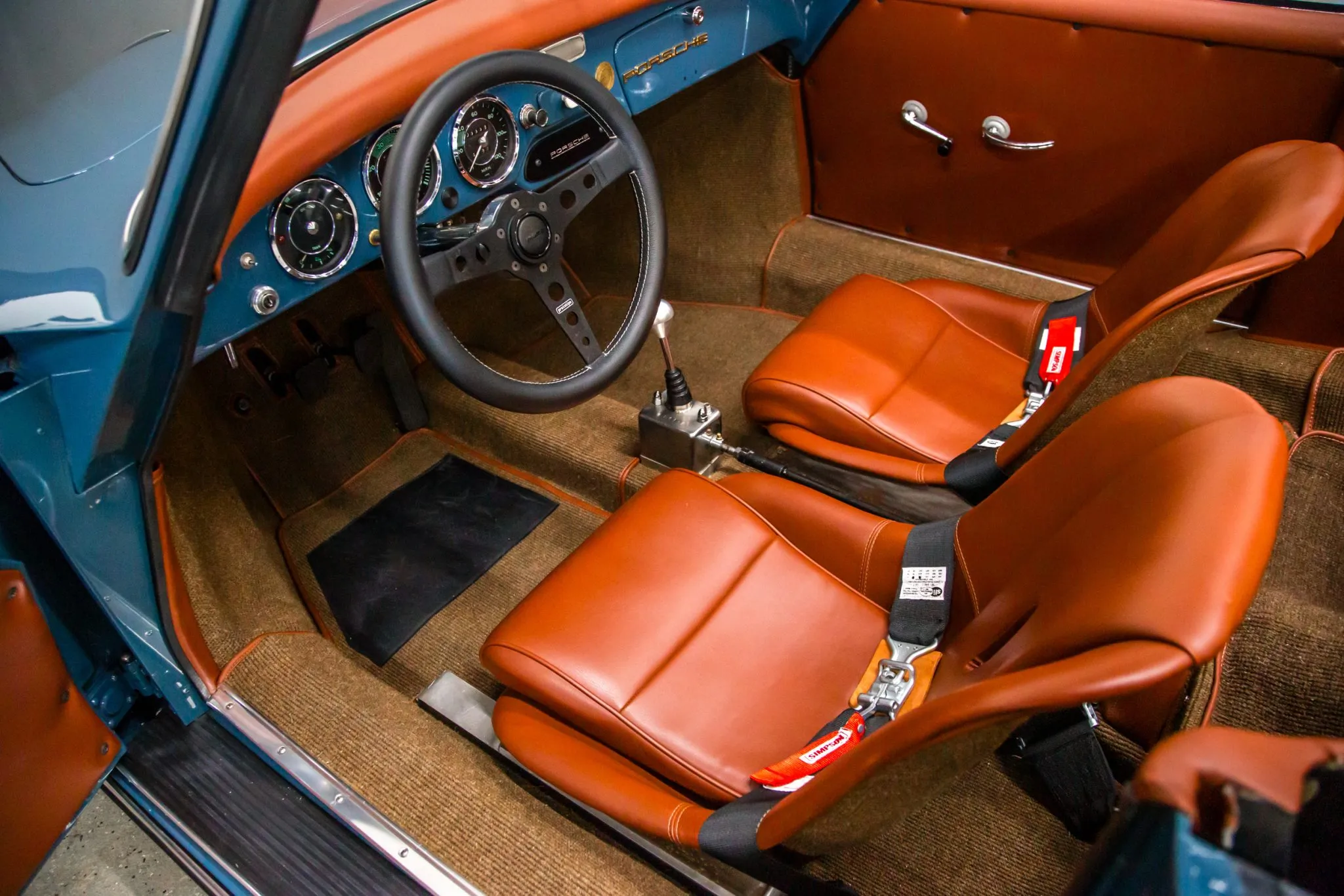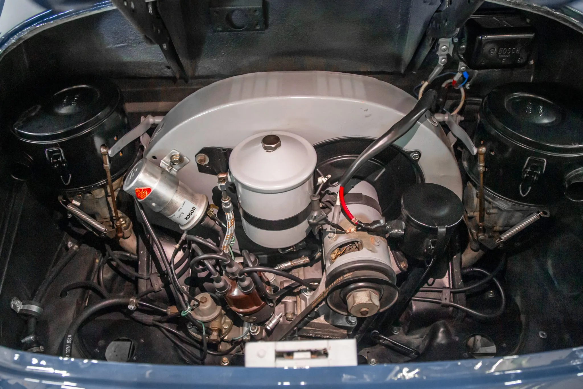This 1957 Porsche 356A cabriolet was repainted Aquamarine Blue, and its replacement flat-four was fitted with a big-bore kit in the mid-2010s.