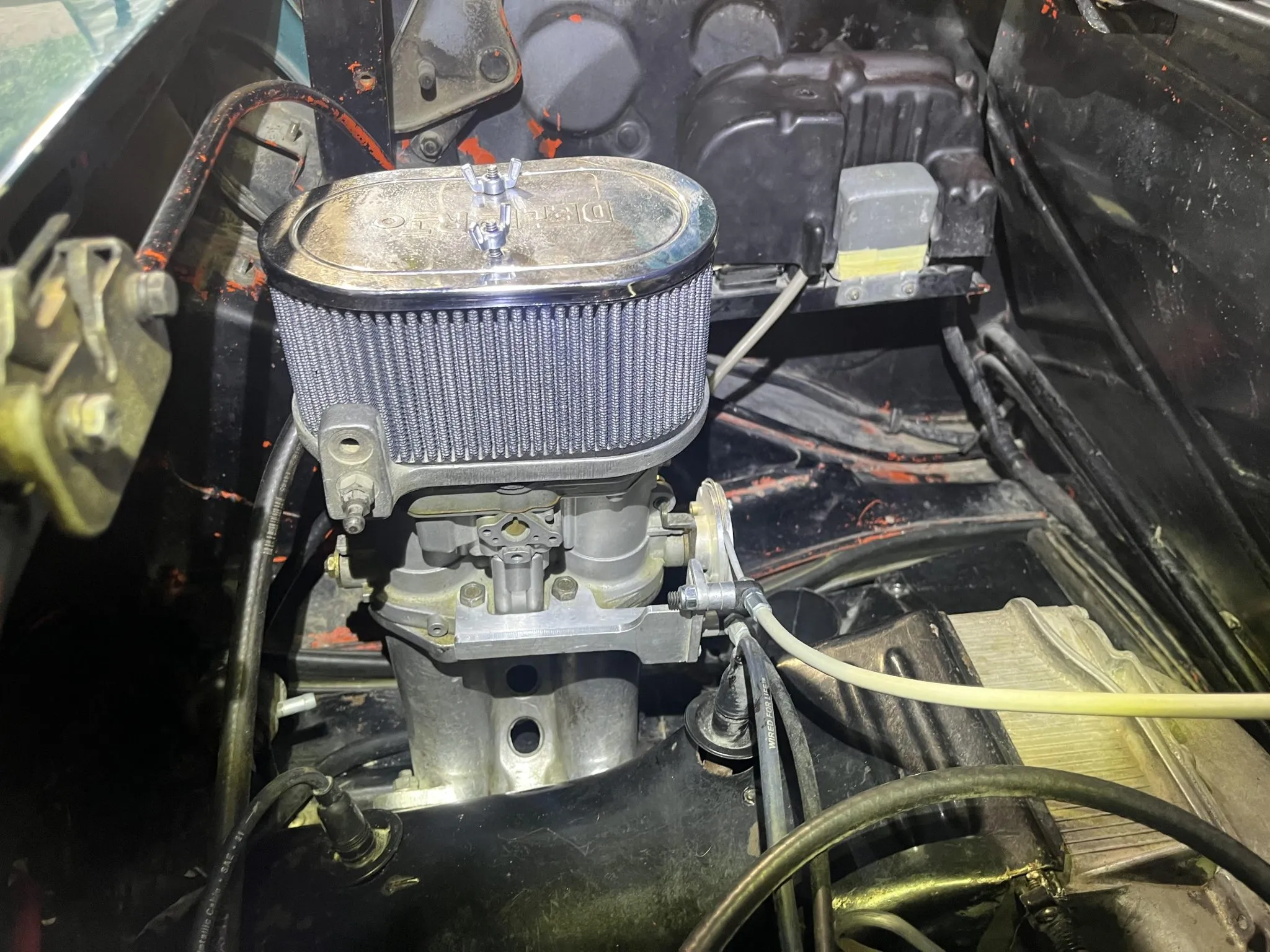 Powered by an air-cooled 2,056cc flat-four paired with a five-speed manual transaxle, the car is equipped with a high-performance camshaft, a full-flow oiling system, rebuilt dual Dellorto carburetors, disc brakes, 15″ alloy wheels, pop-up headlights, a removable roof panel, a cabin heater, and crank windows.