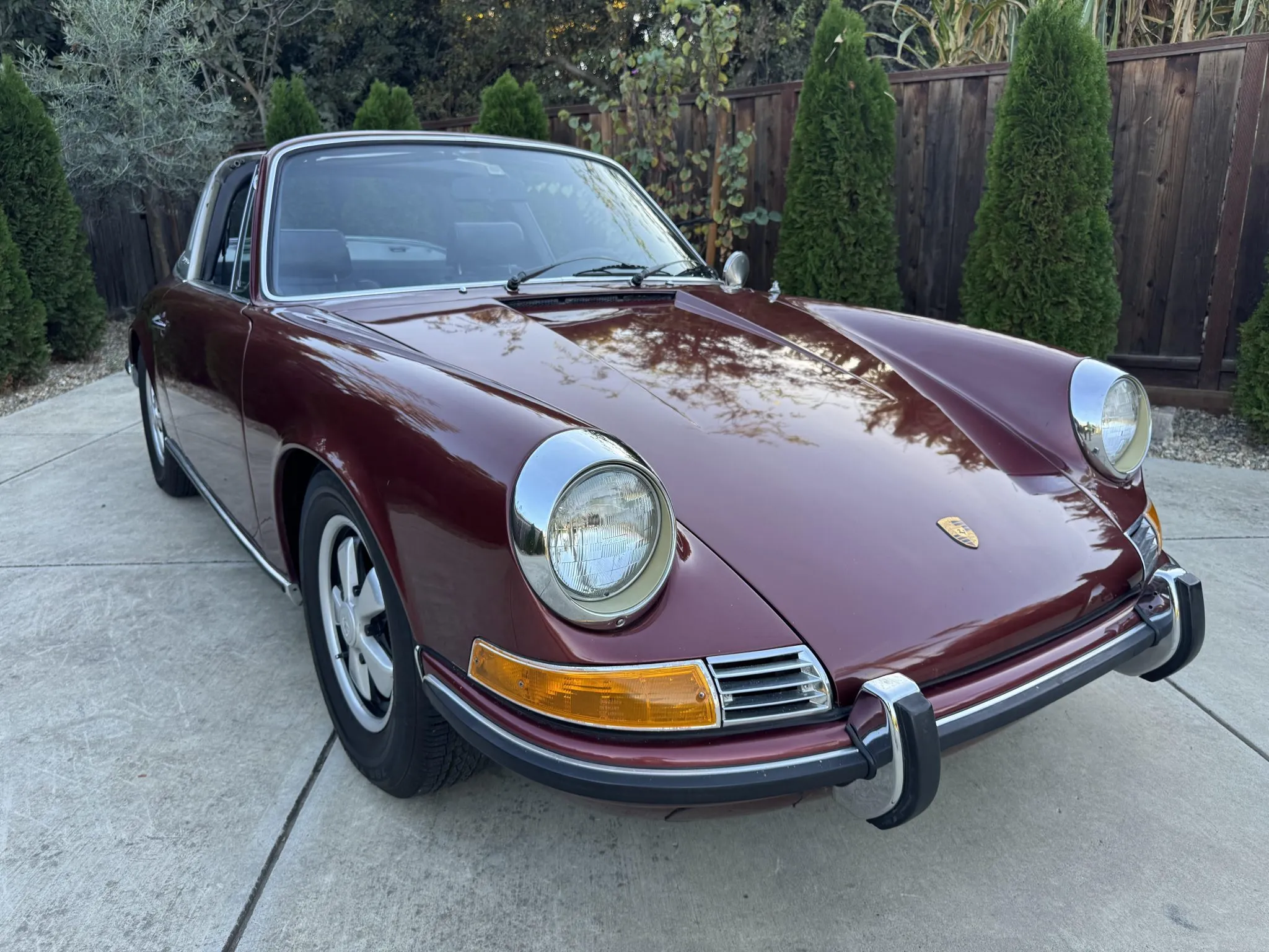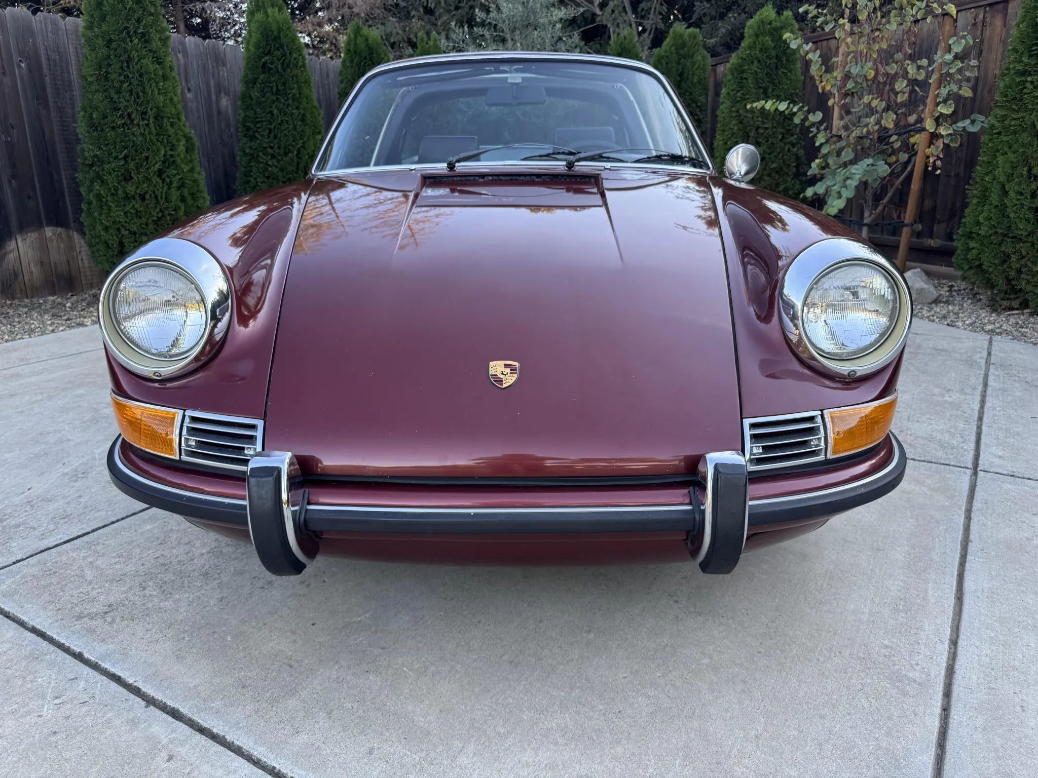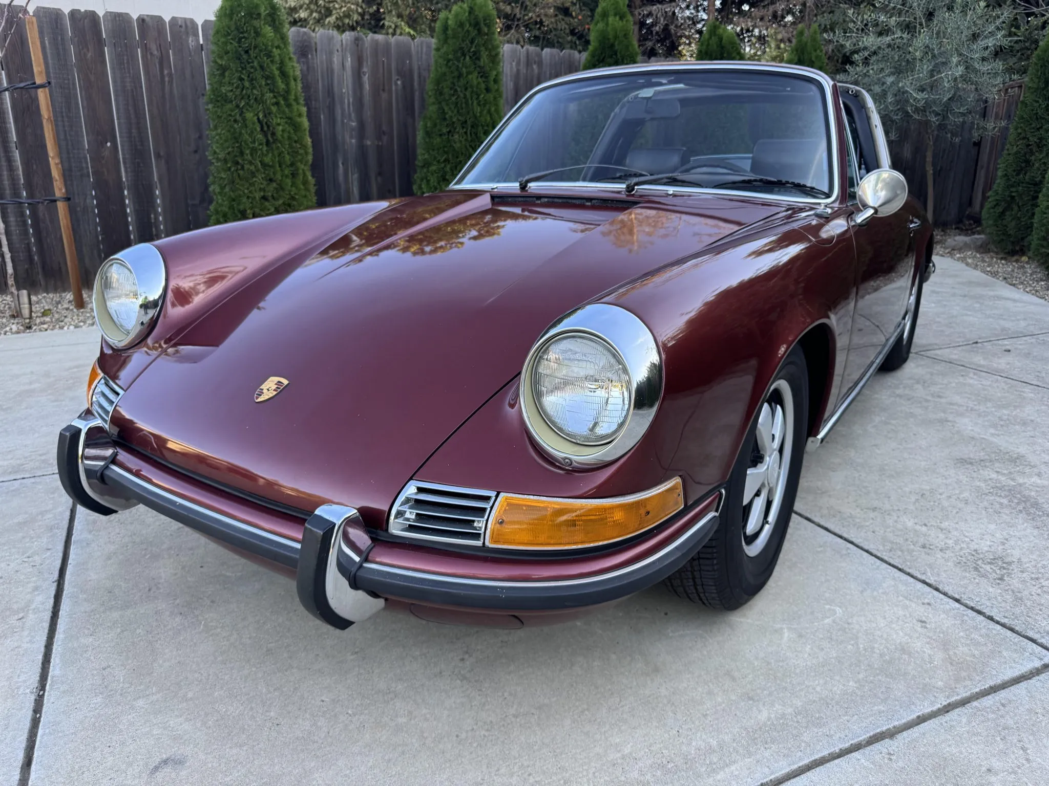 It was repainted burgundy before that time, and in 2025 the car was refurbished with an overhaul of the brake system, a replacement clutch for the five-speed 901 manual transaxle, and a rebuild of the twin Weber carburetors for the 2.2-liter flat-six.