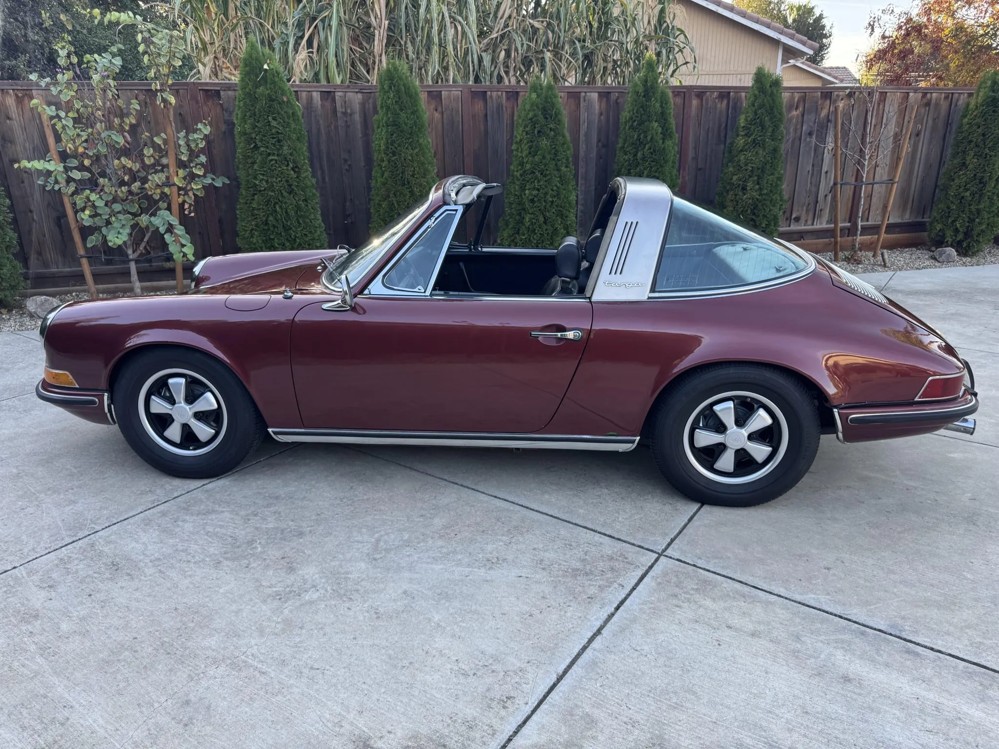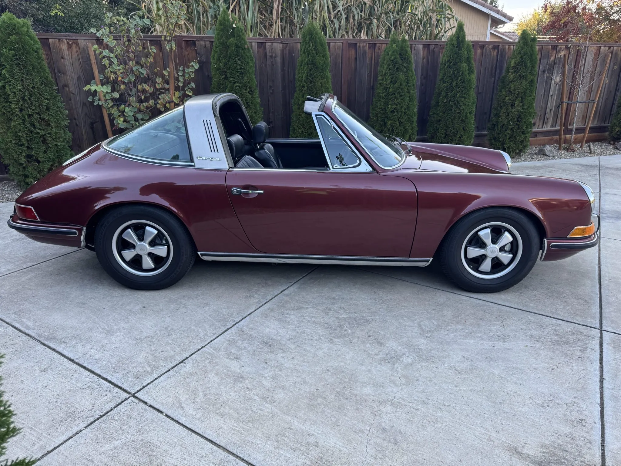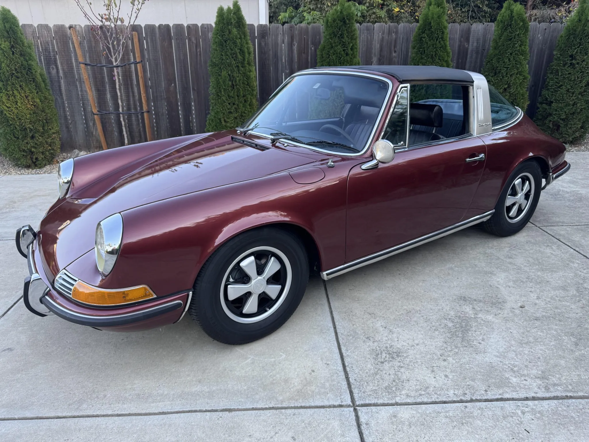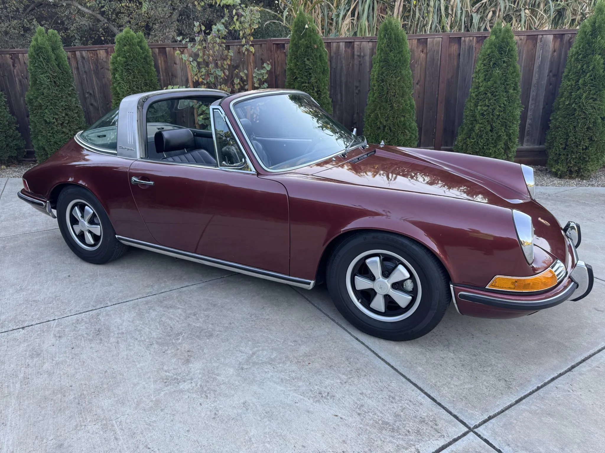 It was repainted burgundy before that time, and in 2025 the car was refurbished with an overhaul of the brake system, a replacement clutch for the five-speed 901 manual transaxle, and a rebuild of the twin Weber carburetors for the 2.2-liter flat-six.