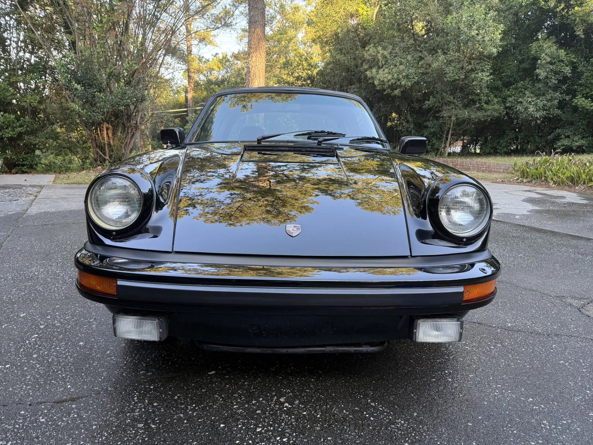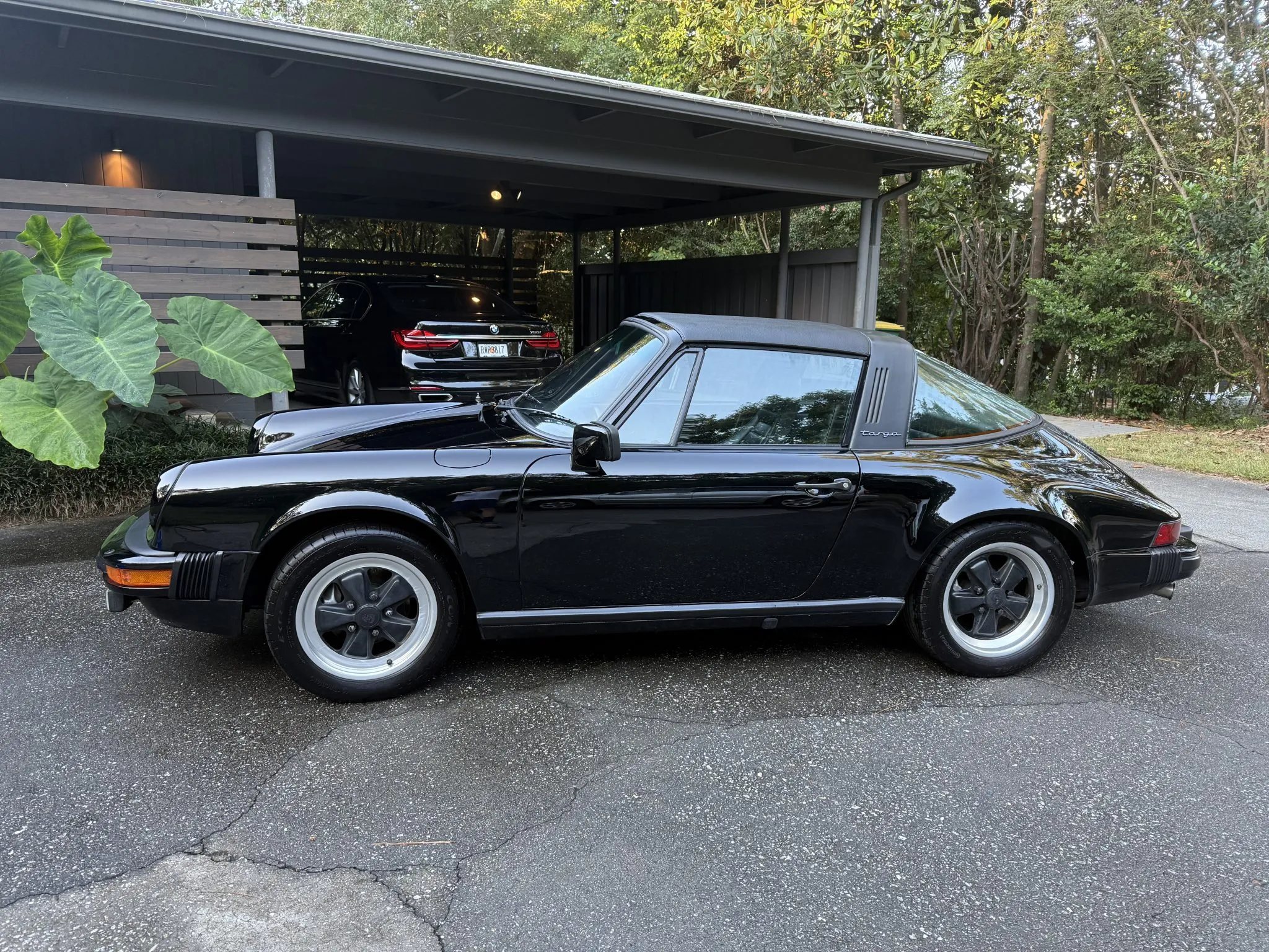 This 1983 Porsche 911SC coupe is finished in black over black leather and is powered by a 3.0-liter flat-six paired with a five-speed manual transaxle.