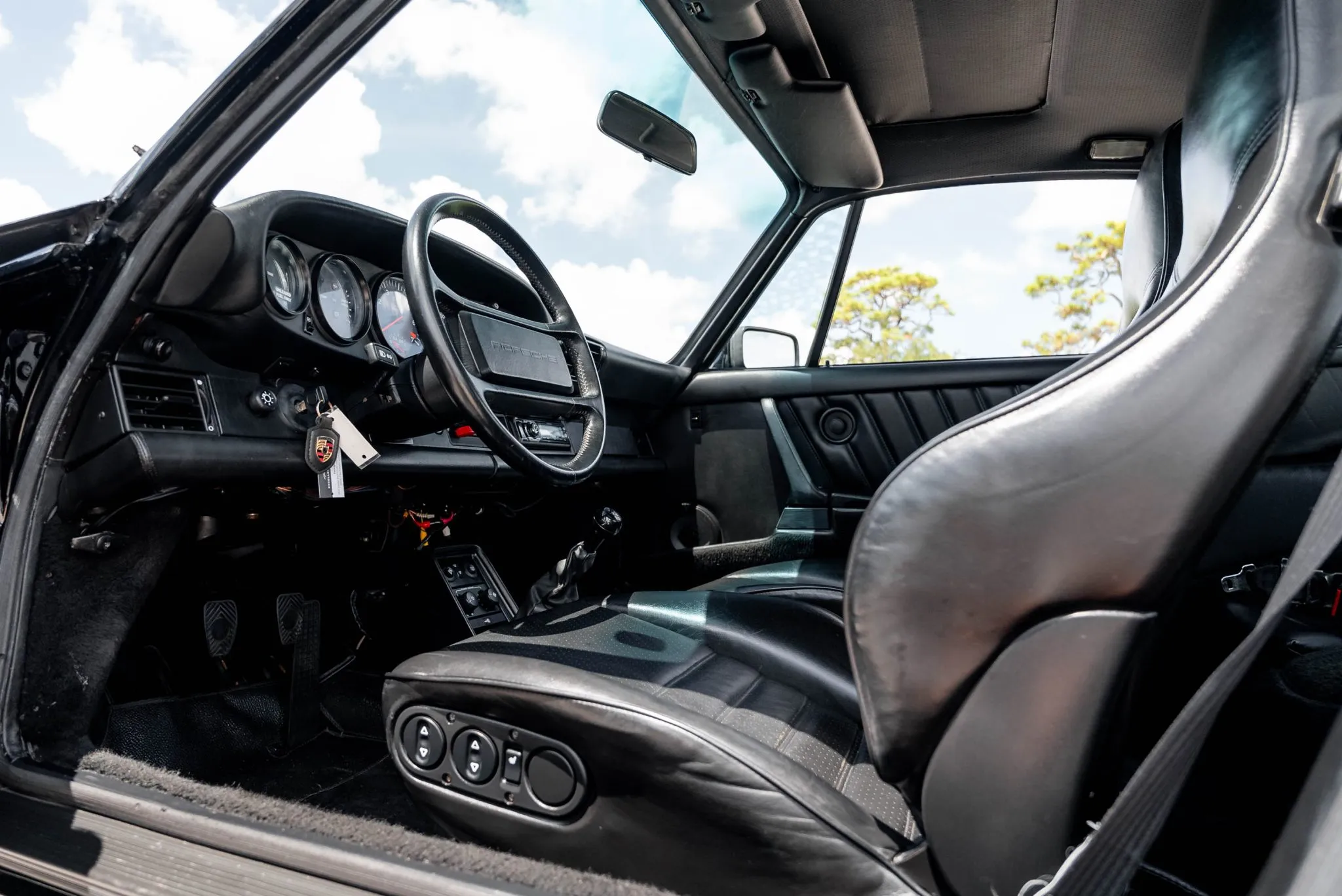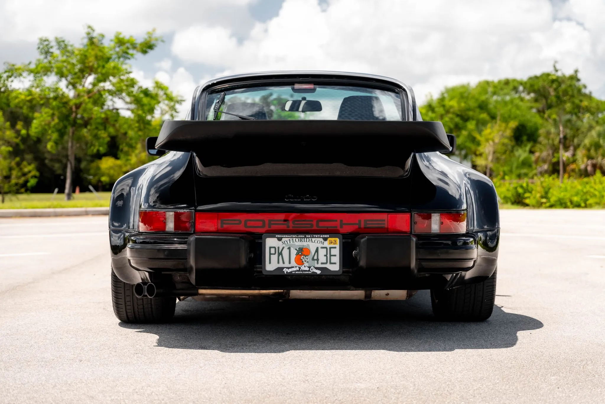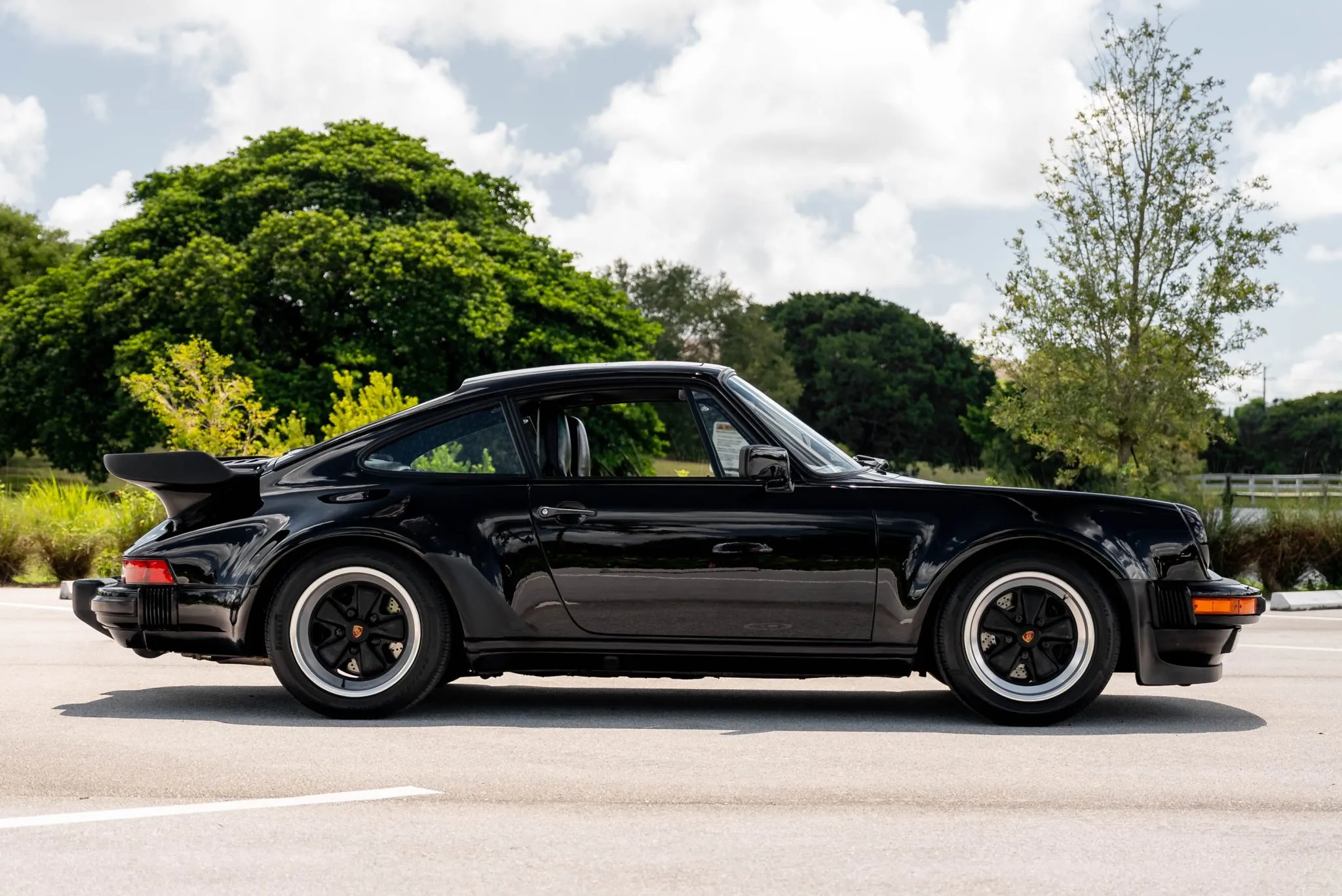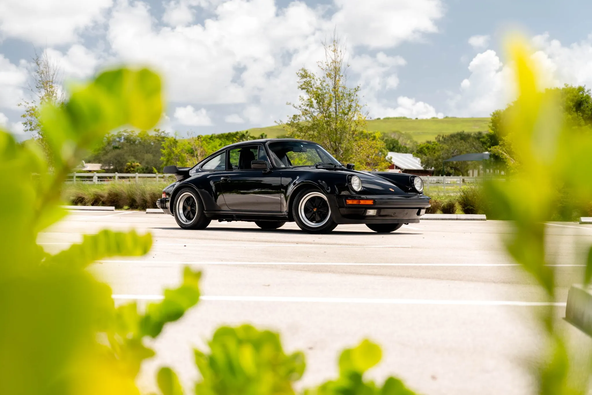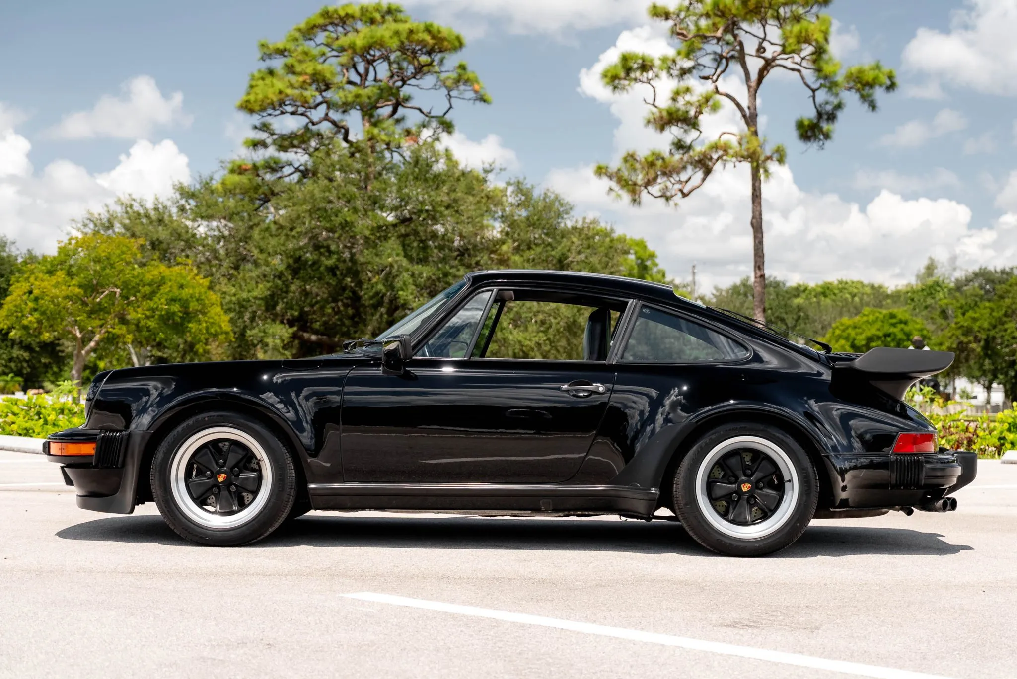 This 930 Turbo coupe is offered by the selling dealer with an owner’s manual, service records, an accident-free Carfax report, and a clean Florida title