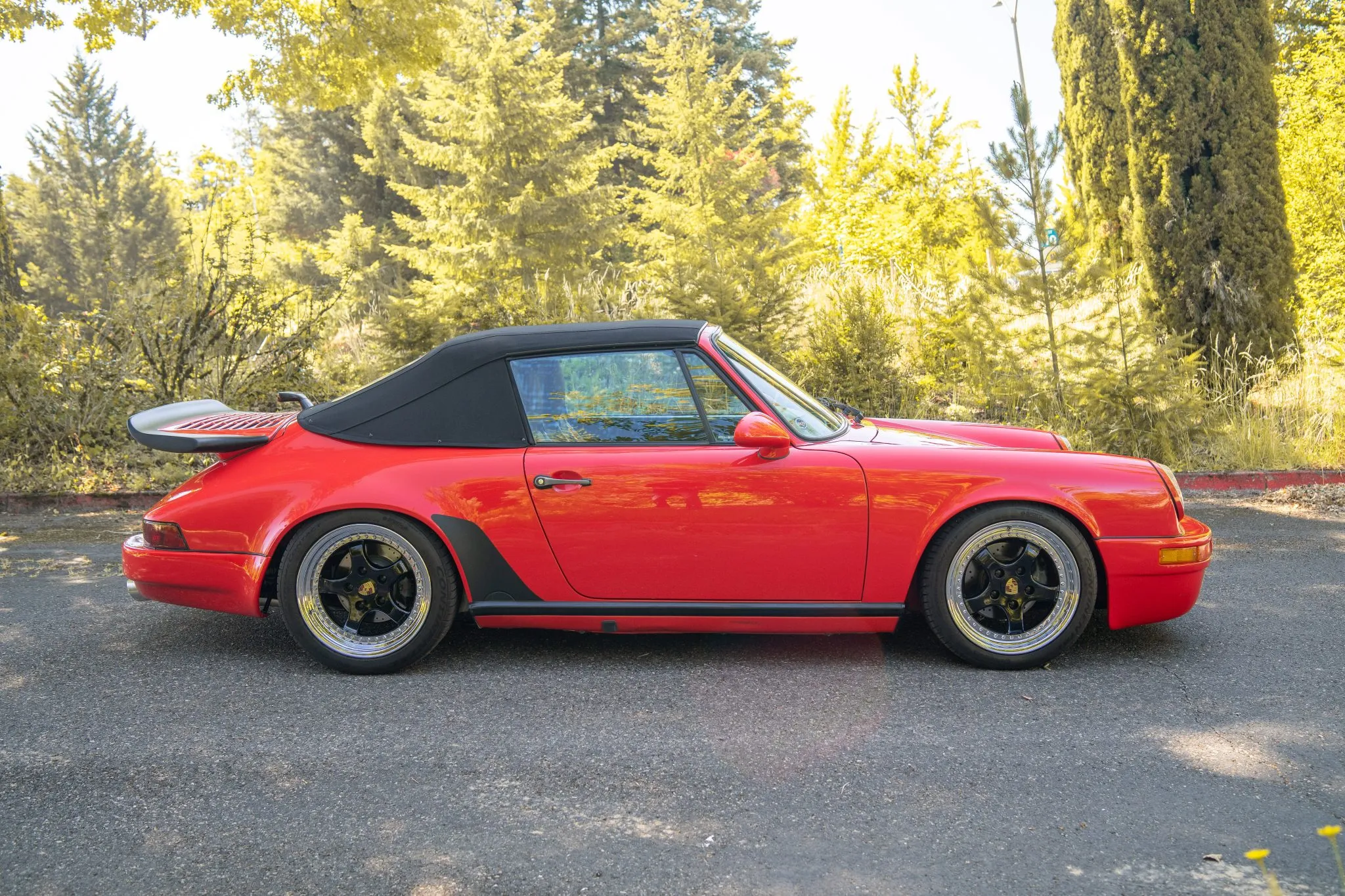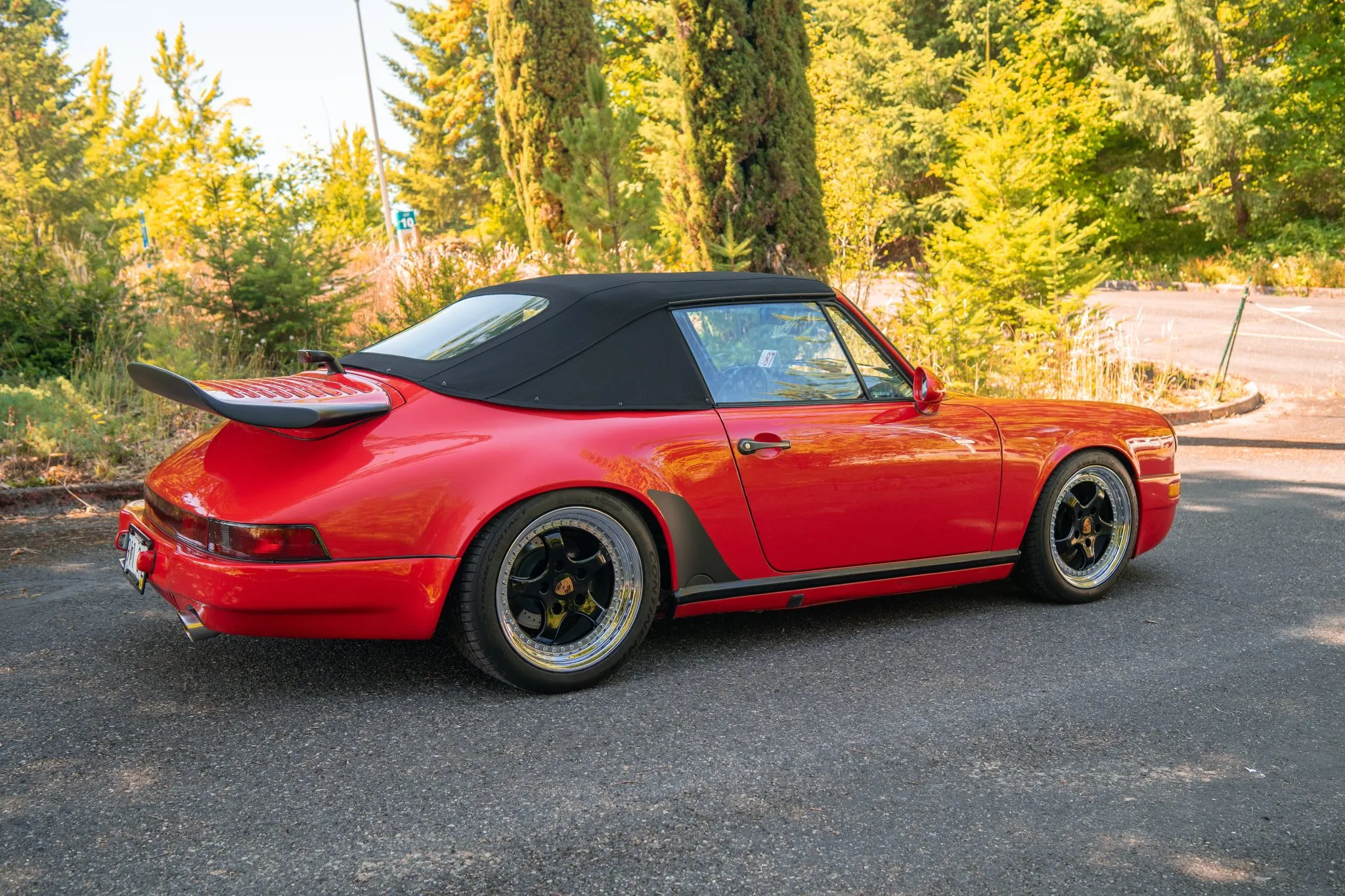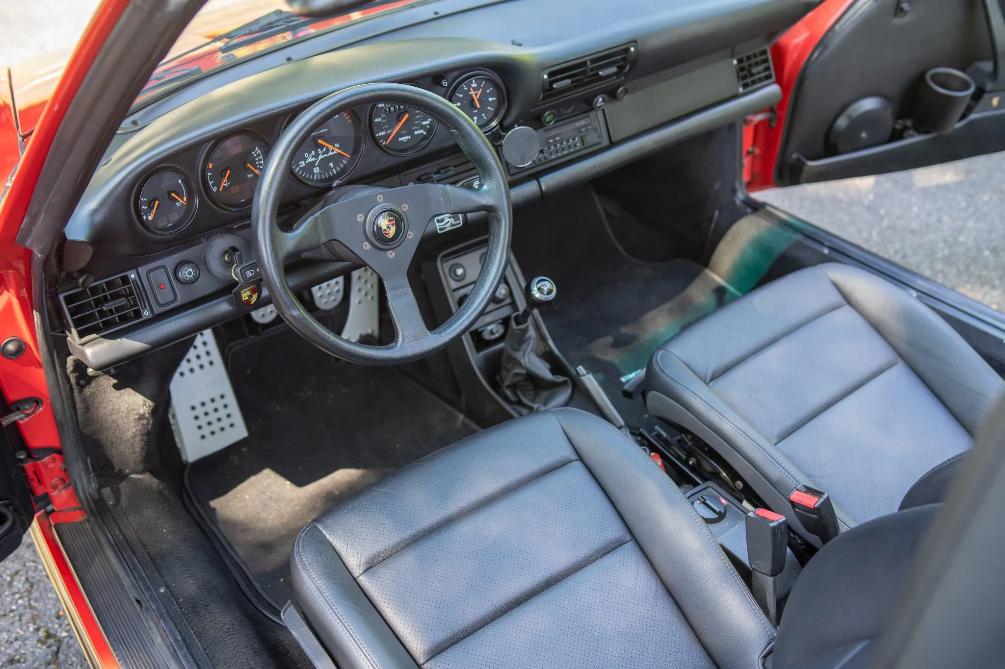 The car is powered by a 3.2-liter flat-six that has been equipped with a Weltmeister performance chip and a Fabspeed exhaust system. It is finished in Guards Red over black leather, and shifting is through a G50 five-speed manual transaxle.