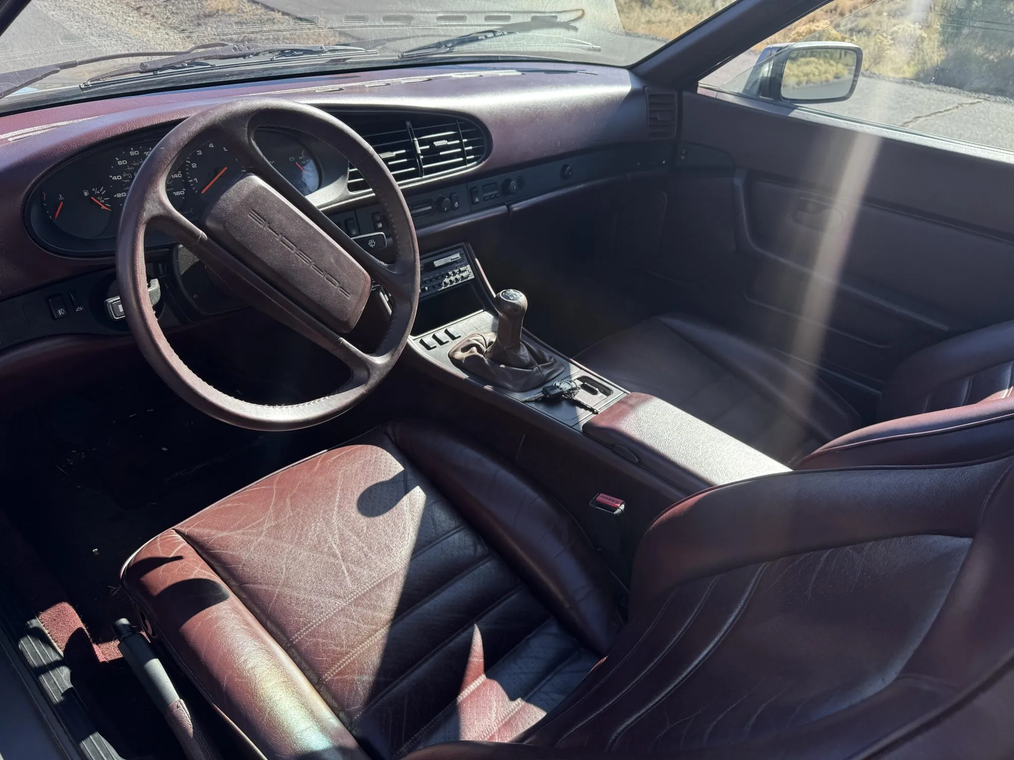 This 1987 Porsche 944S spent time in storage before it was acquired by the seller in 2025. It is finished in Slate Gray Metallic over burgundy leather and is powered by a 2.5-liter inline-four paired with a five-speed manual transaxle.