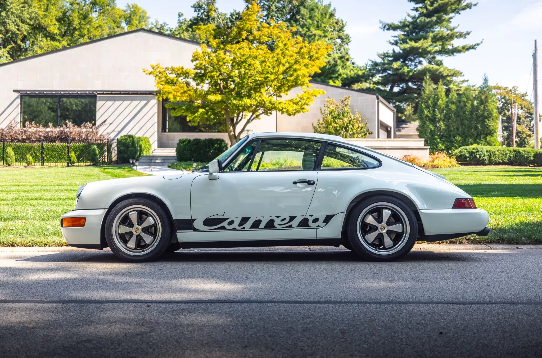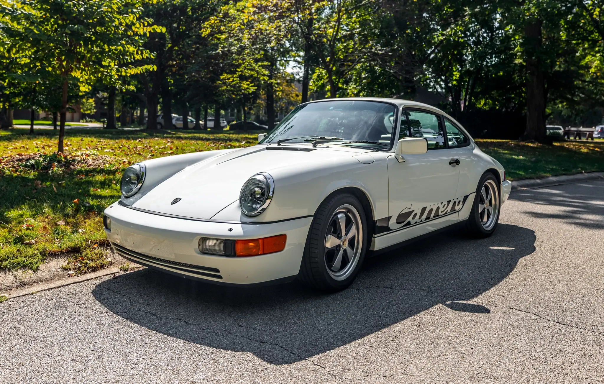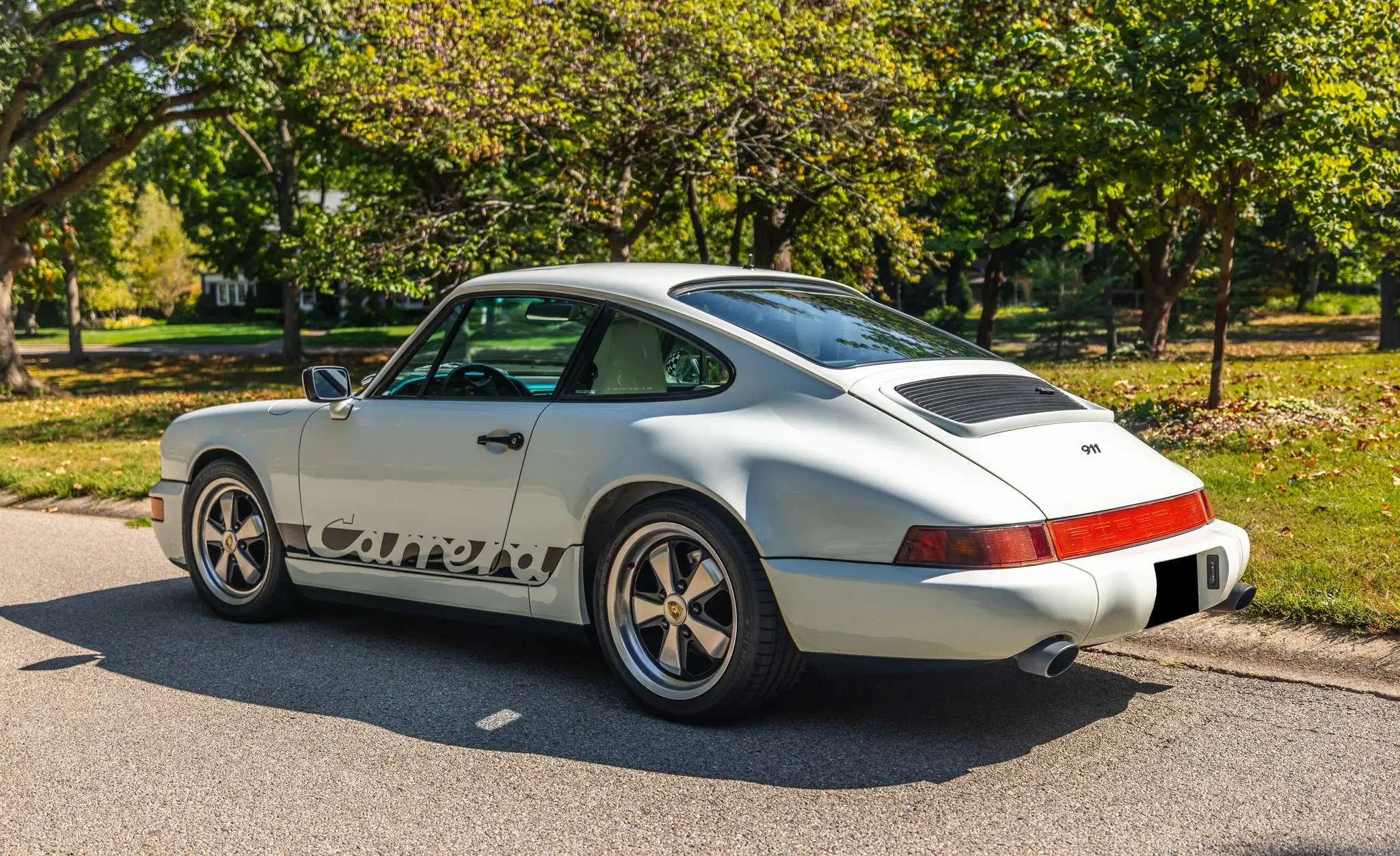Finished in Grand Prix White over a Linen Grey leather interior, this 1990 Porsche 964 Carrera 4 Coupe was sold new in California, equipped with a 5-speed G50 manual transaxle and a 3.6-liter flat-six engine powering all four wheels.