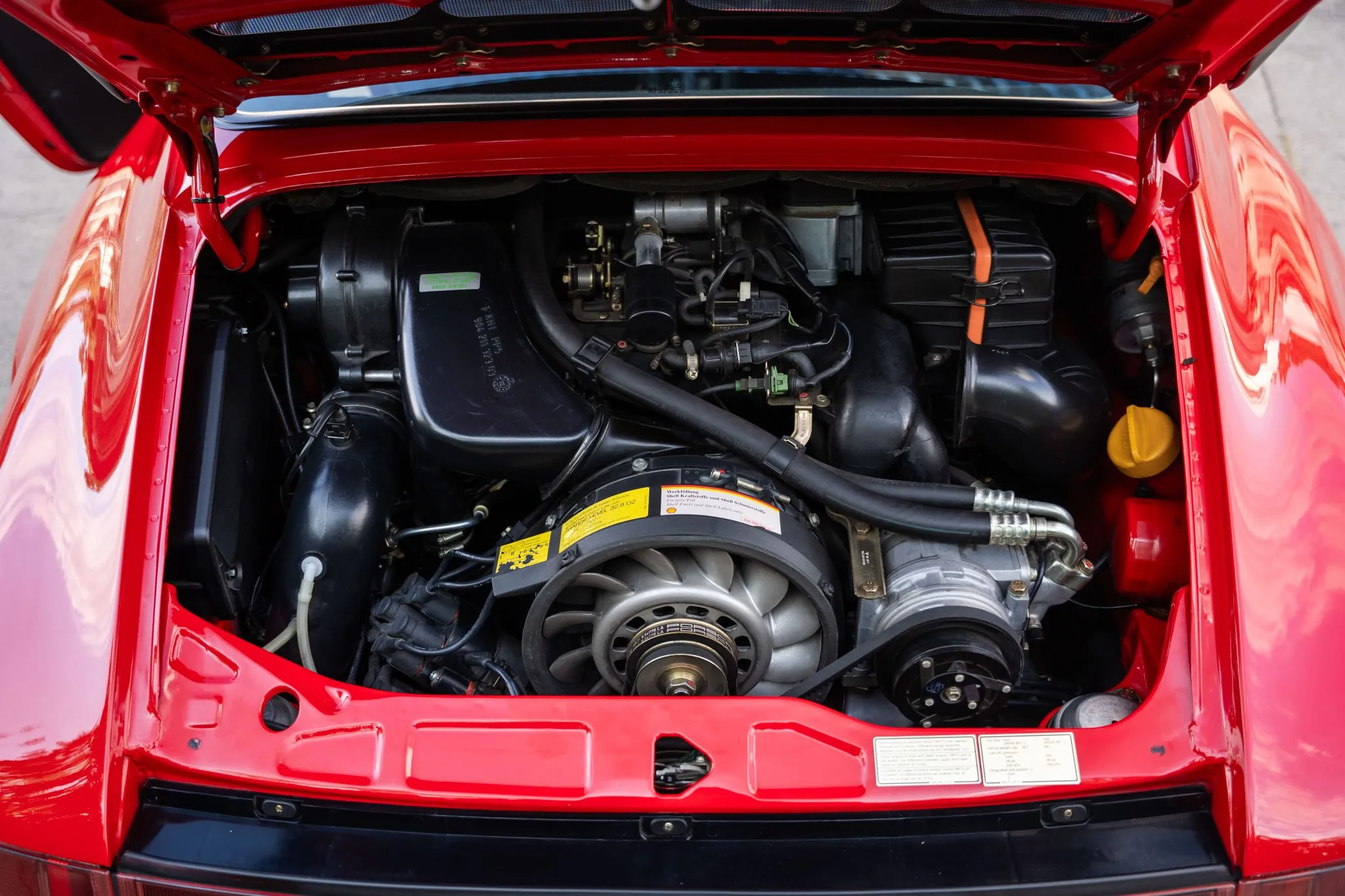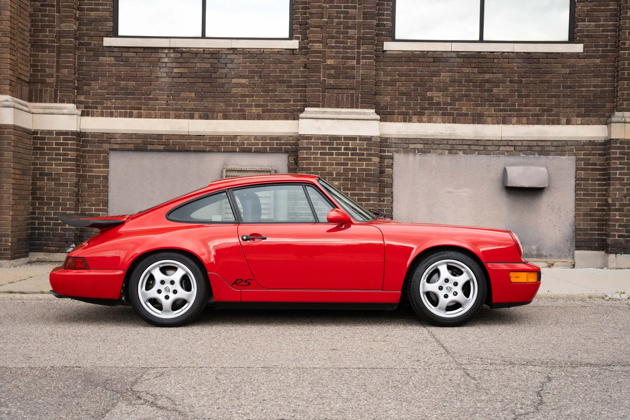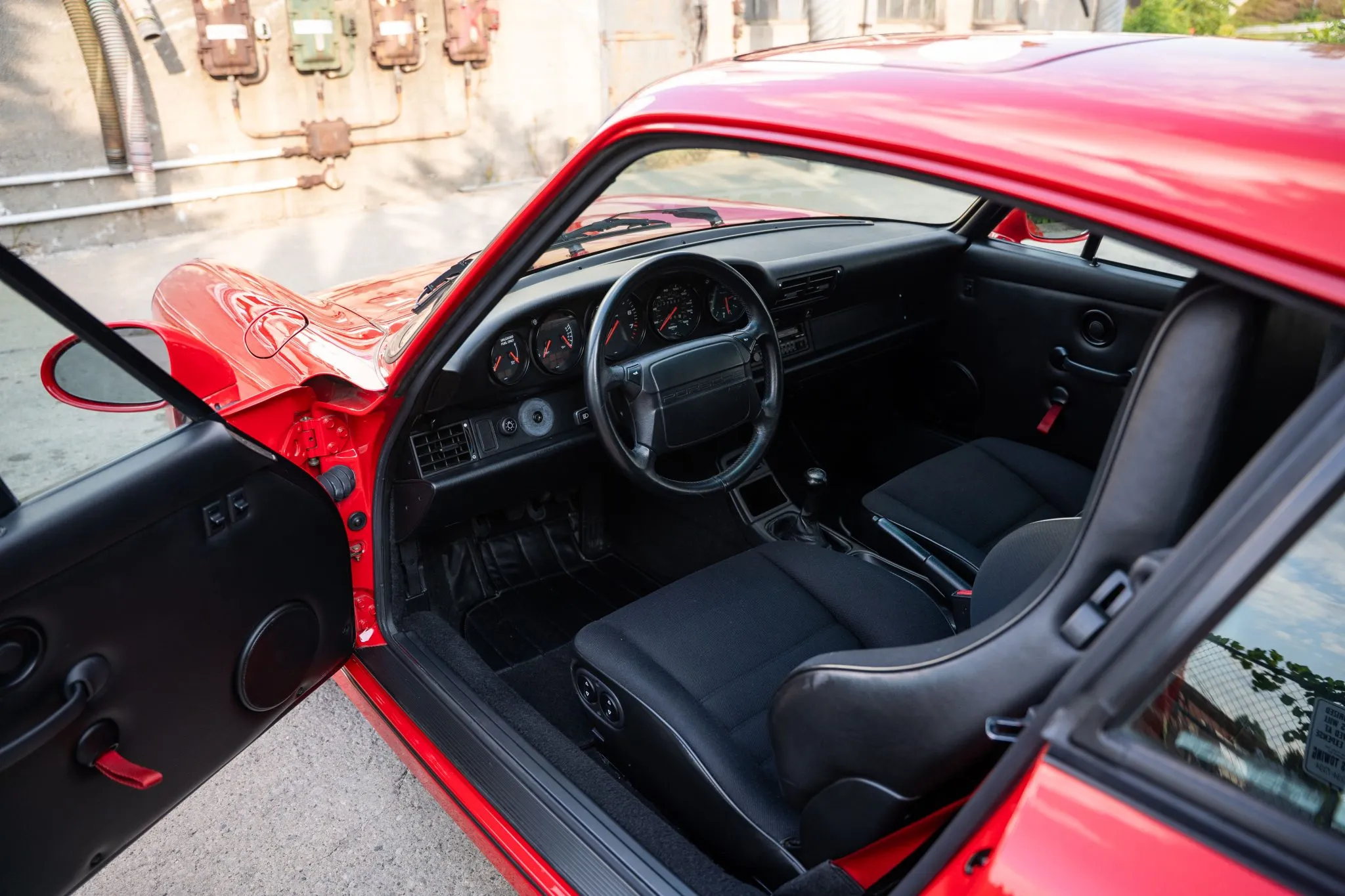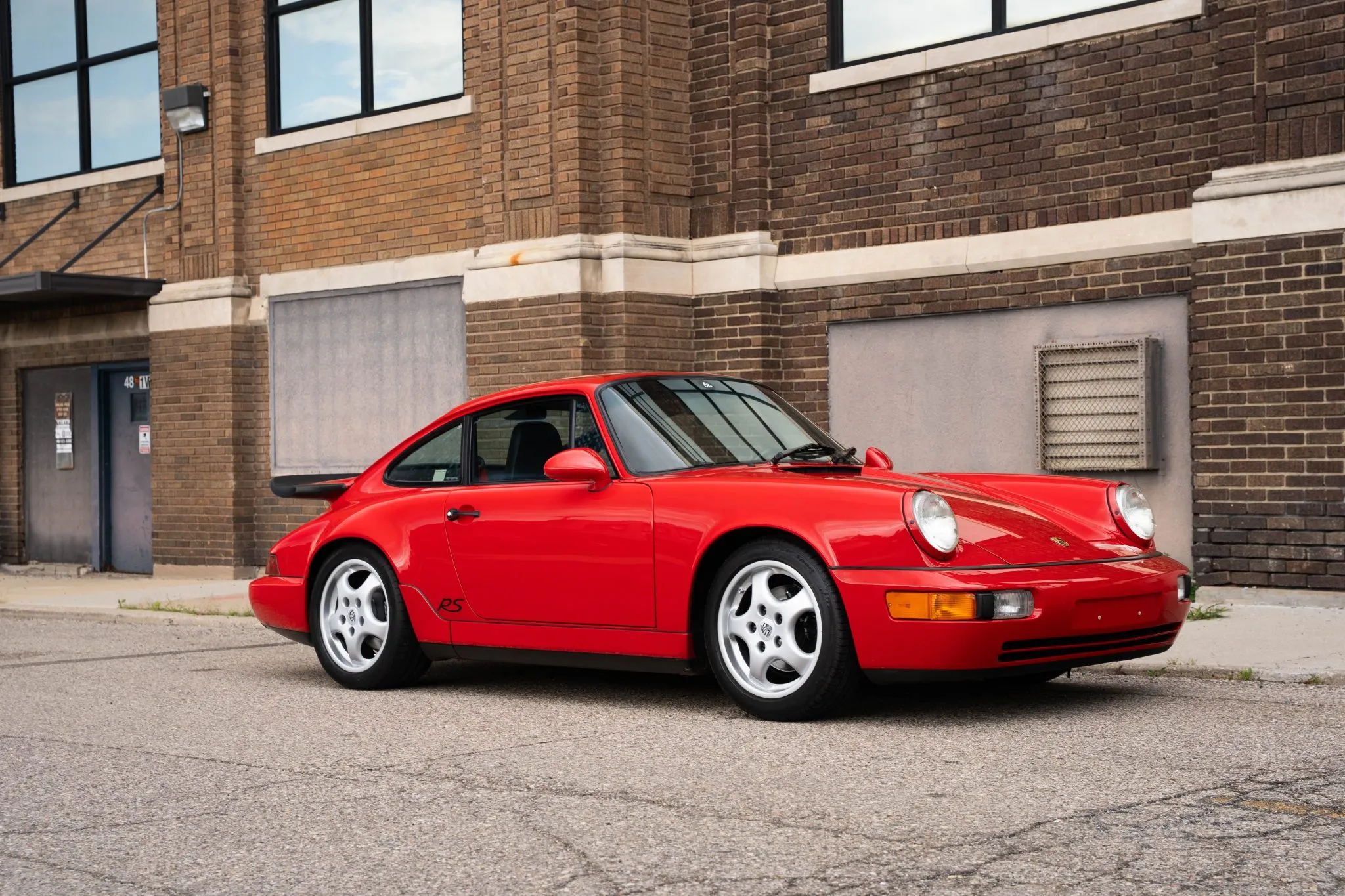 This 1993 Porsche 911 RS America is one of 701 examples built during a two-year production run. It is powered by a 3.6-liter flat-six paired with a five-speed manual transaxle and is finished in Guards Red over black cloth.