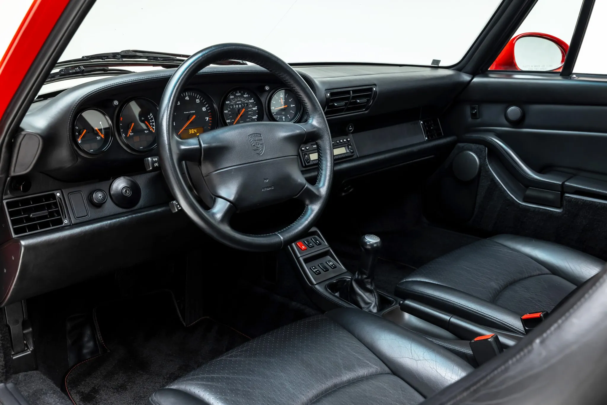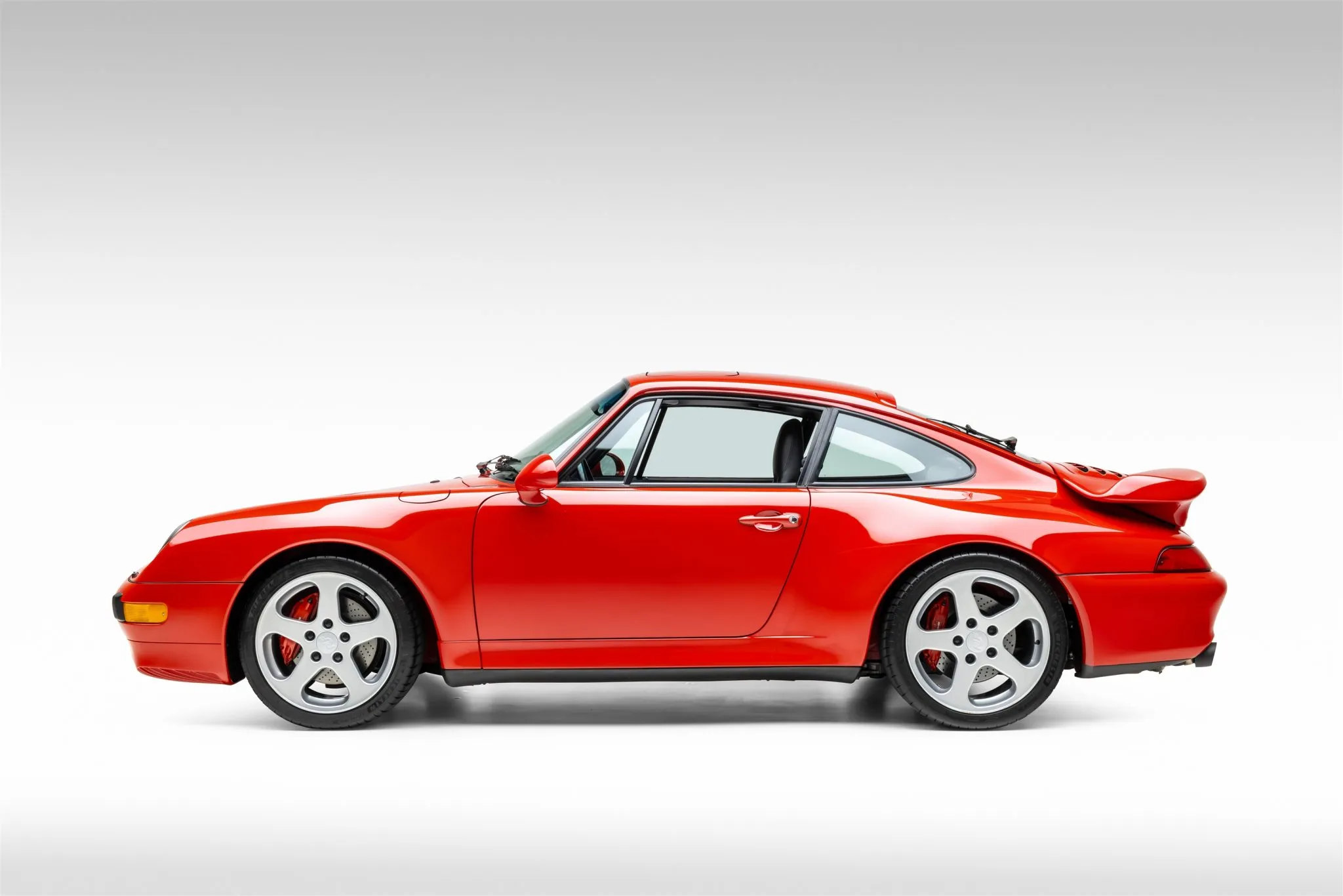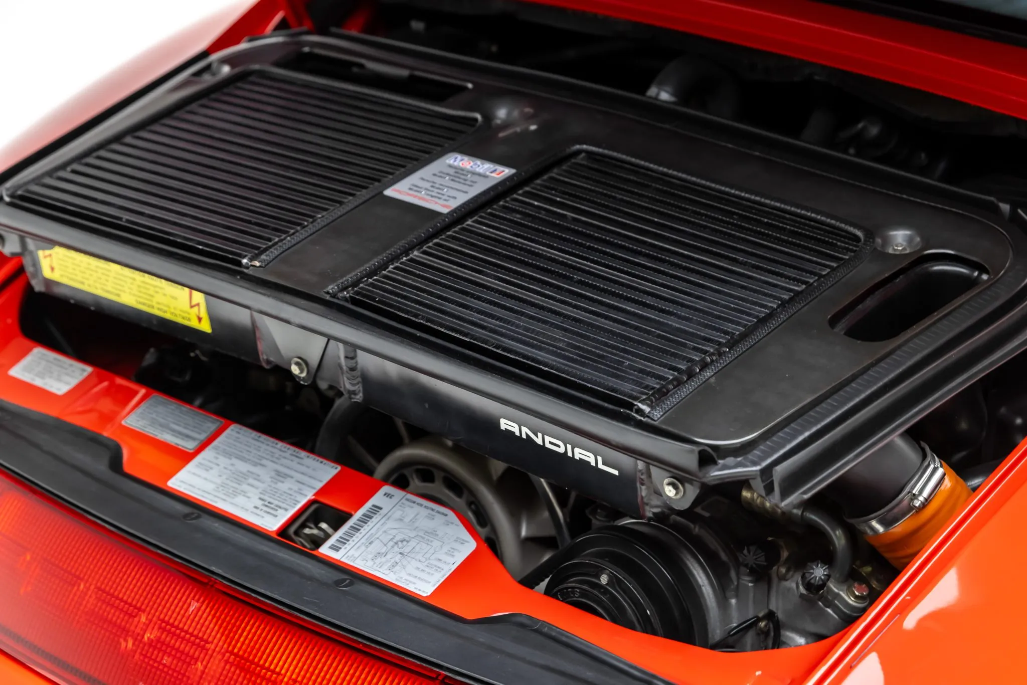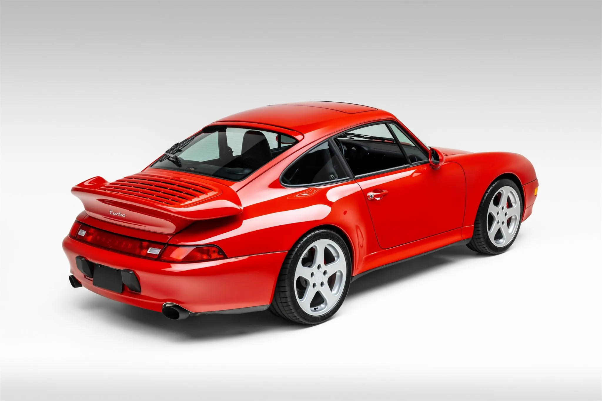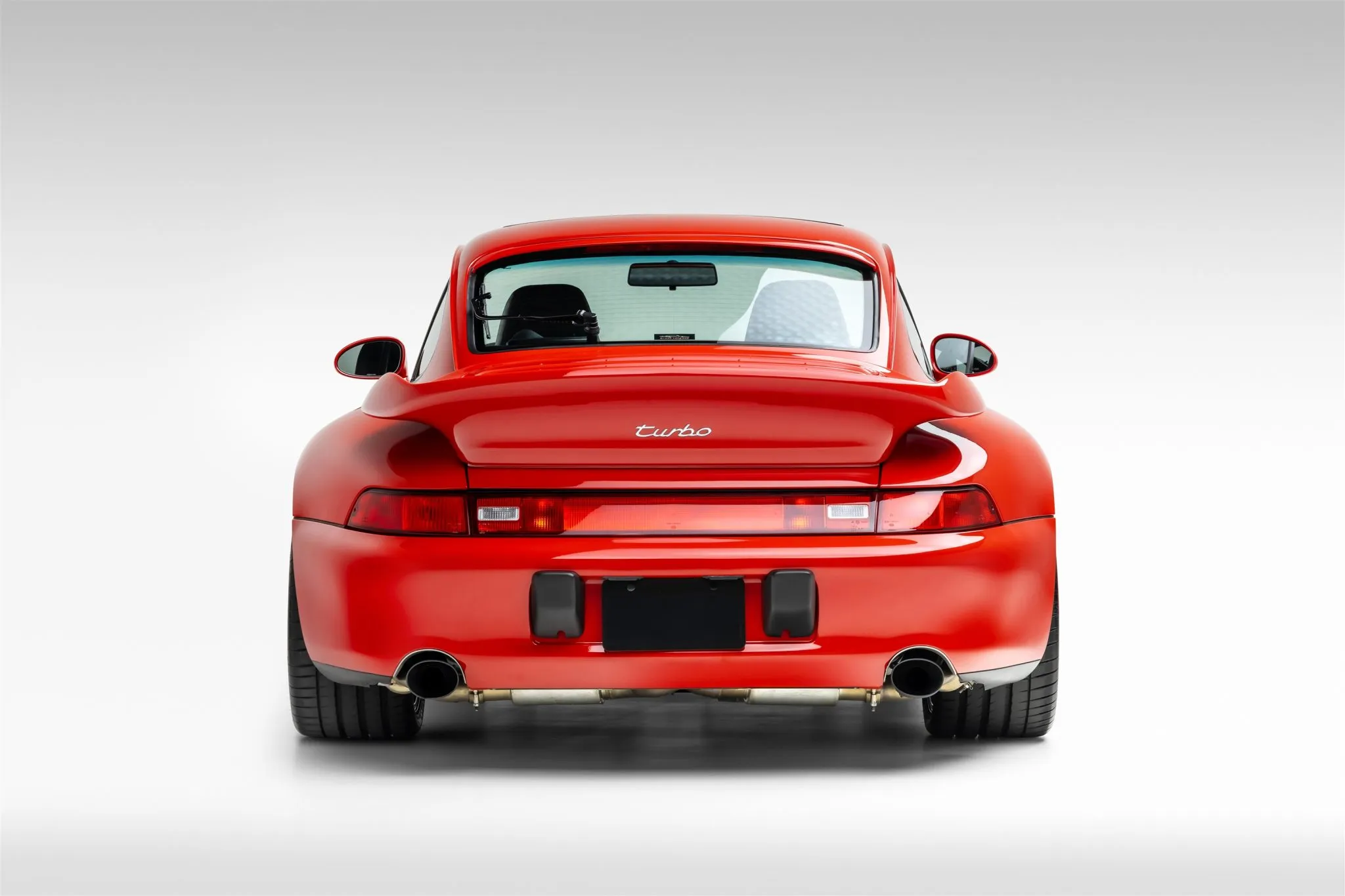 This 1996 Porsche 911 Turbo was specified in Guards Red over black leather upholstery, and it has been retrofitted with 18″ RUF alloy wheels, Bilstein coilovers, an Andial intercooler, and revised stainless-steel exhaust components.