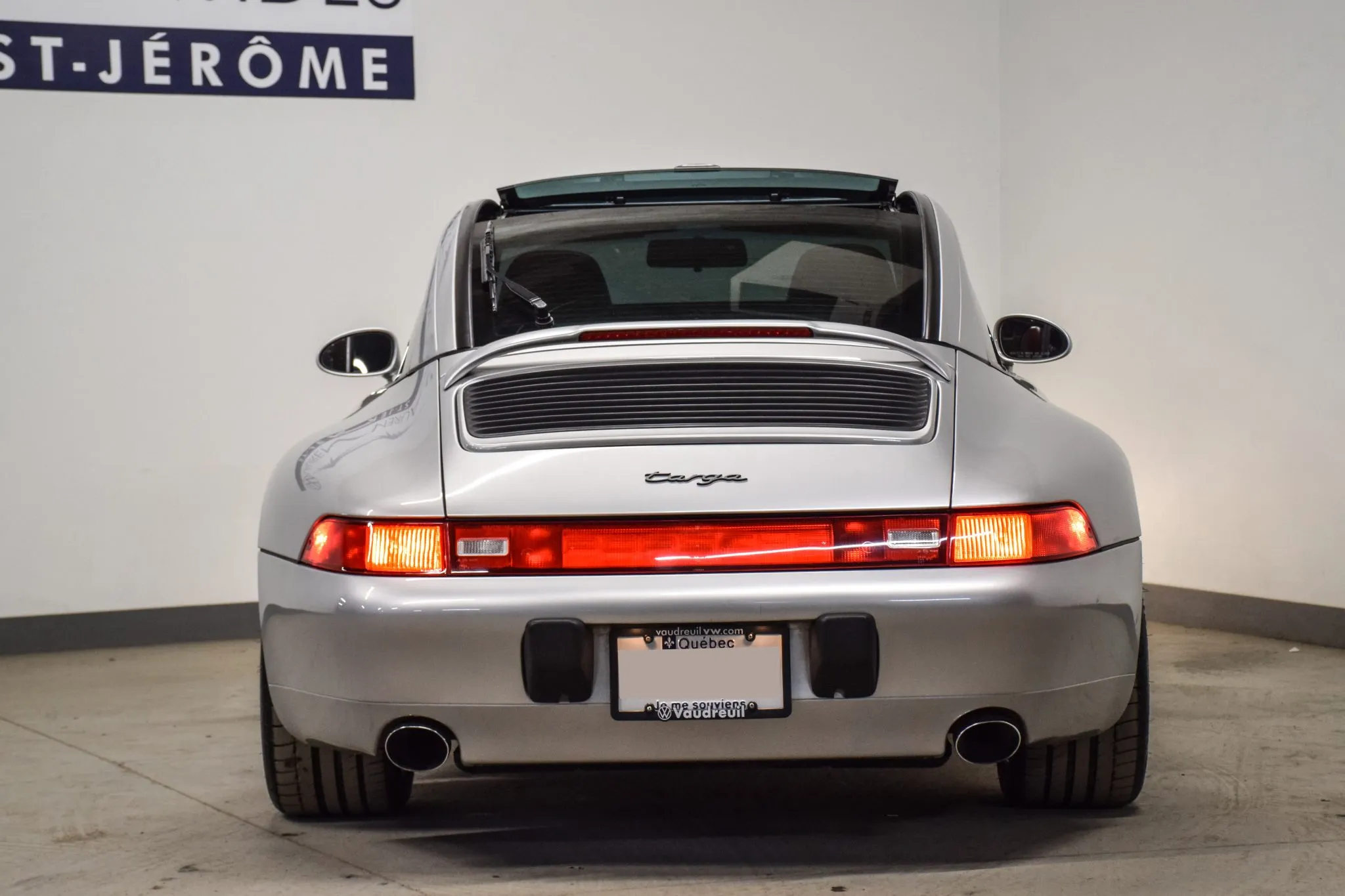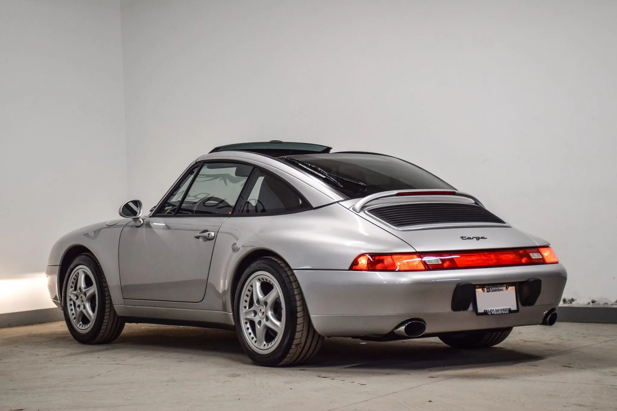 This 993 Targa is now offered in Ontario, Canada, by the selling dealer with a clean Carfax report and Quebec registration.