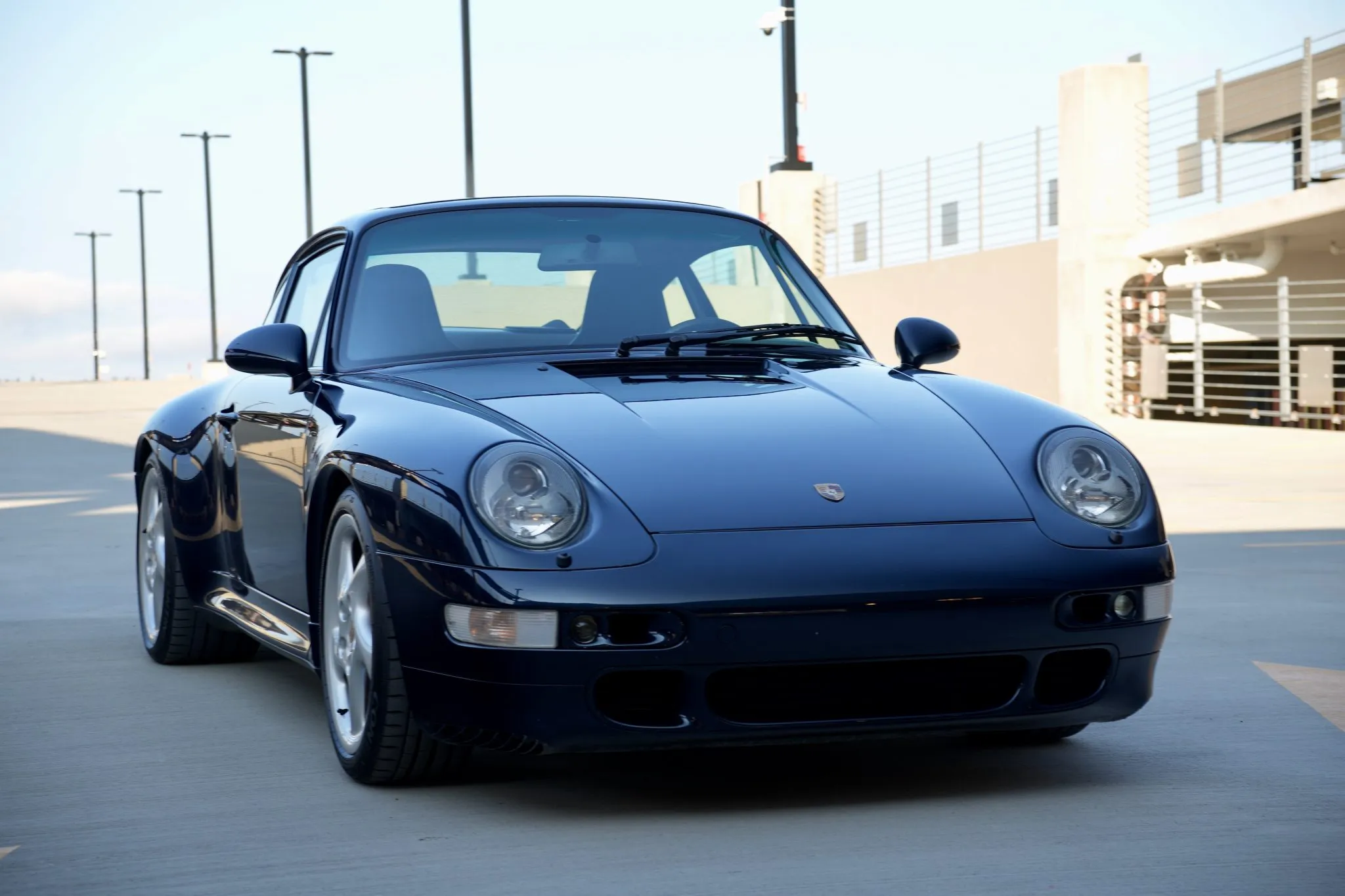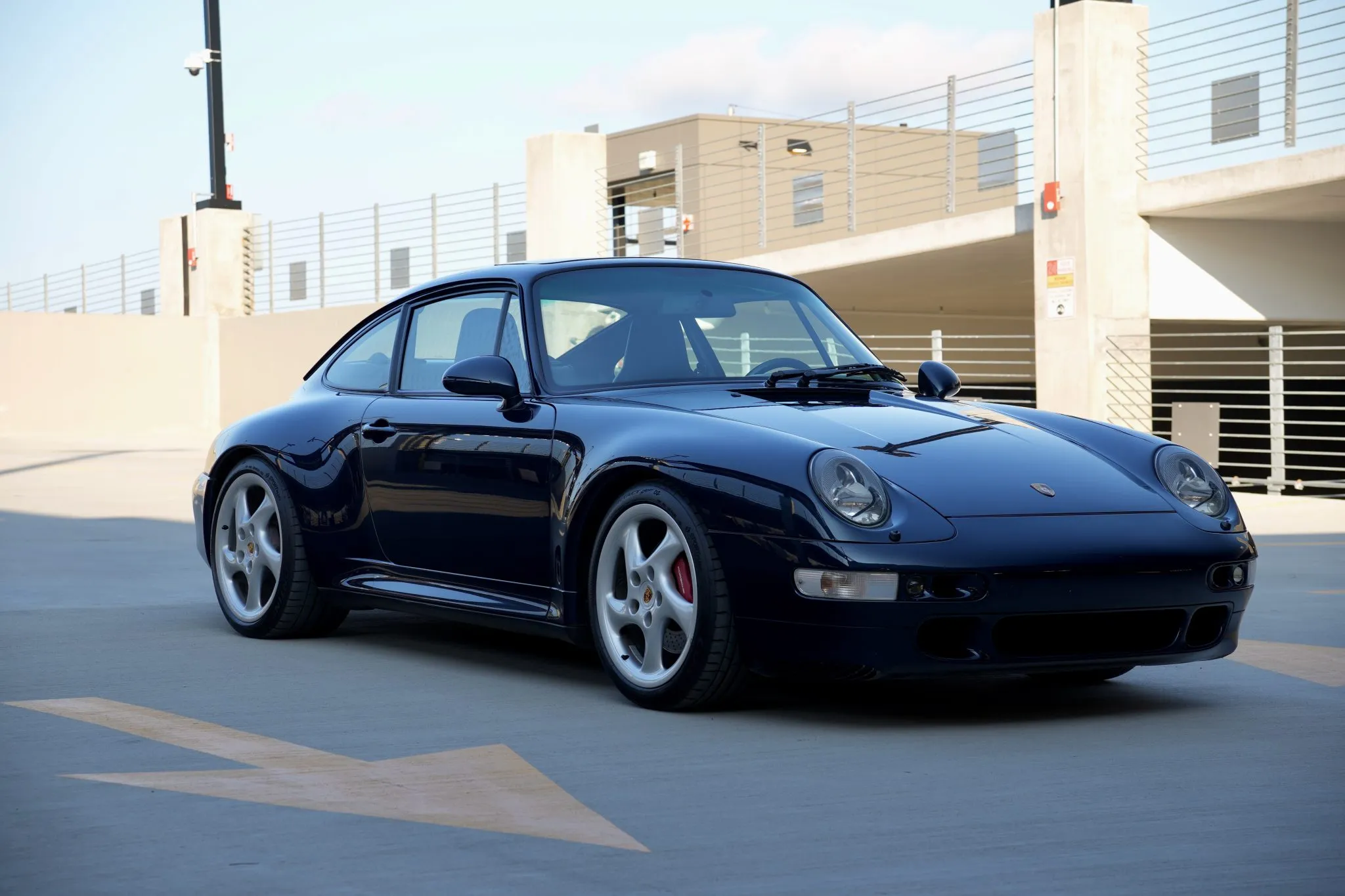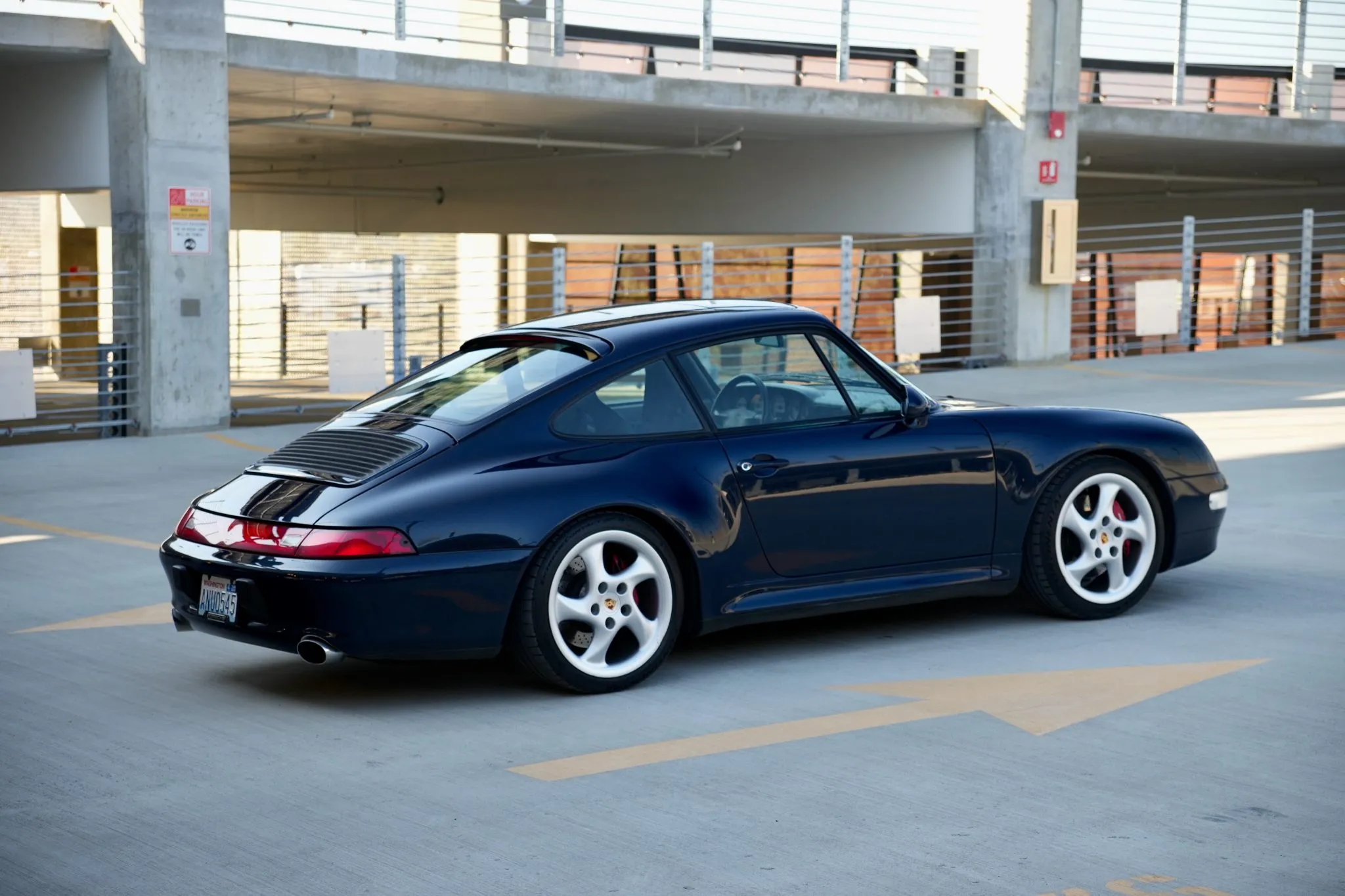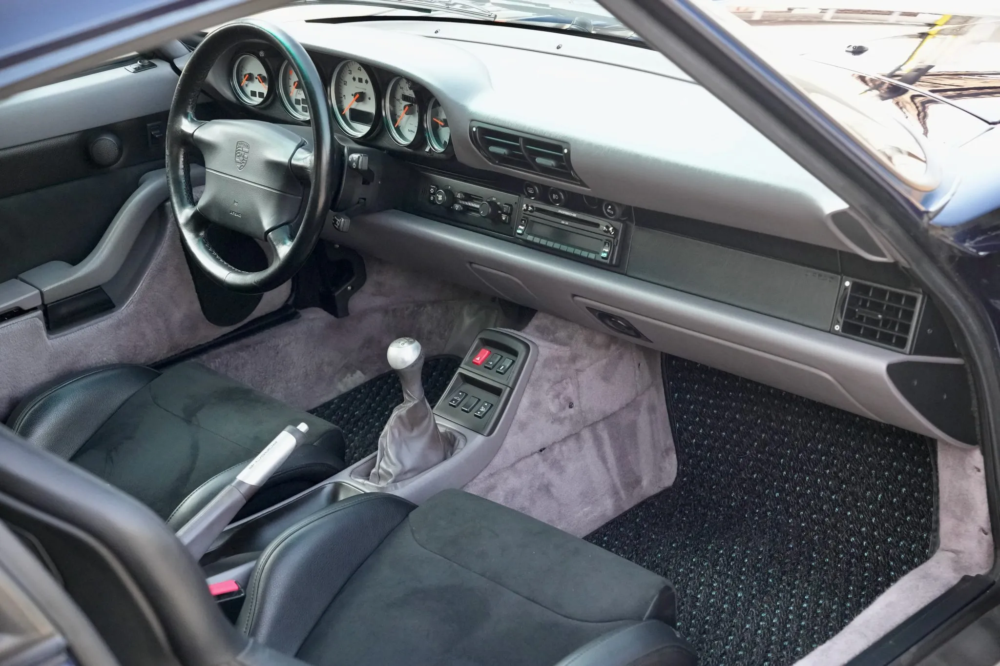 This 1998 Porsche 911 Carrera 4S is finished in Ocean Blue Metallic over a Classic Gray interior with Recaro Sportster seats and Alcantara door-panel accents.