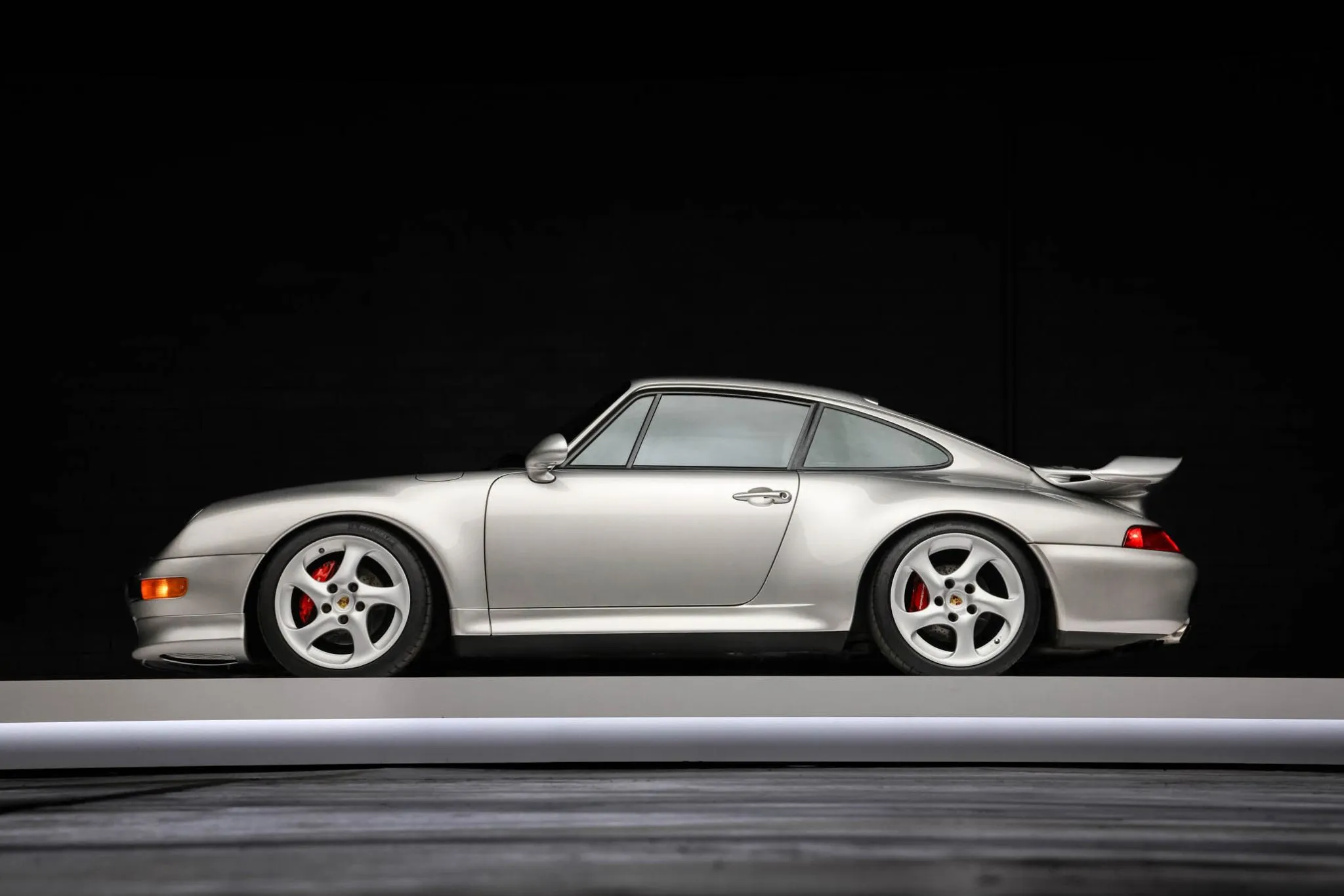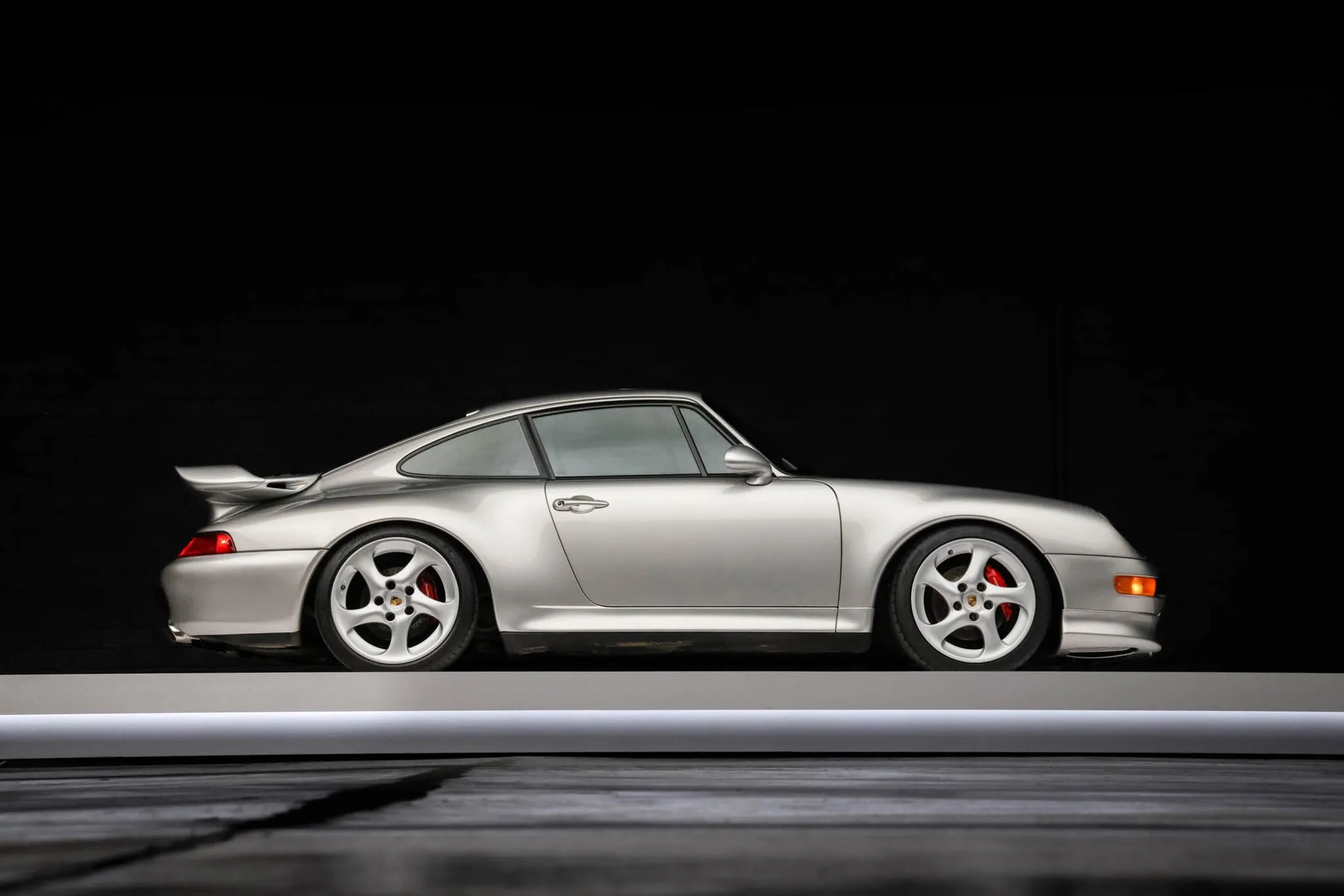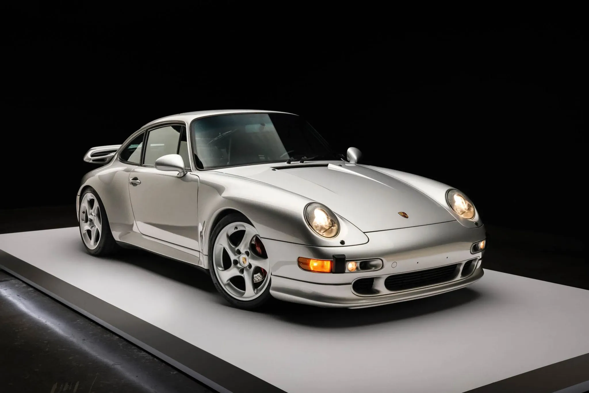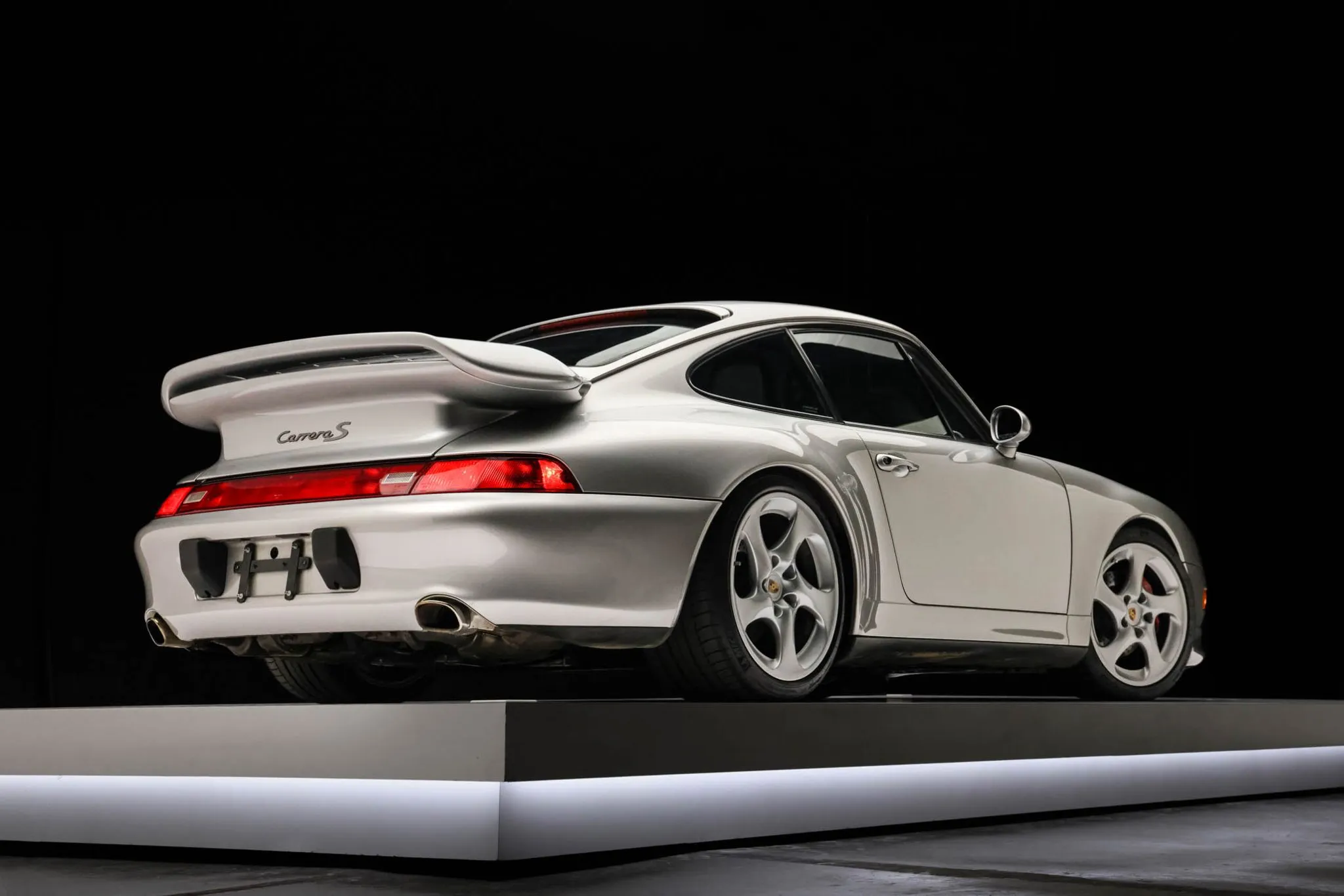 This 1998 Porsche 911 Carrera S coupe was specified in Arctic Silver Metallic and has been fitted with Turbo S-style details including spoilers and front brake ducts.