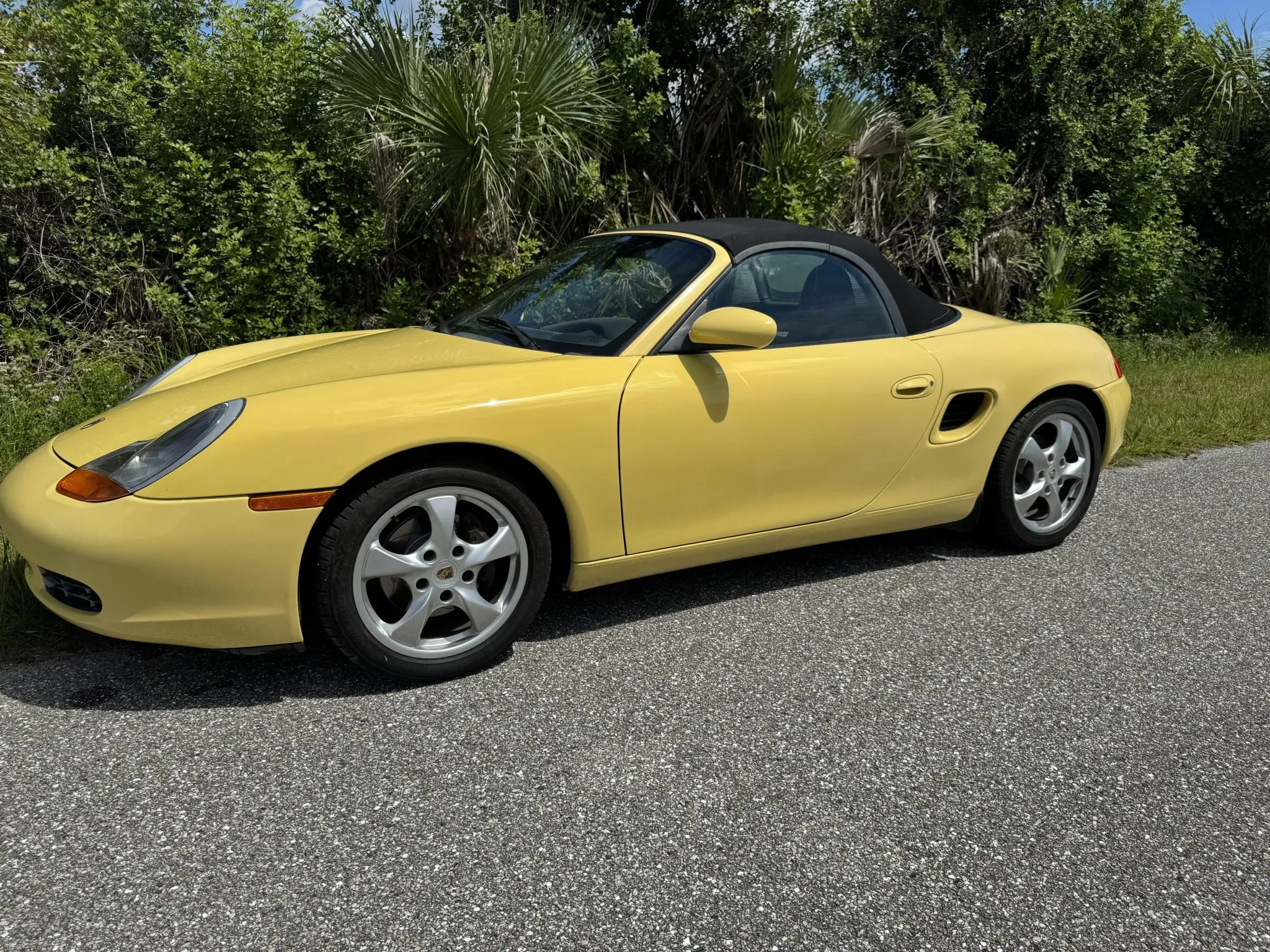 It is powered by a 2.5-liter flat-six paired with a five-speed manual transaxle and is equipped with 17″ Boxster-Design wheels, a speed-activated rear spoiler, cruise control, a Black soft top, and a hi-fi sound system. The seller purchased the car in 2025 and has since added approximately 2k miles.