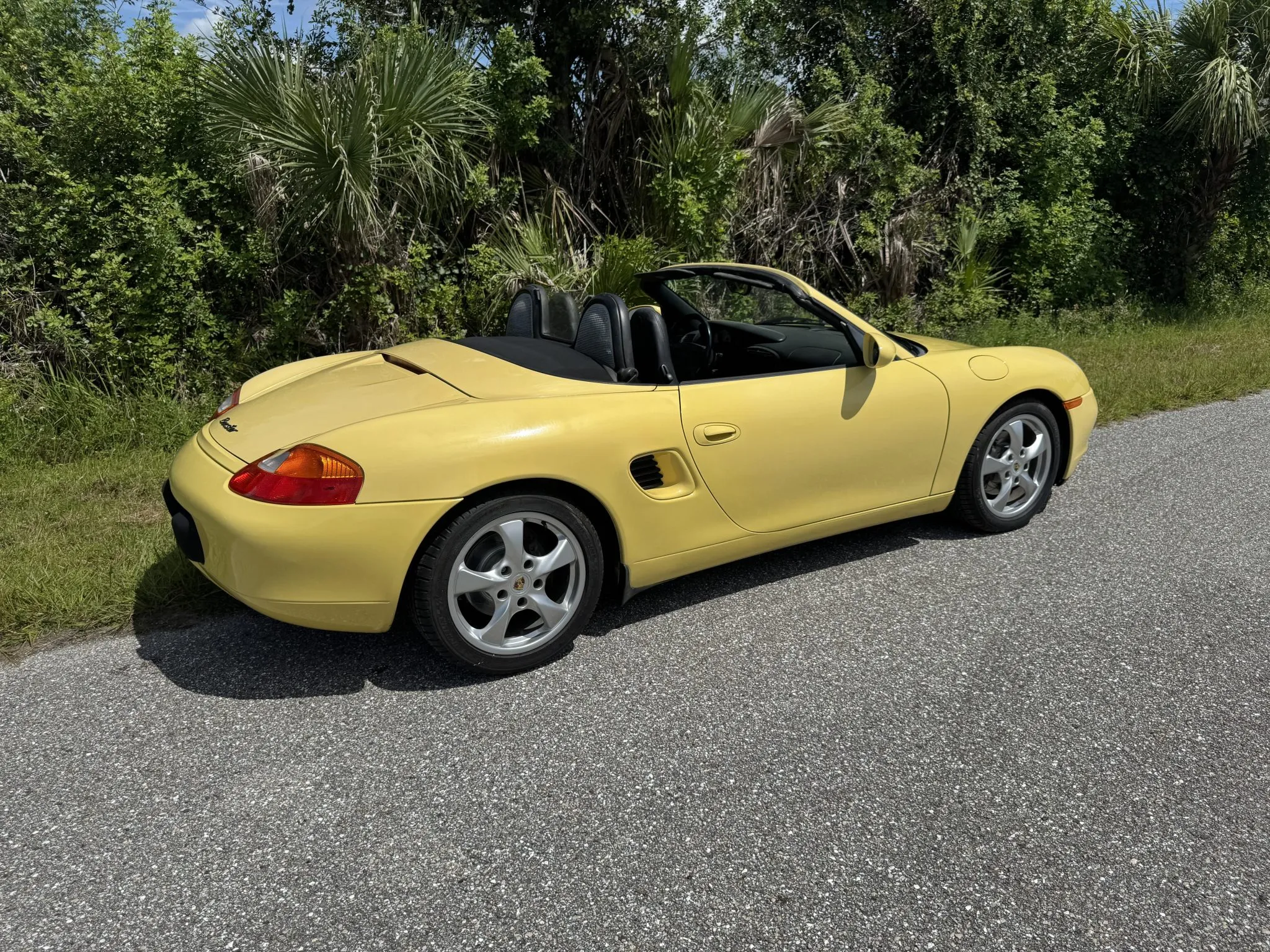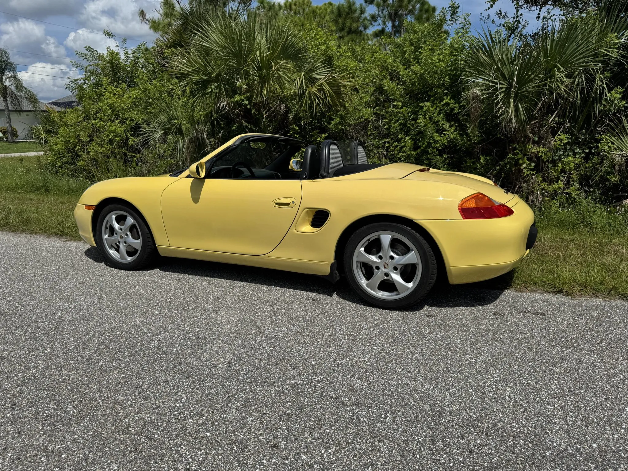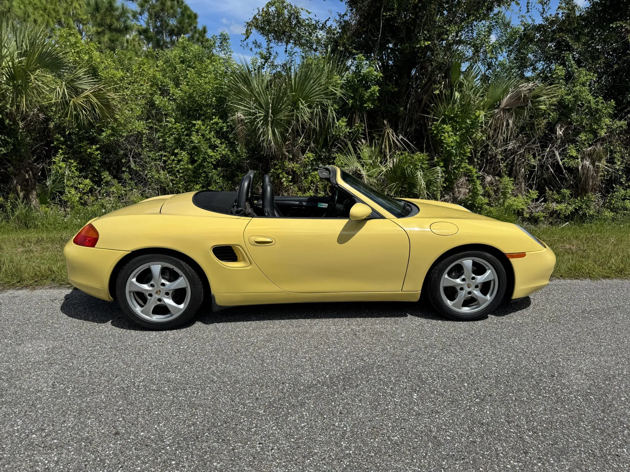 Work in 2025 is said to have included rebuilding the convertible top transmission and replacing the left axle, ignition switch, shift boot, left window regulator, spark plugs, and left and right door actuators. This 986 Boxster is now offered at no reserve with a DME report, service records, and a clean Florida title in the name of the seller’s spouse.