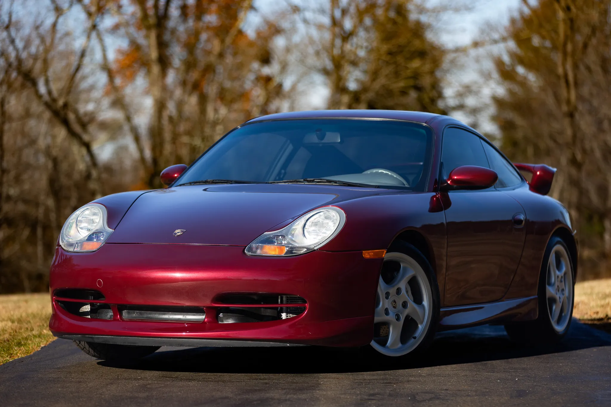 The car was specified with the Aerokit and Arena Red Metallic-finished bodywork over a Graphite Grey supple leather interior, and it is powered by a 3.4-liter M96 flat-six that drives all four wheels through a six-speed manual transaxle.