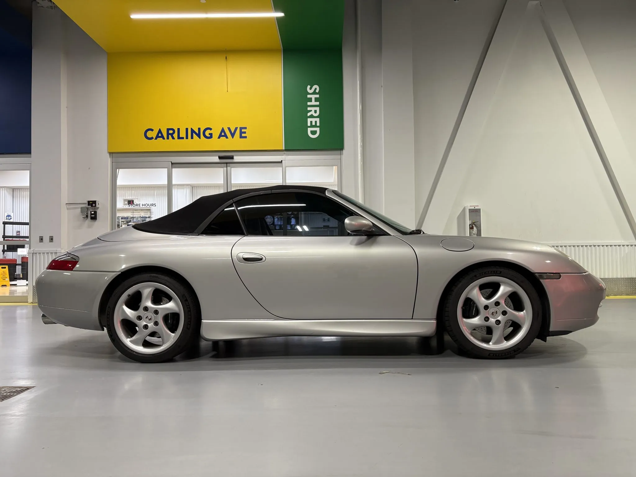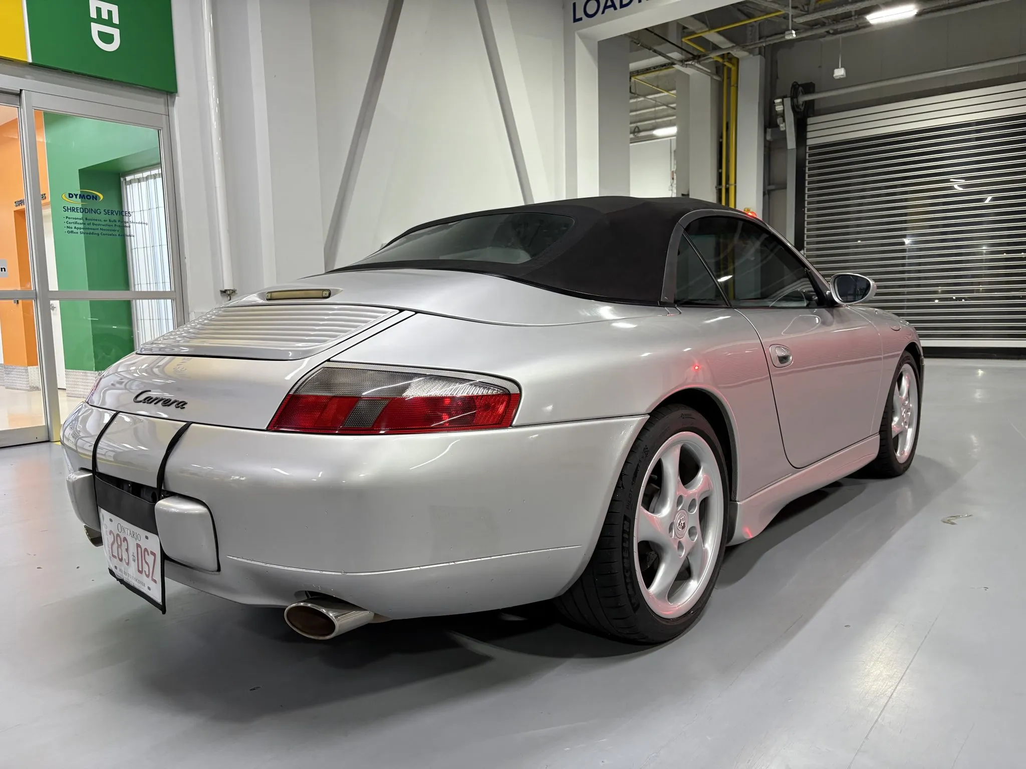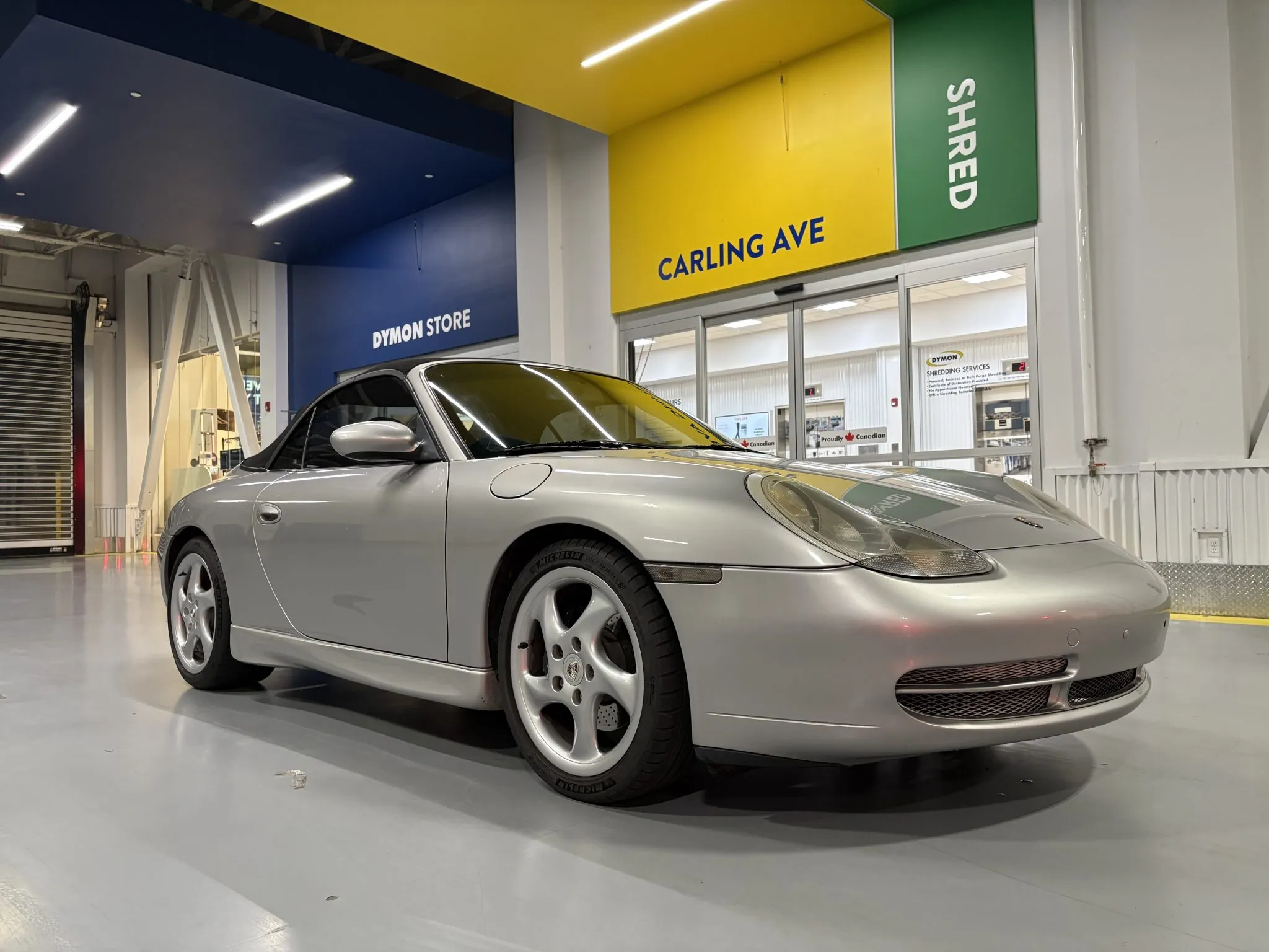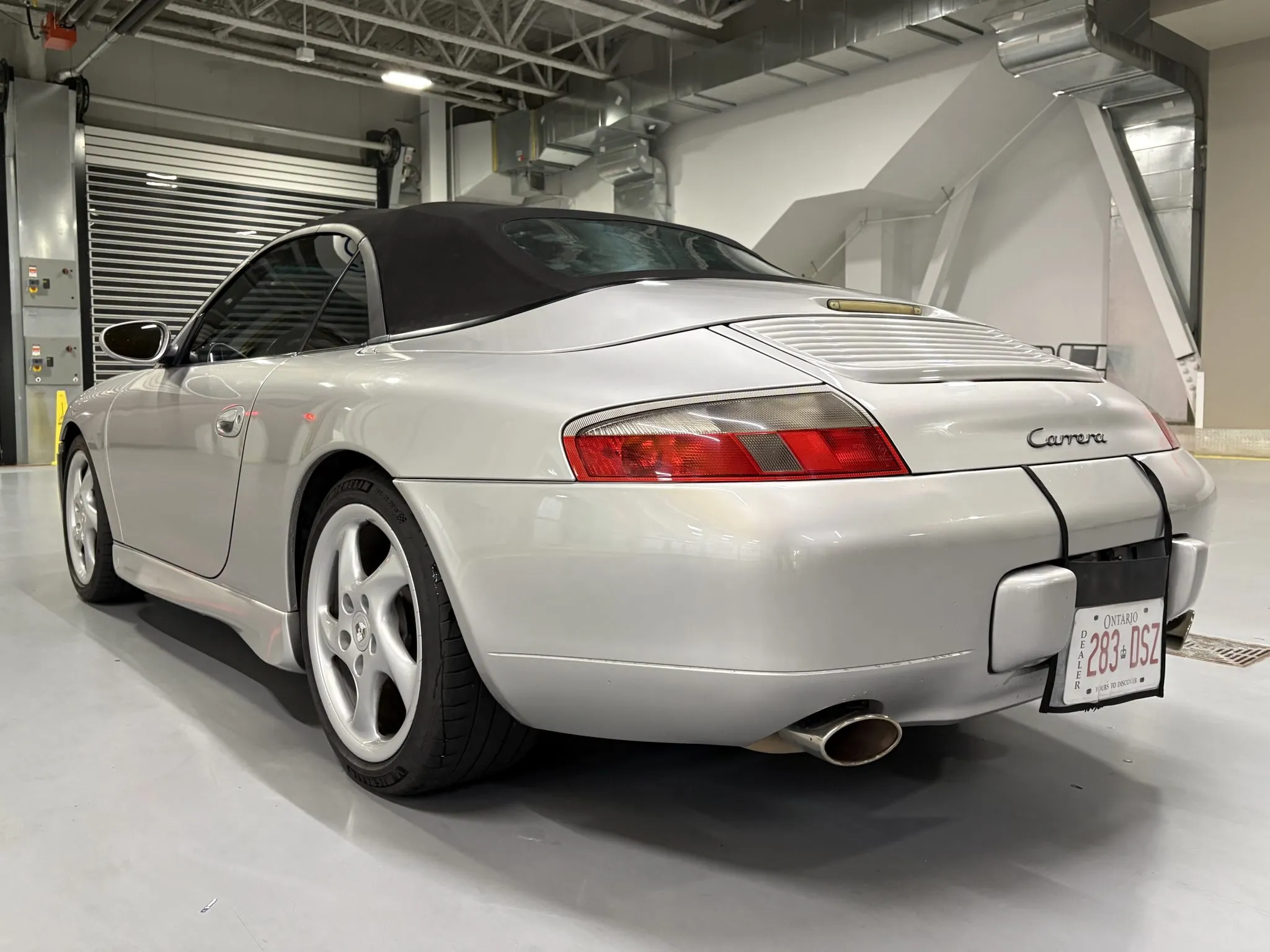 Acquired by the selling dealer in 2025, this 996.1 cabriolet shows 110k miles and is now offered in Canada with an owner’s manual, a wind deflector, a tool roll, two keys, accident-free US and Canadian Carfax reports, and Ontario registration.