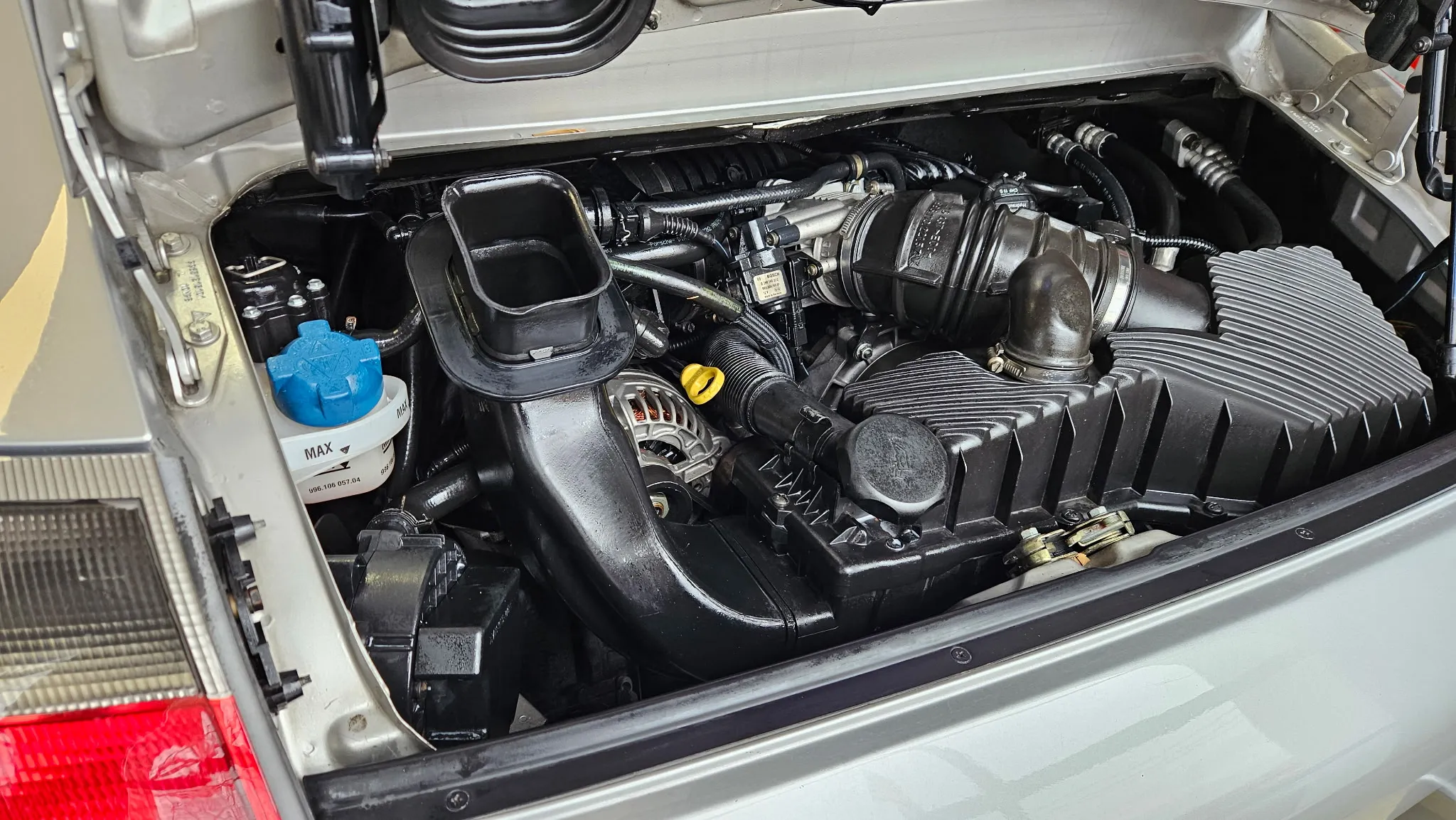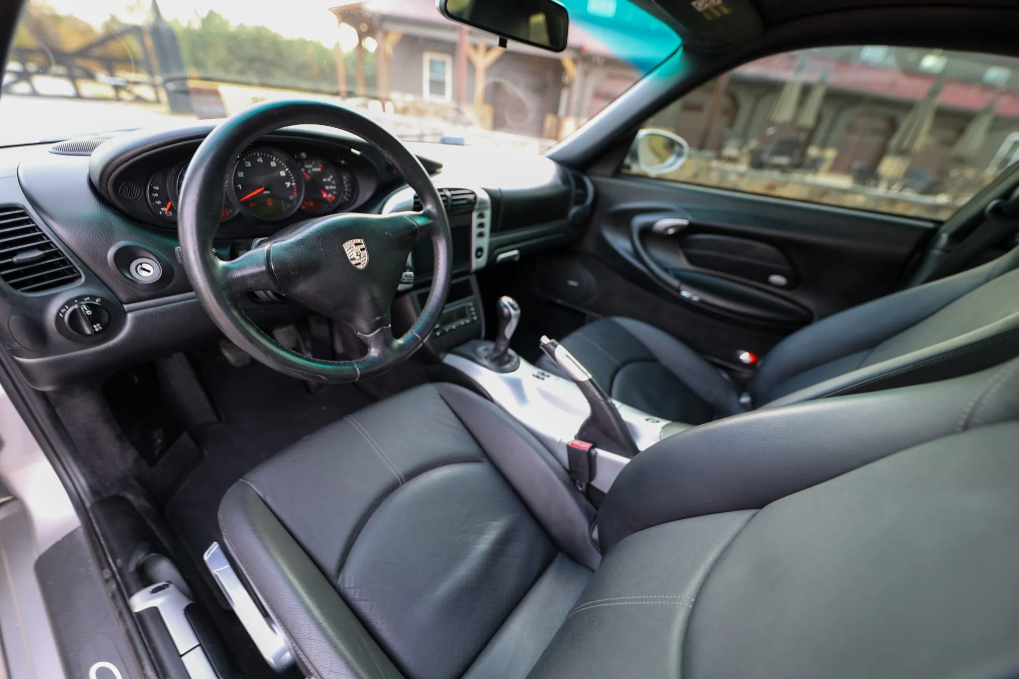 It is finished in Arctic Silver Metallic over Graphite Grey leather and is powered by a 3.4-liter M96 flat-six paired with a six-speed manual transaxle. An Alpine head unit has been installed, and additional equipment includes a sunroof, a deployable rear spoiler, 18″ Turbo-look wheels, cruise control, automatic climate control, and a Hi-Fi sound system.