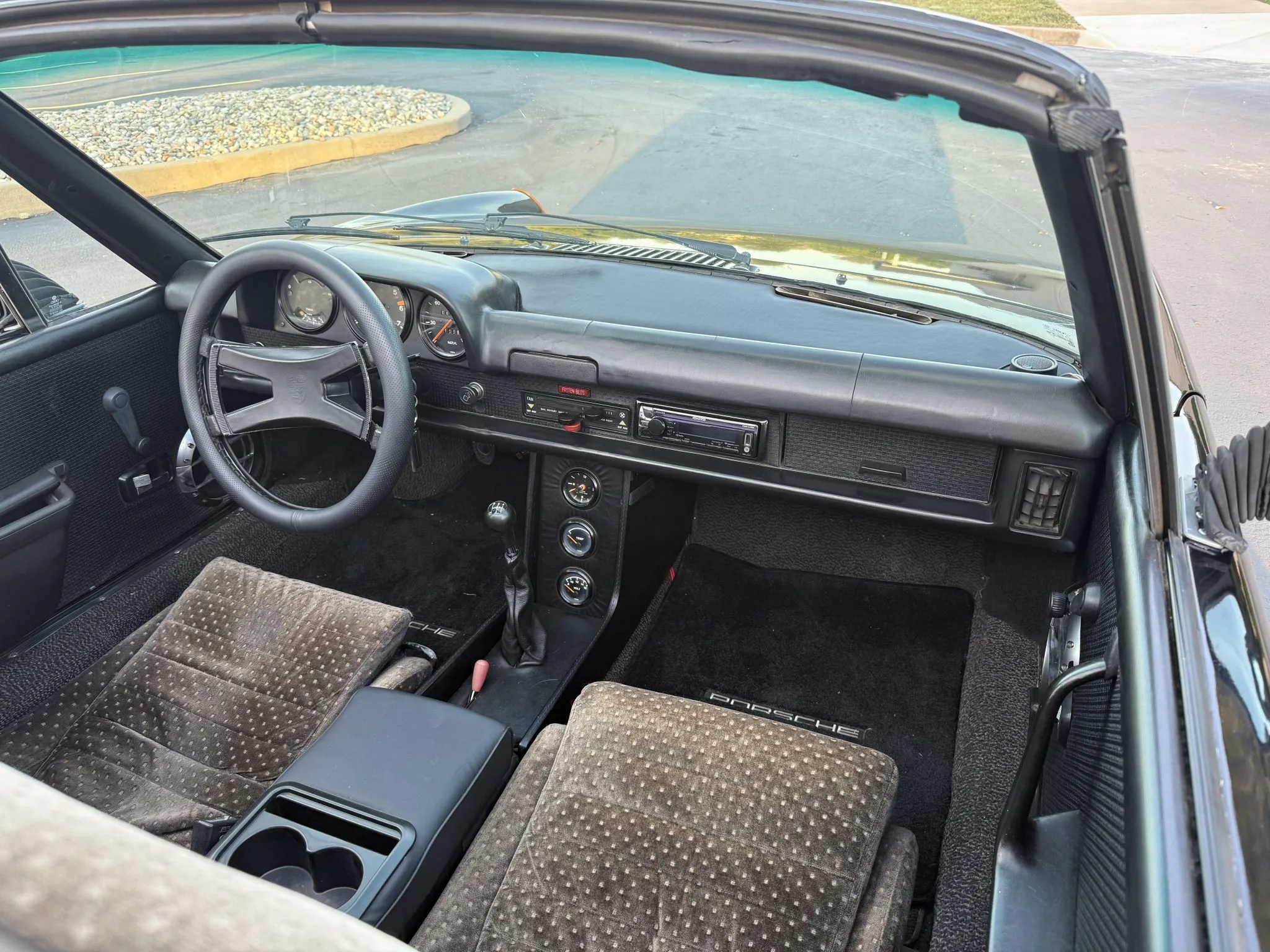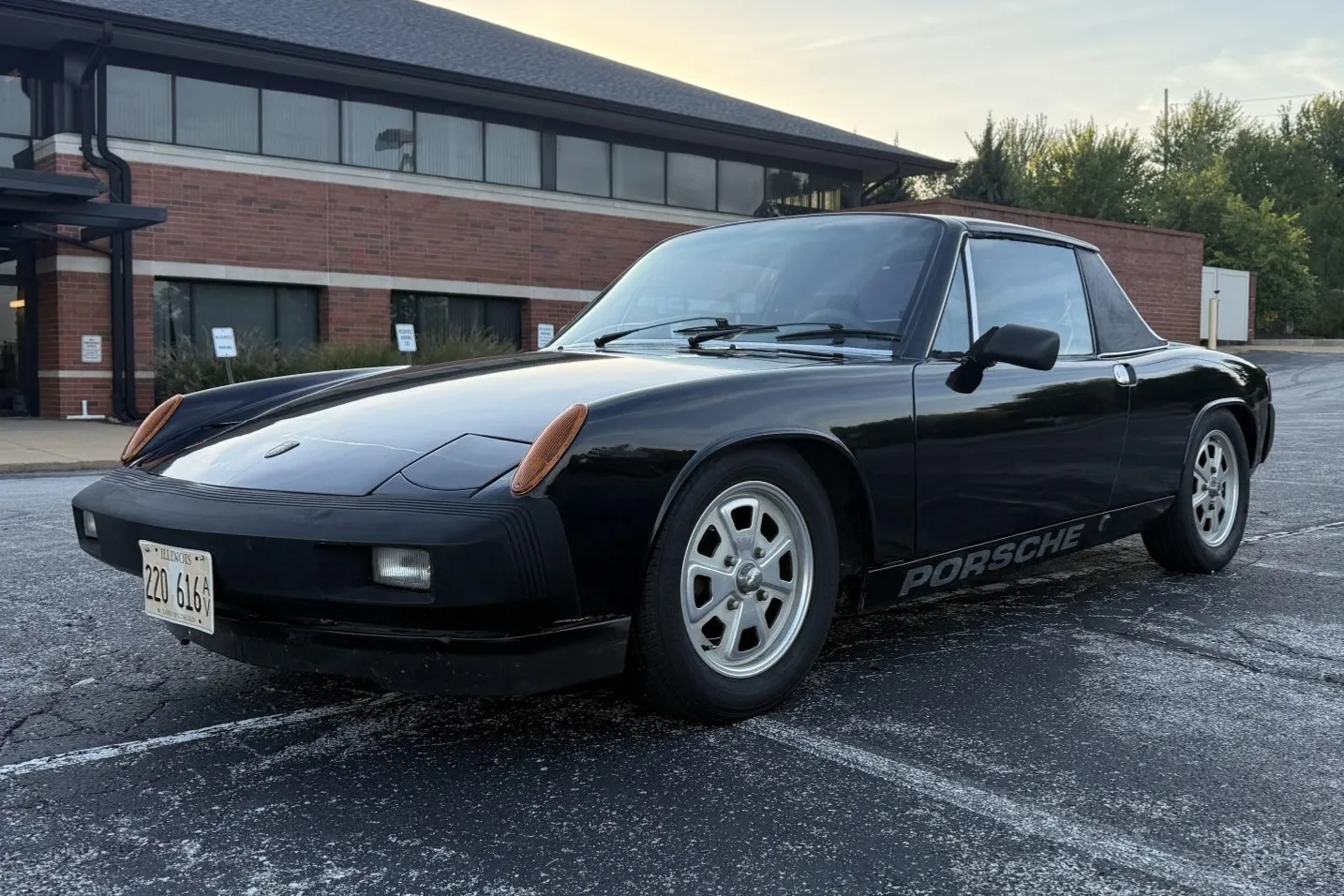 This 1976 Porsche 914 was acquired by the seller in 1988, and it was fitted with a 2,366cc SCAT flat-four in 2021. The engine is paired with a five-speed manual transaxle, and the car has been repainted in black over a black cloth interior.