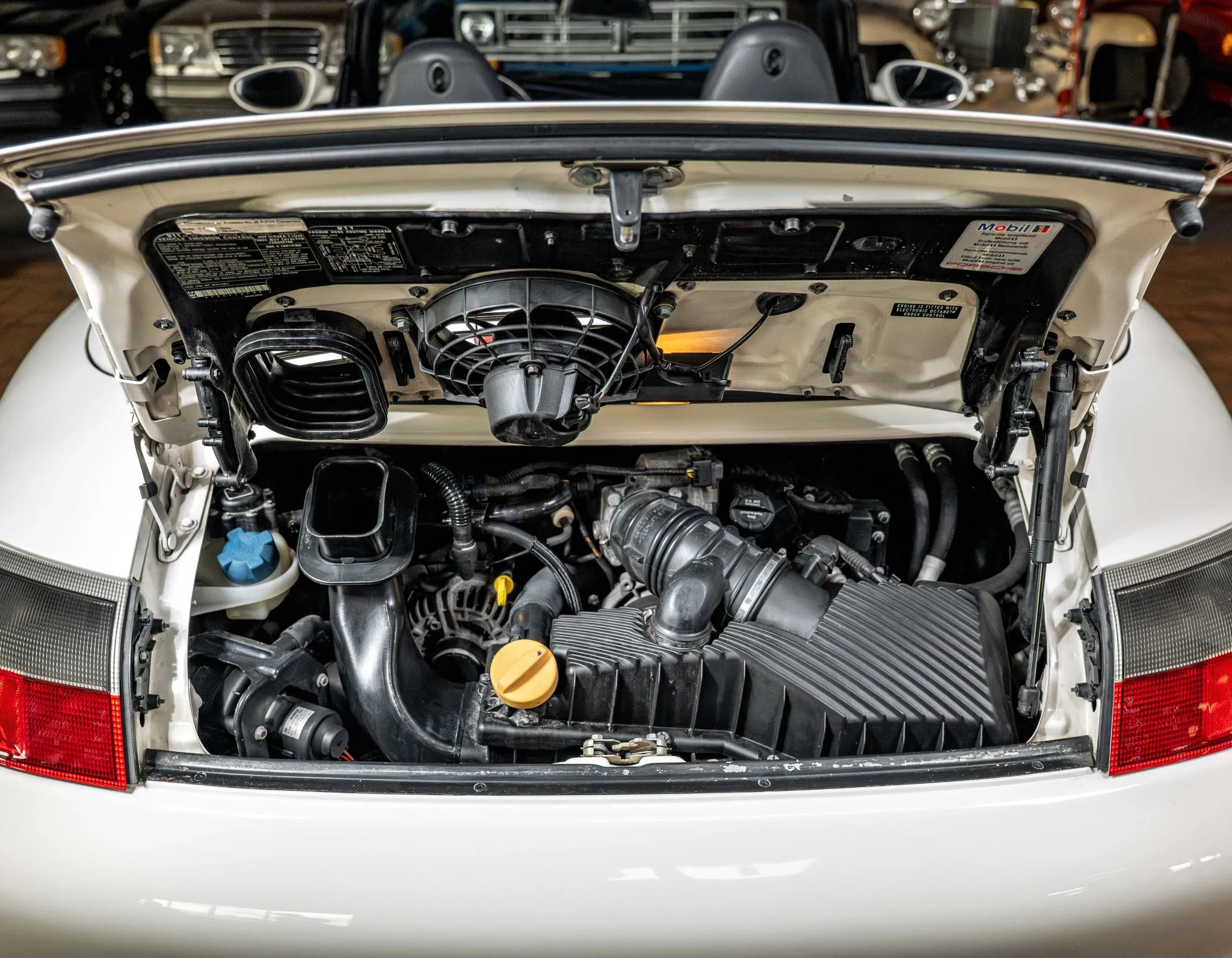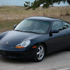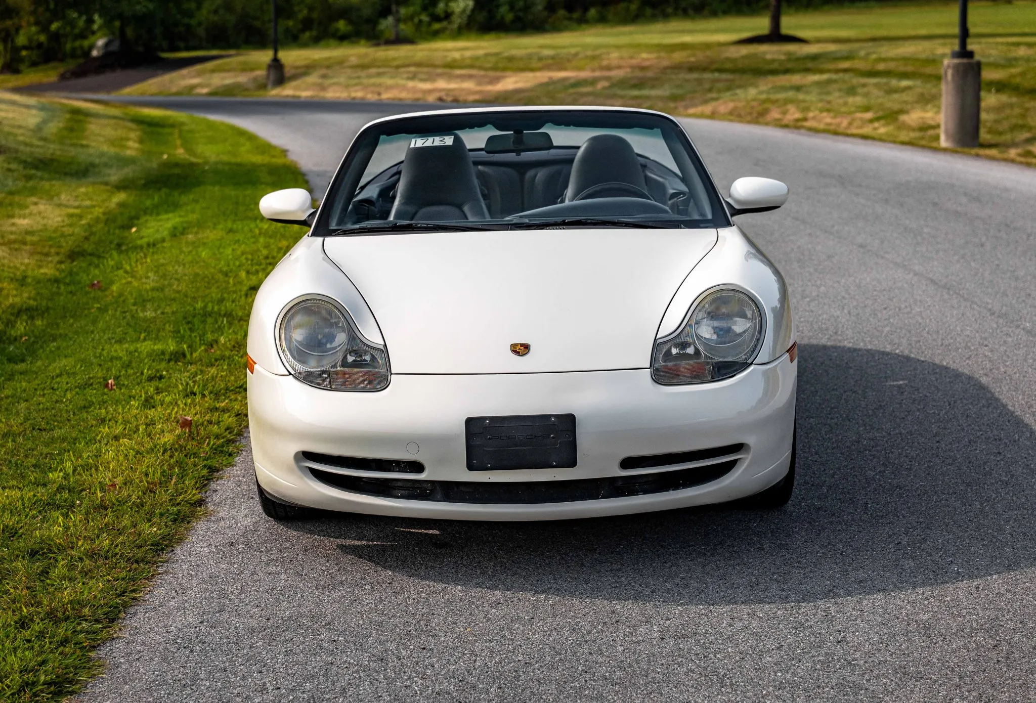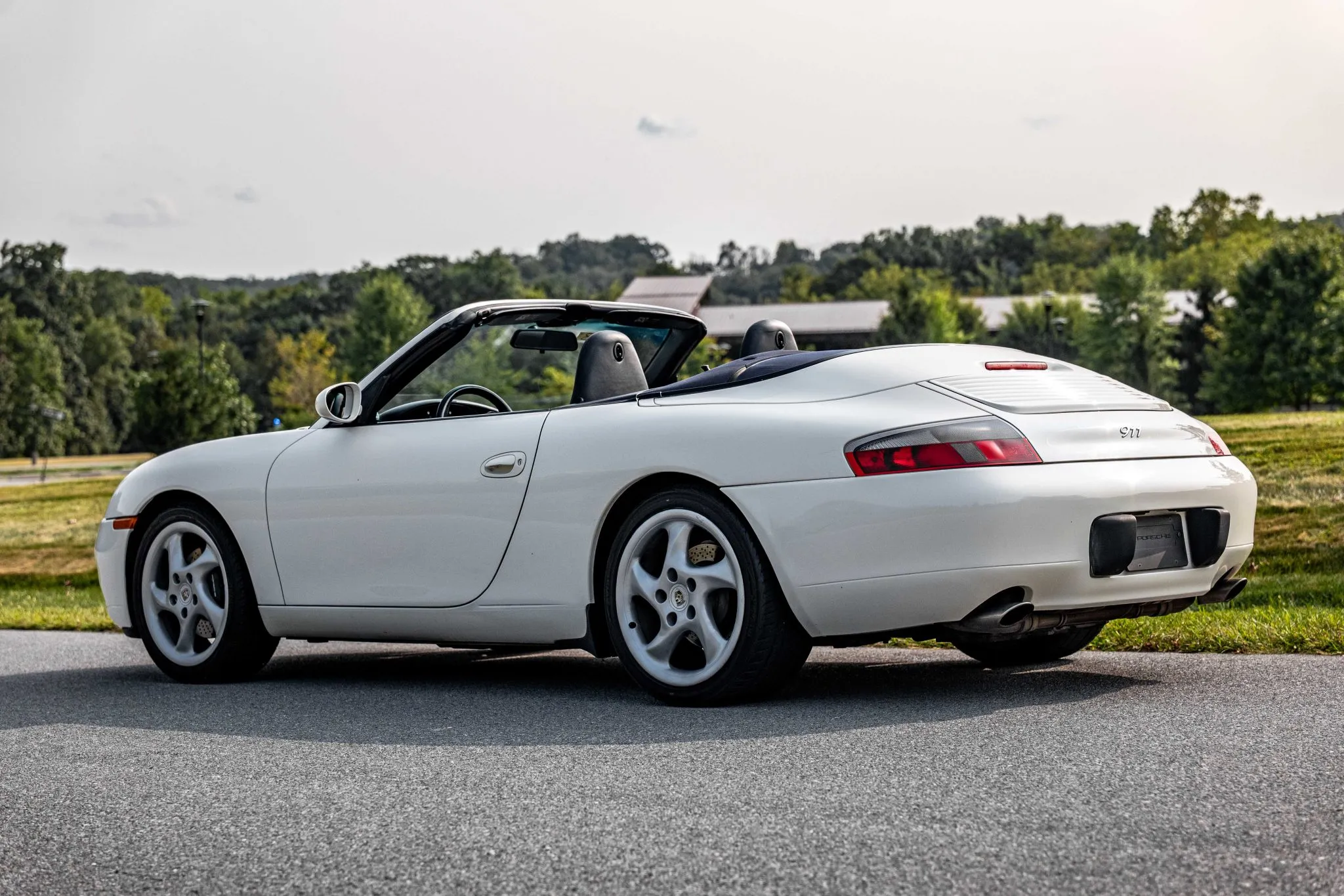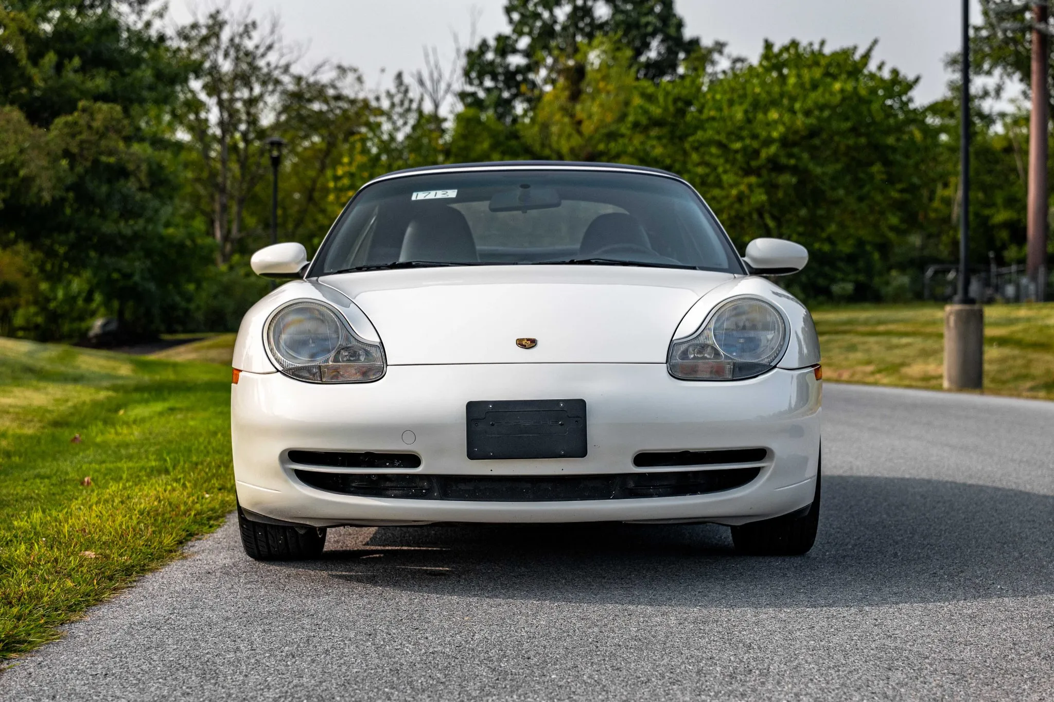 This 2000 Porsche 911 Carrera cabriolet is finished in Biarritz White over Metropol Blue leather and is powered by a 3.4-liter M96 flat-six paired with a six-speed manual transaxle.