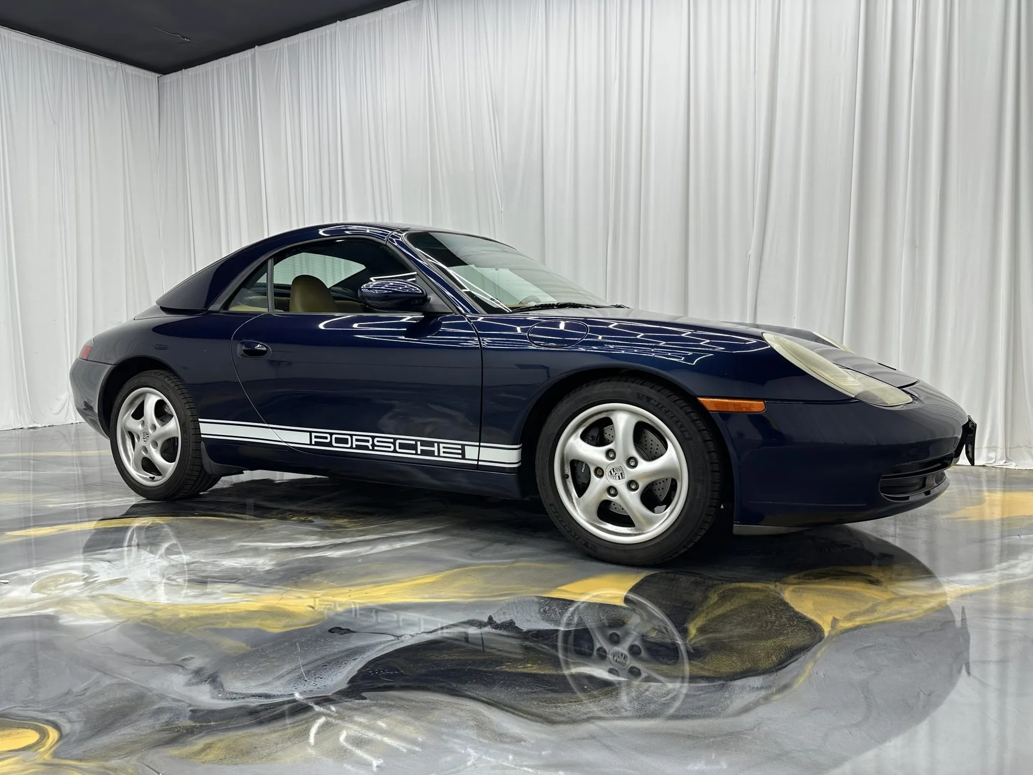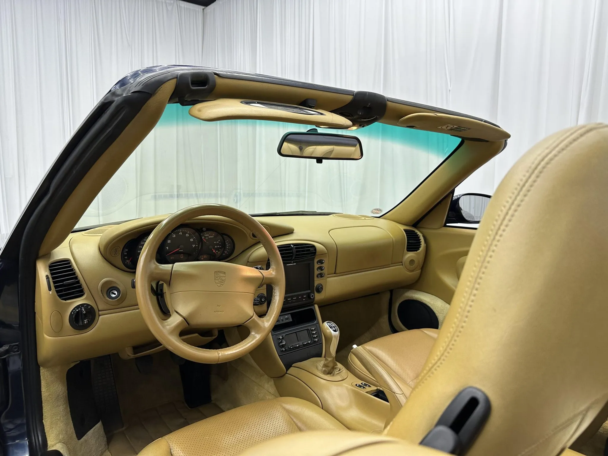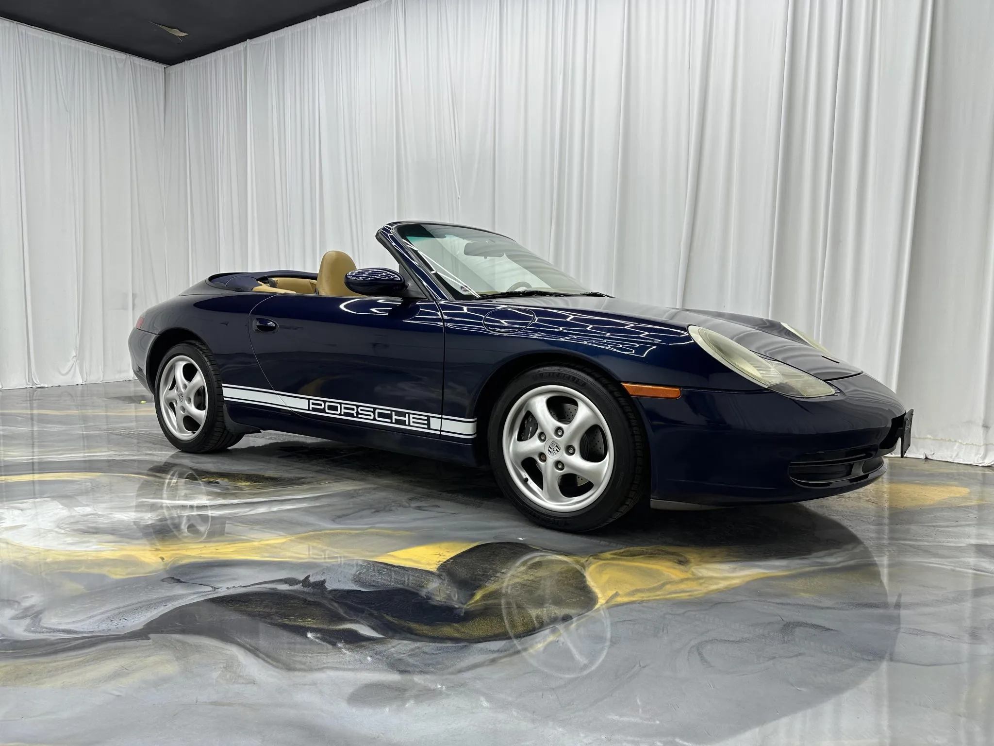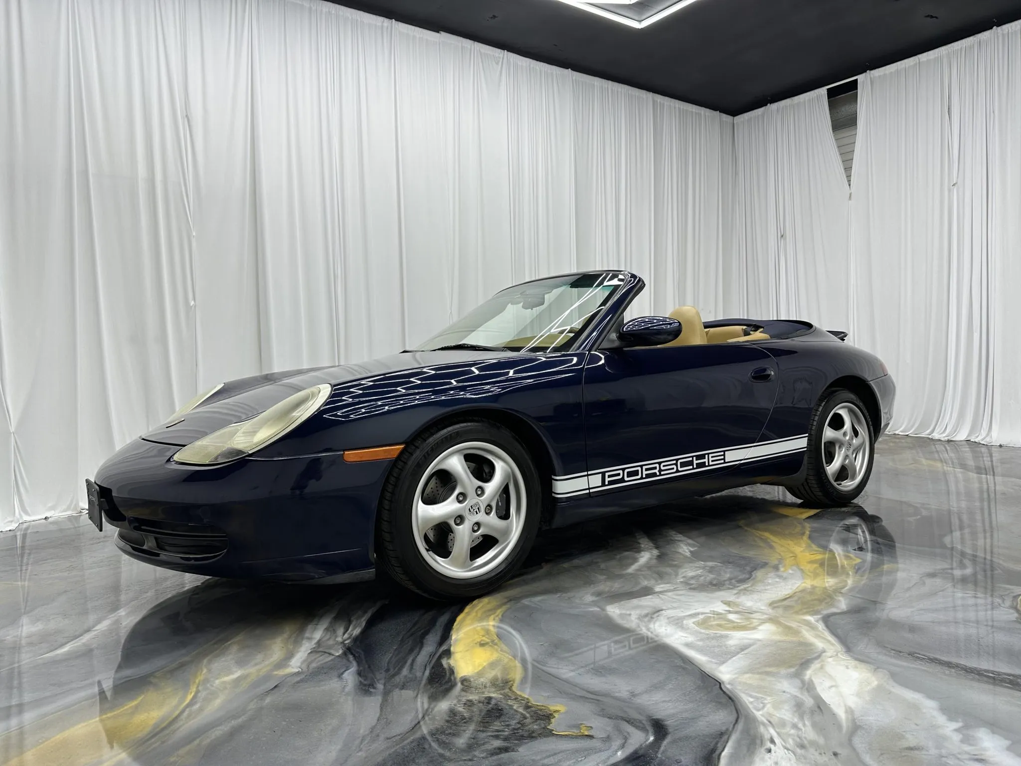 This 2000 Porsche 911 Carrera cabriolet is powered by a 3.4-liter M96 flat-six paired with a six-speed manual transaxle and is finished in Ocean Blue Metallic over Savanna Beige leather upholstery.