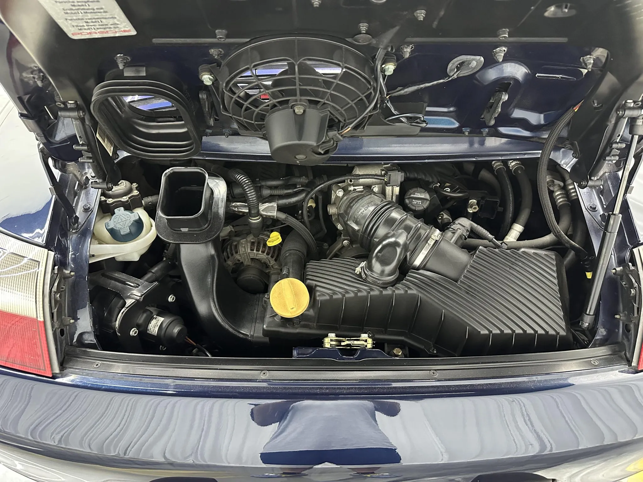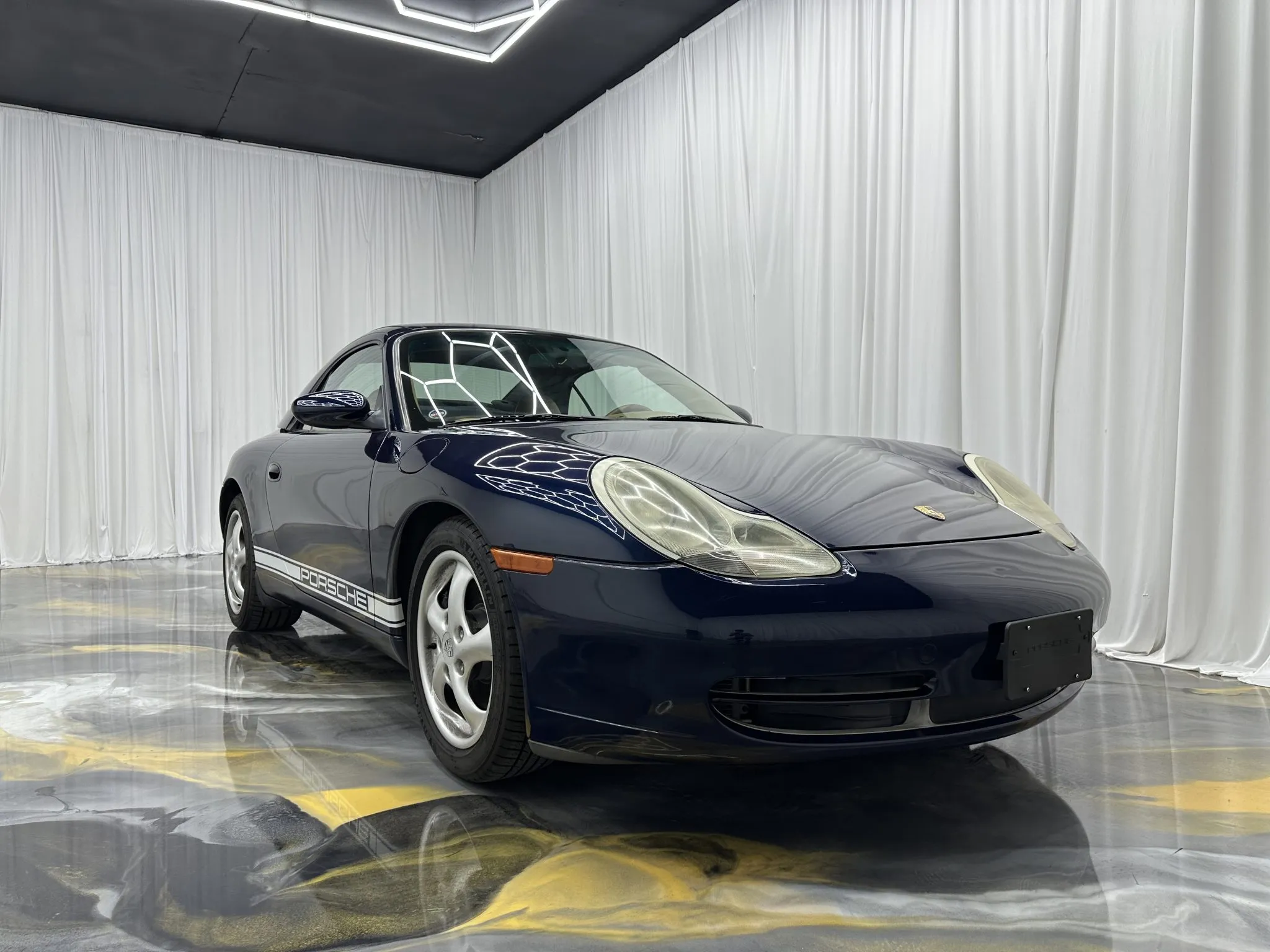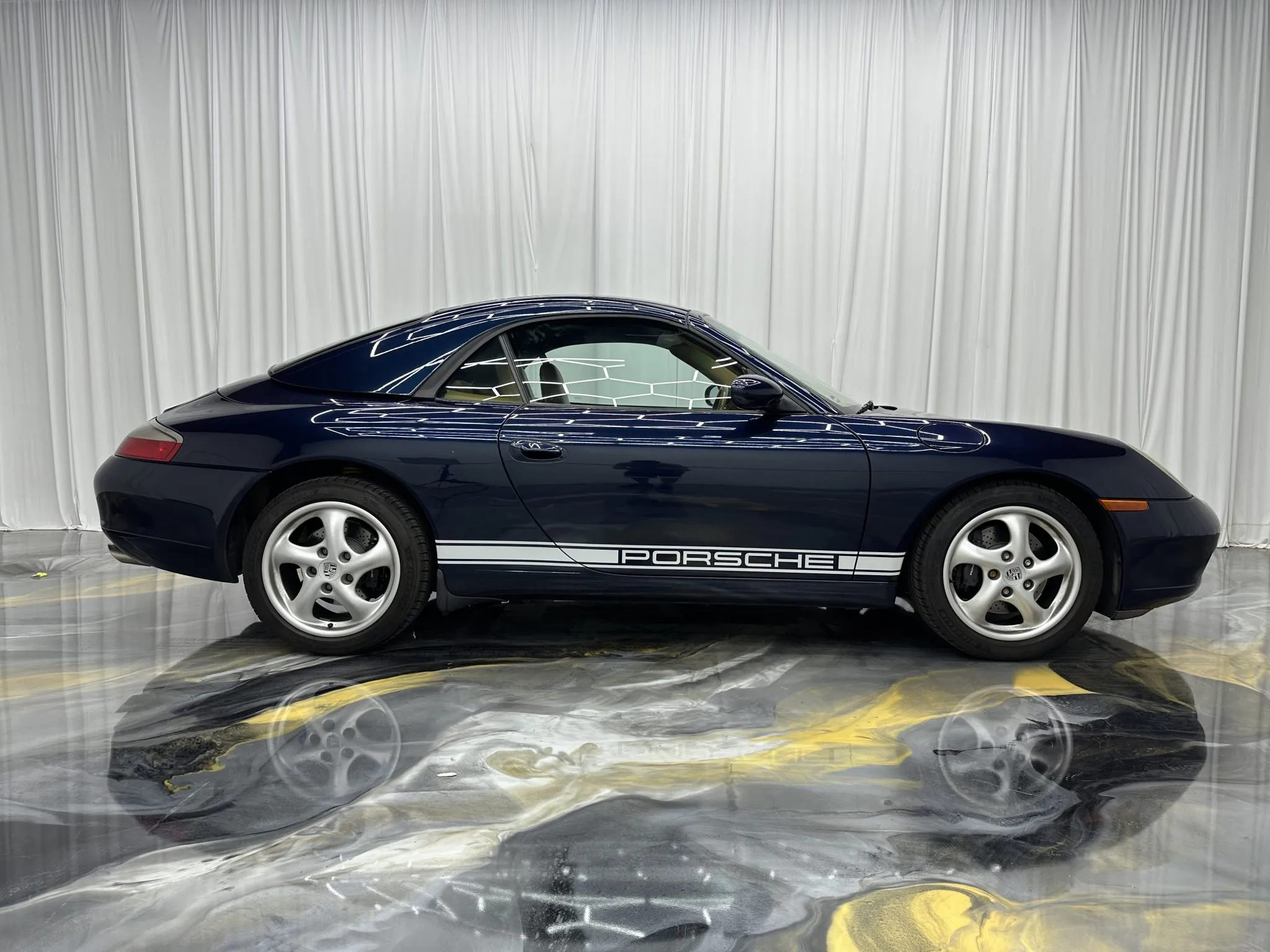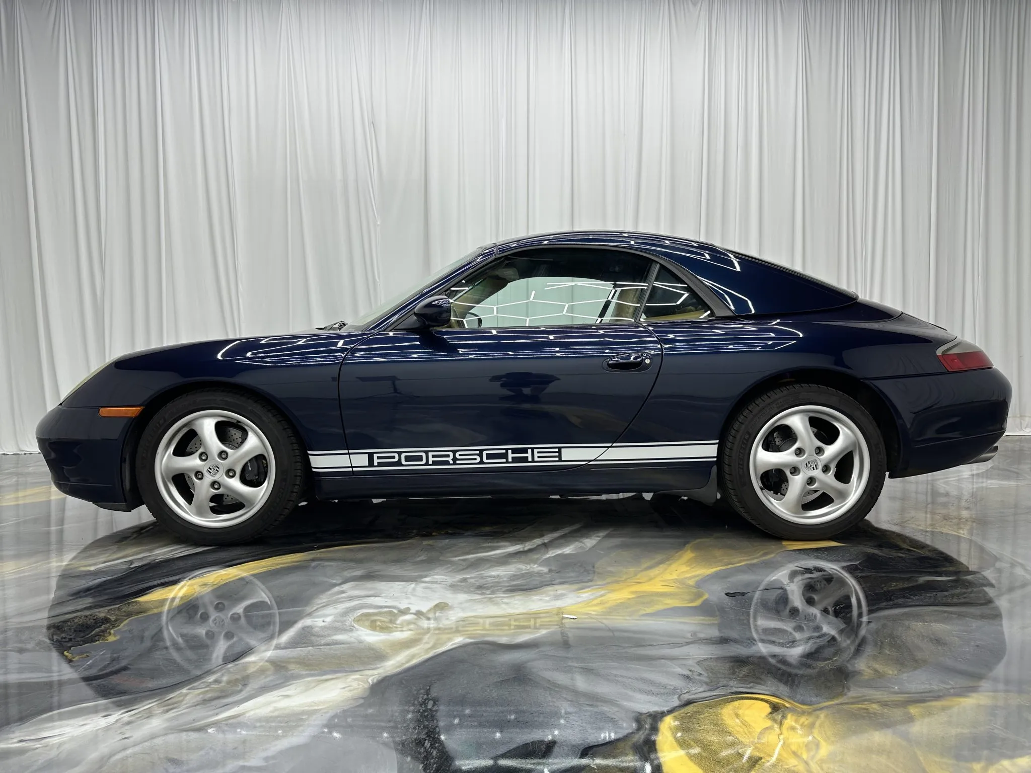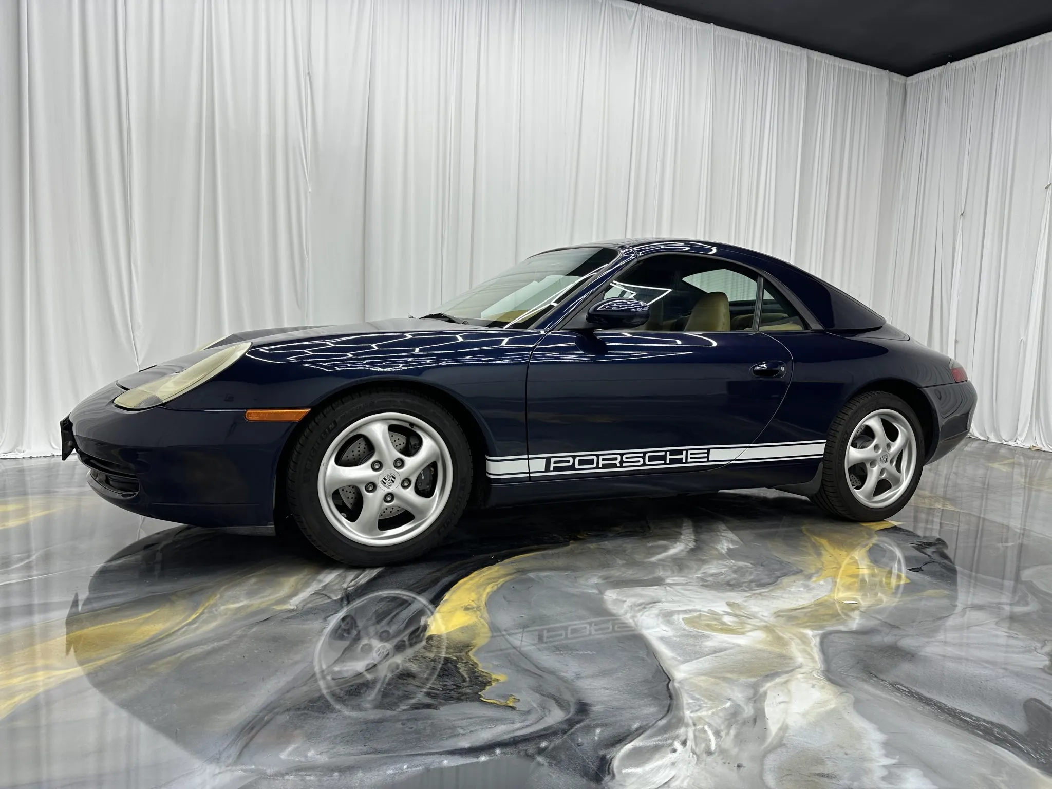This 2000 Porsche 911 Carrera cabriolet is powered by a 3.4-liter M96 flat-six paired with a six-speed manual transaxle and is finished in Ocean Blue Metallic over Savanna Beige leather upholstery.