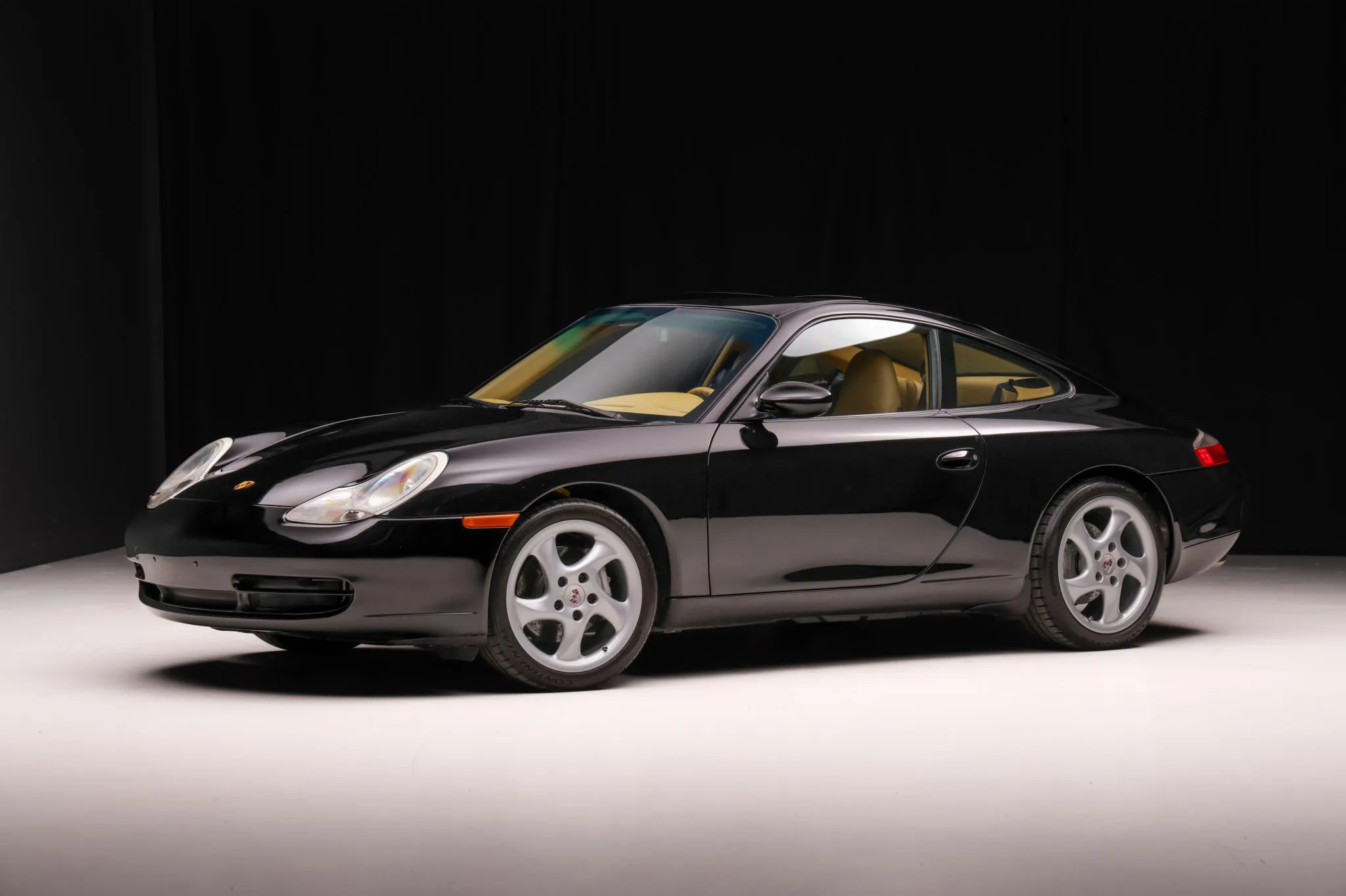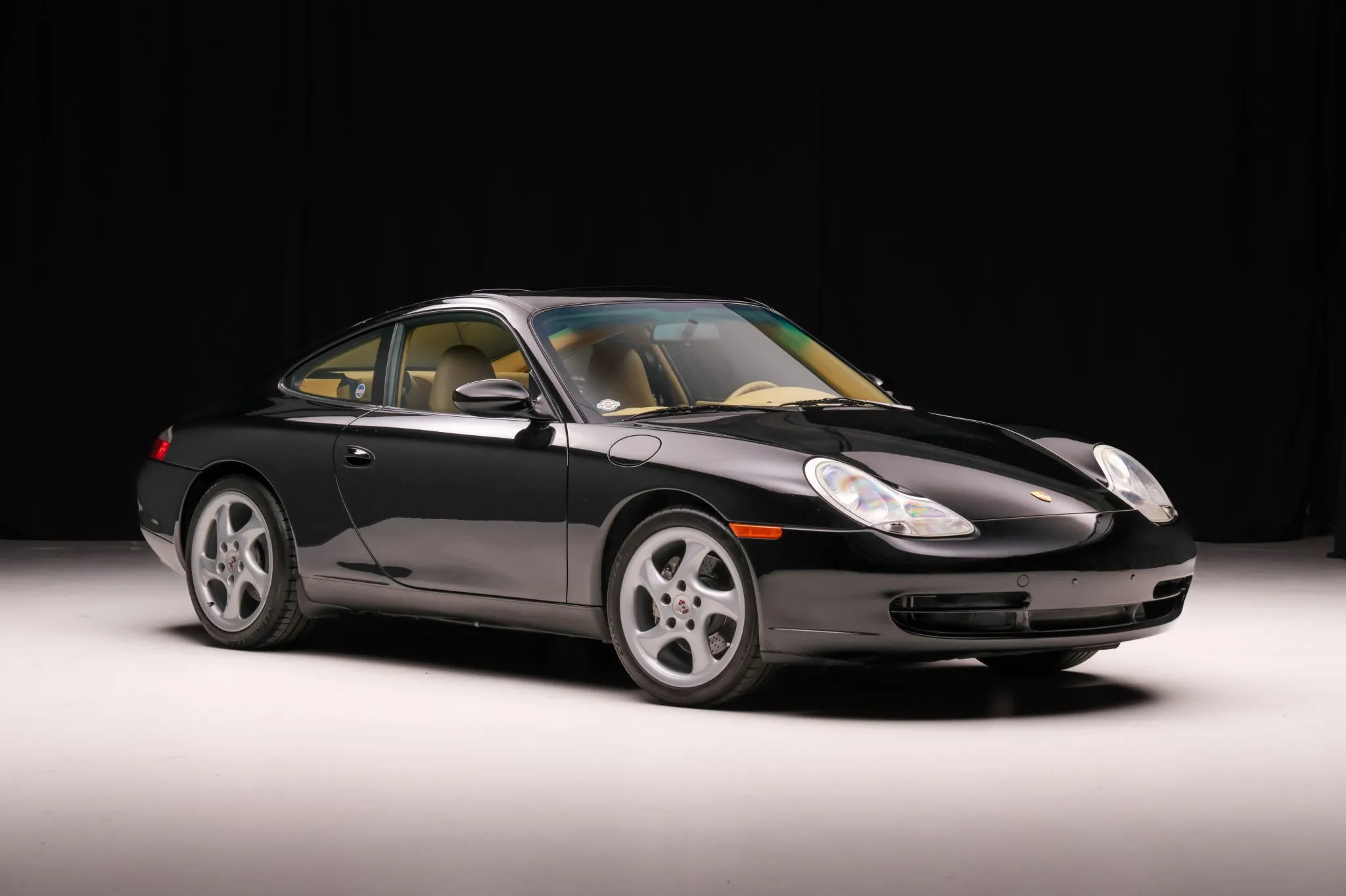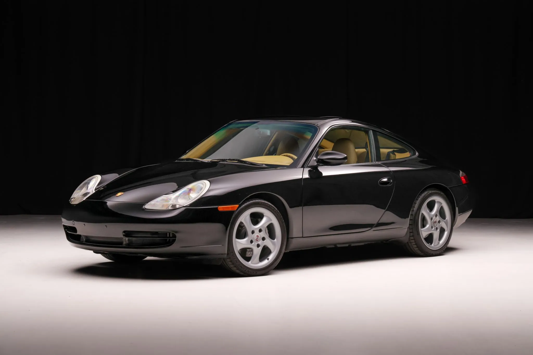 This 2000 Porsche 911 Carrera coupe is finished in black over Savannah Beige leather and is powered by a replacement 3.4-liter flat-six paired with a six-speed manual transaxle.