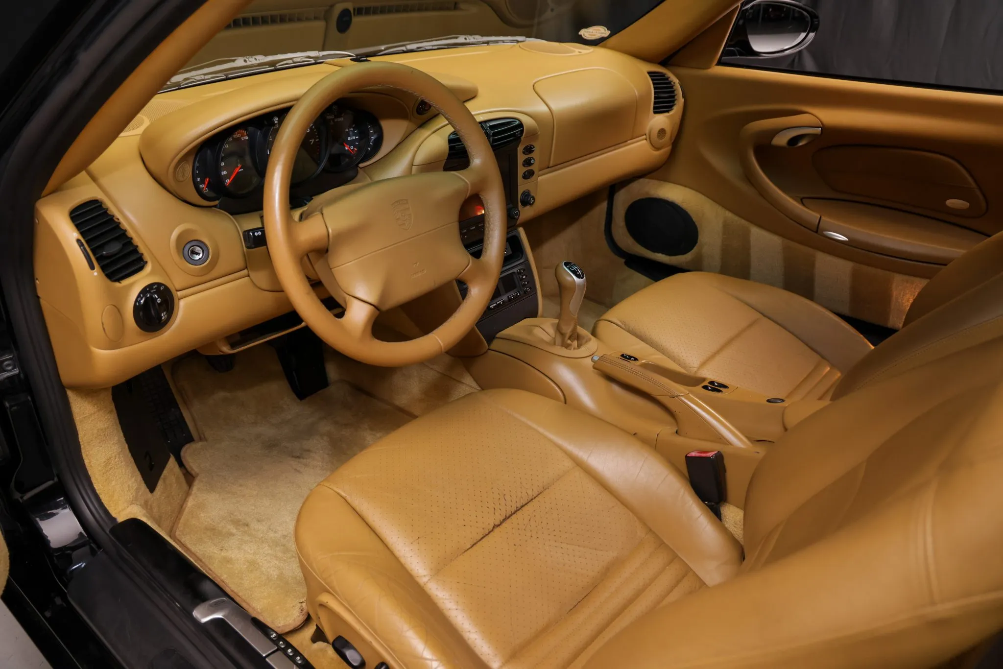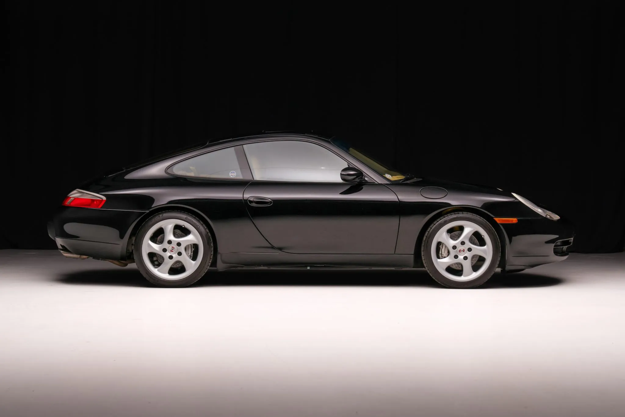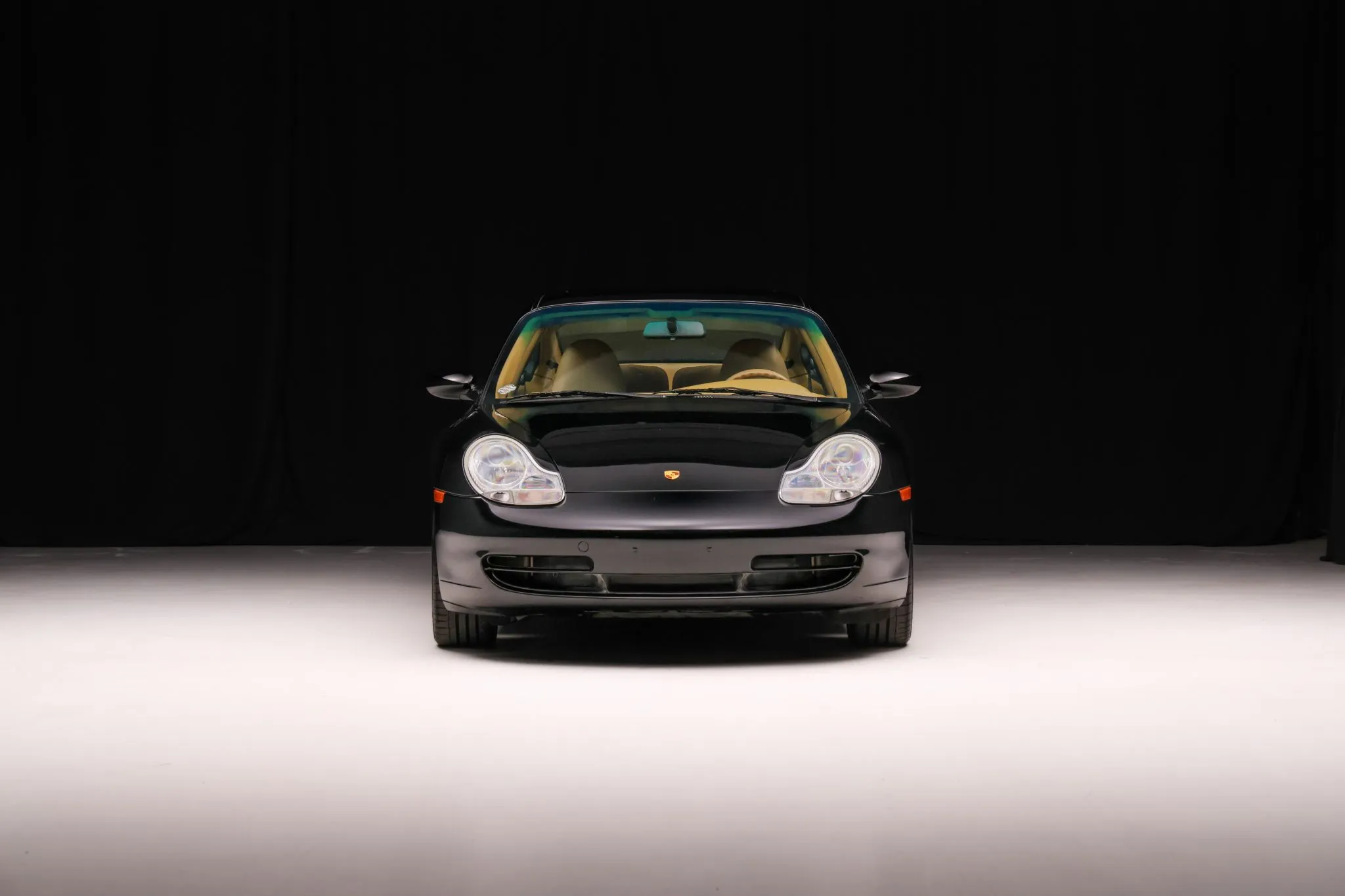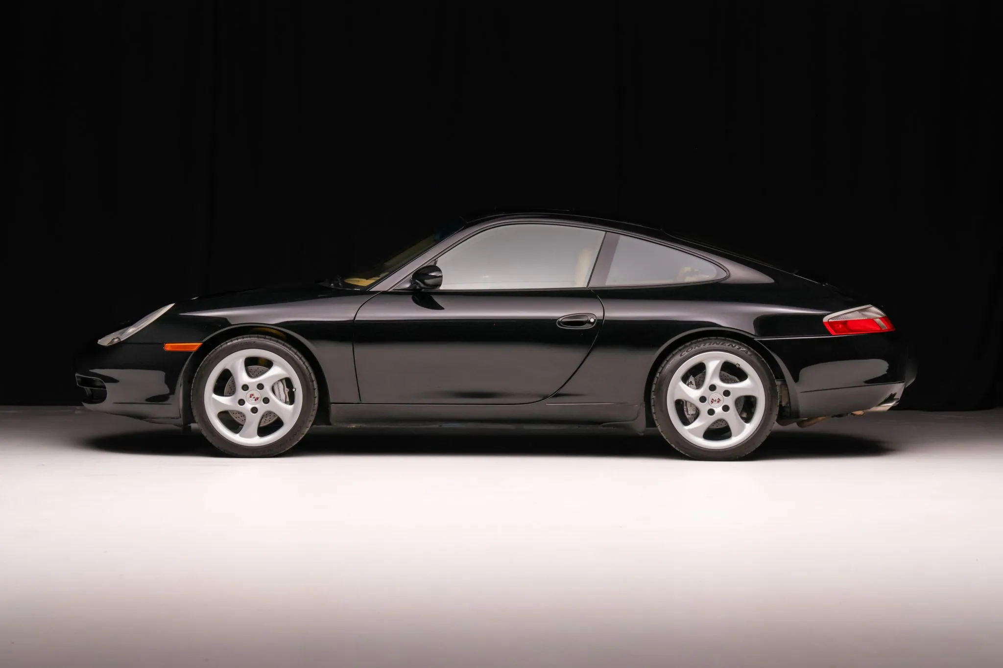 This 2000 Porsche 911 Carrera coupe is finished in black over Savannah Beige leather and is powered by a replacement 3.4-liter flat-six paired with a six-speed manual transaxle.