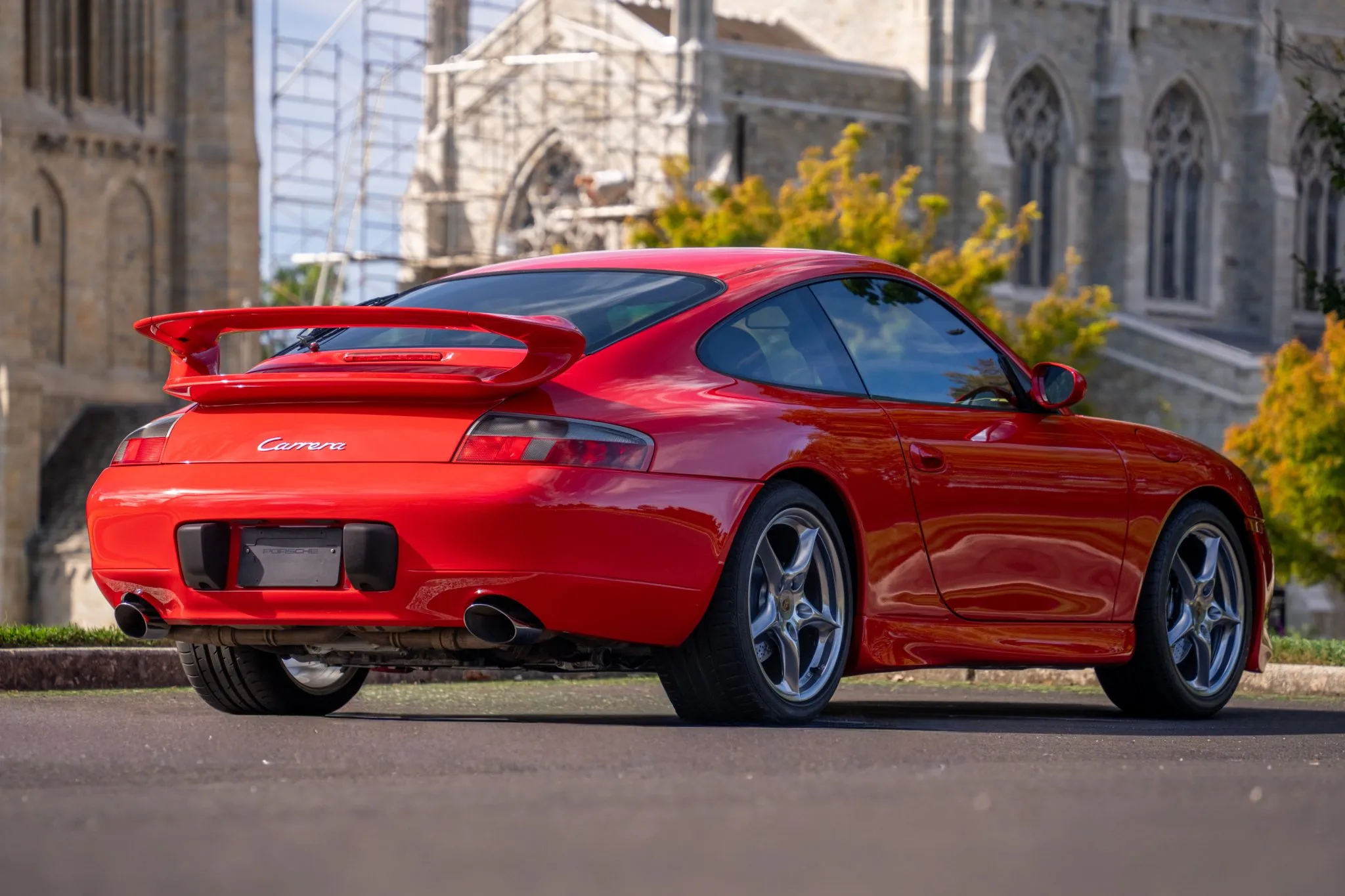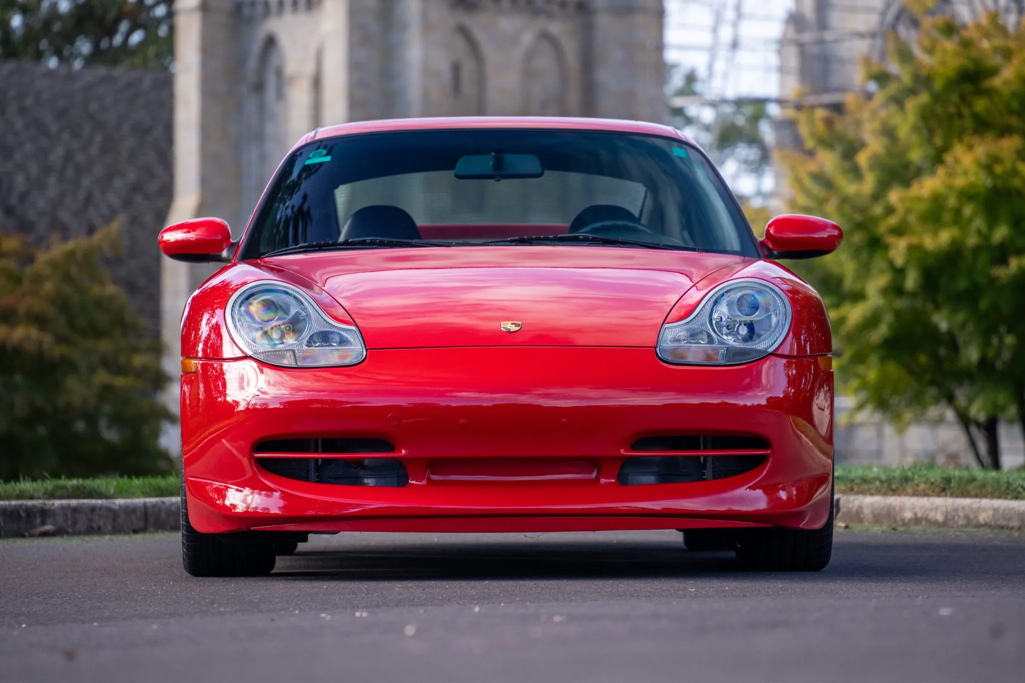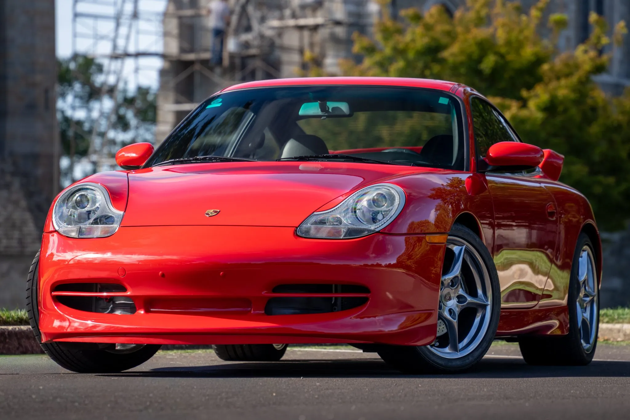 Powered by a 3.4-liter M96 flat-six paired with a six-speed manual transaxle, the car is finished in Guards Red over black full leather upholstery. Equipment includes a sunroof, 18” Carrera II wheels, cruise control, a HiFi sound system, a CDR-220 stereo, and automatic climate control.