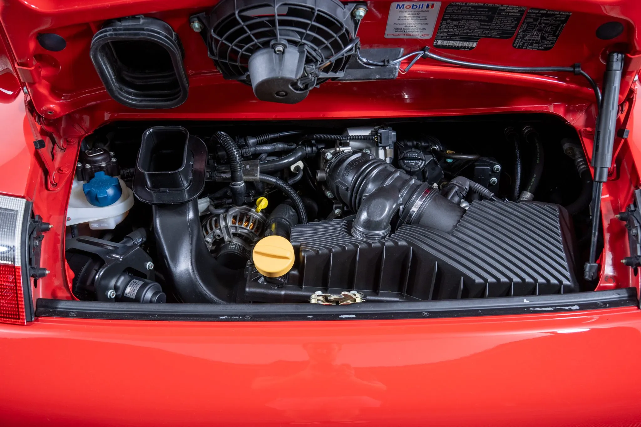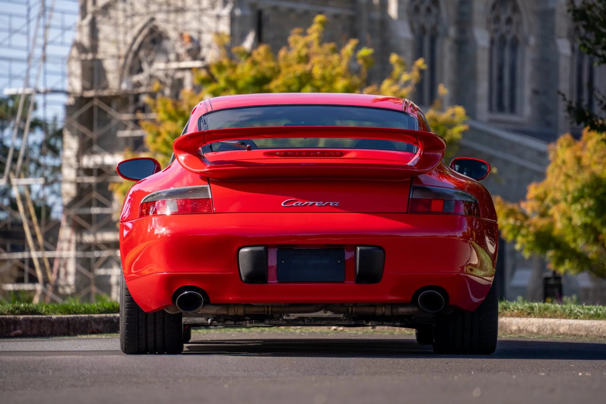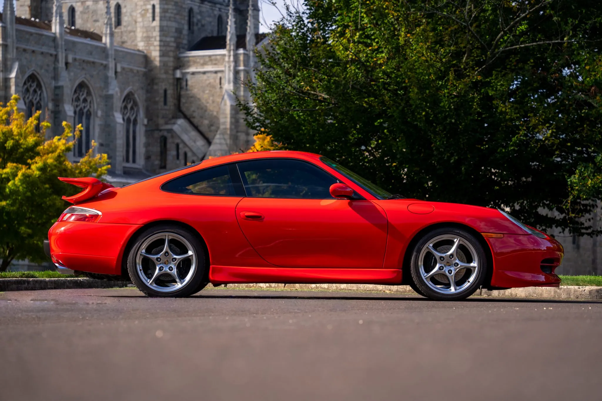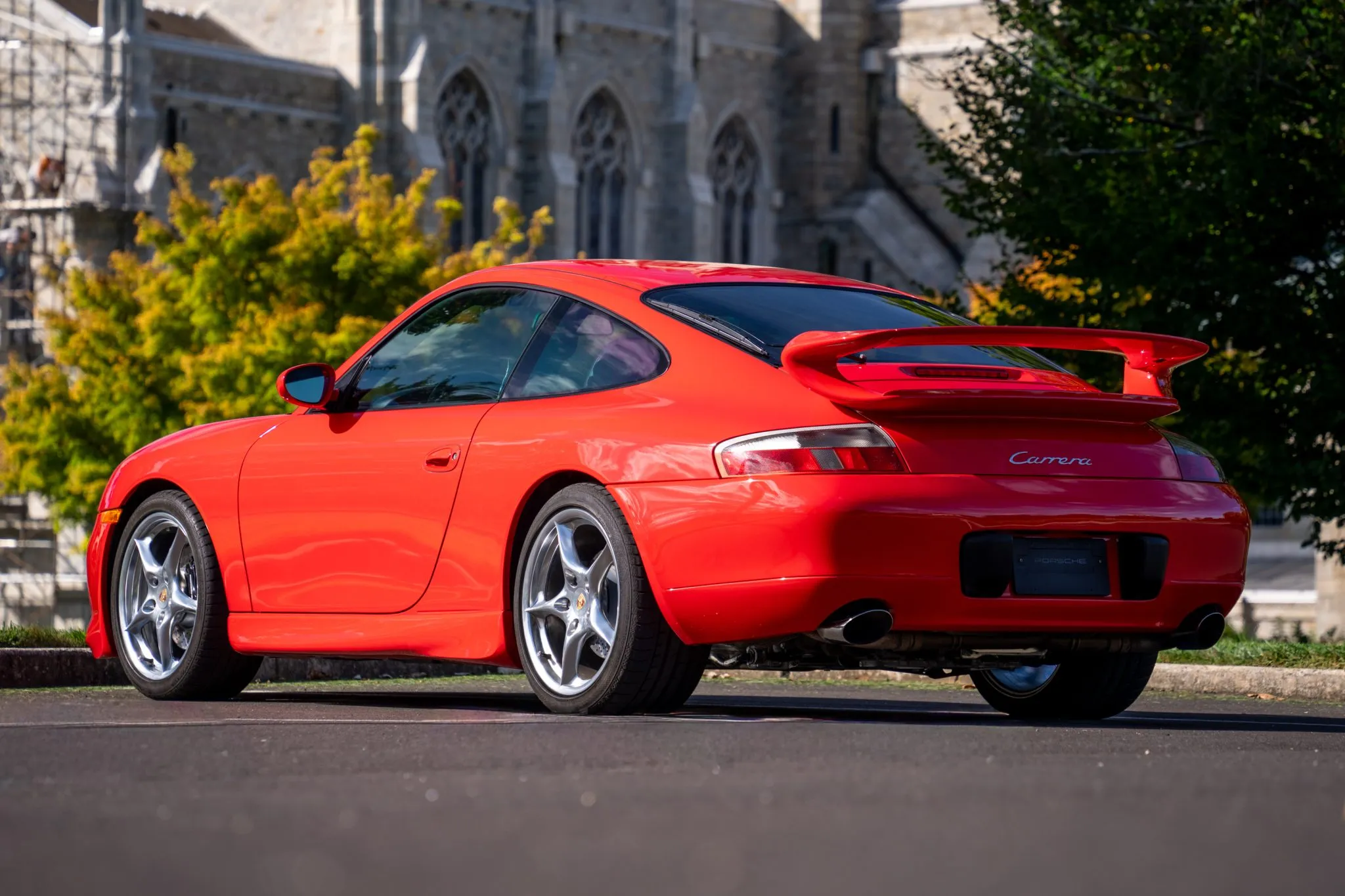 Powered by a 3.4-liter M96 flat-six paired with a six-speed manual transaxle, the car is finished in Guards Red over black full leather upholstery. Equipment includes a sunroof, 18” Carrera II wheels, cruise control, a HiFi sound system, a CDR-220 stereo, and automatic climate control.