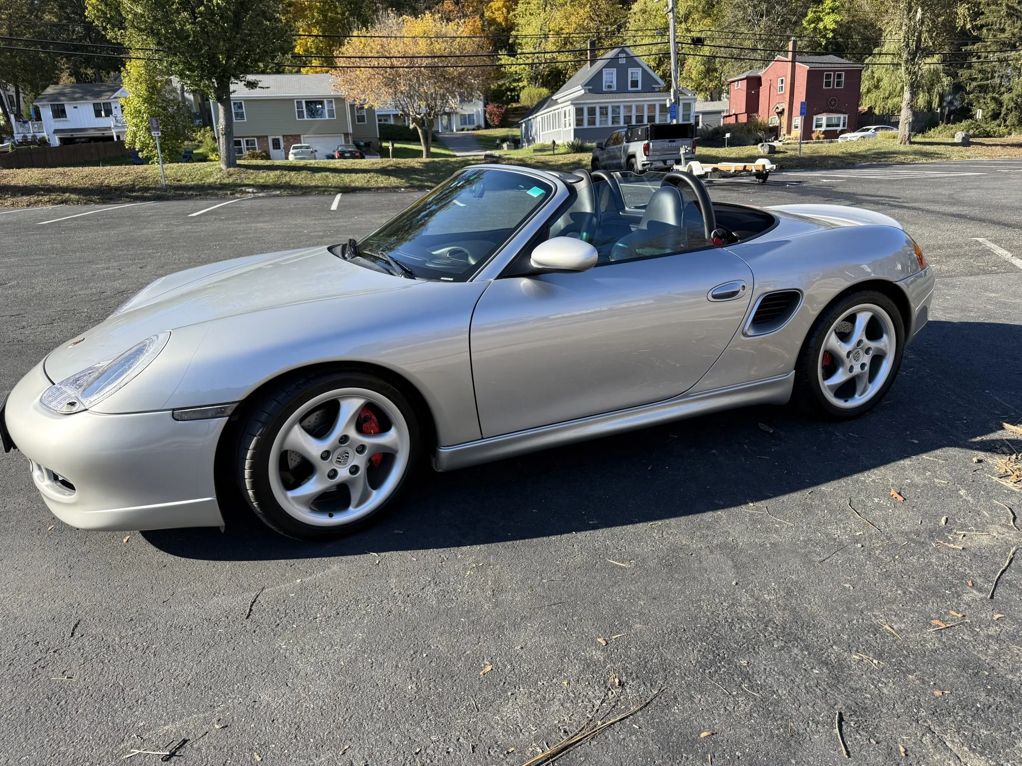 The seller purchased the car in September 2025 and has since added approximately 200 miles. This 986 Boxster S is now offered with a window sticker, service records dating back to 2002, a clean Carfax report, and a clean Massachusetts title in the seller’s name.