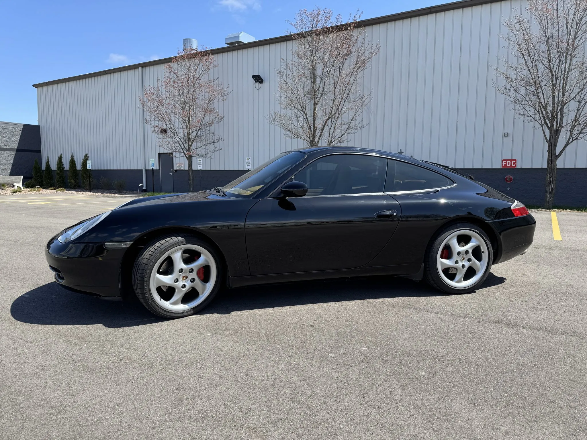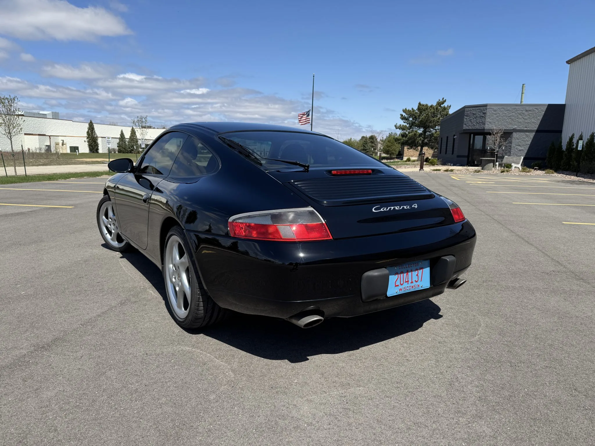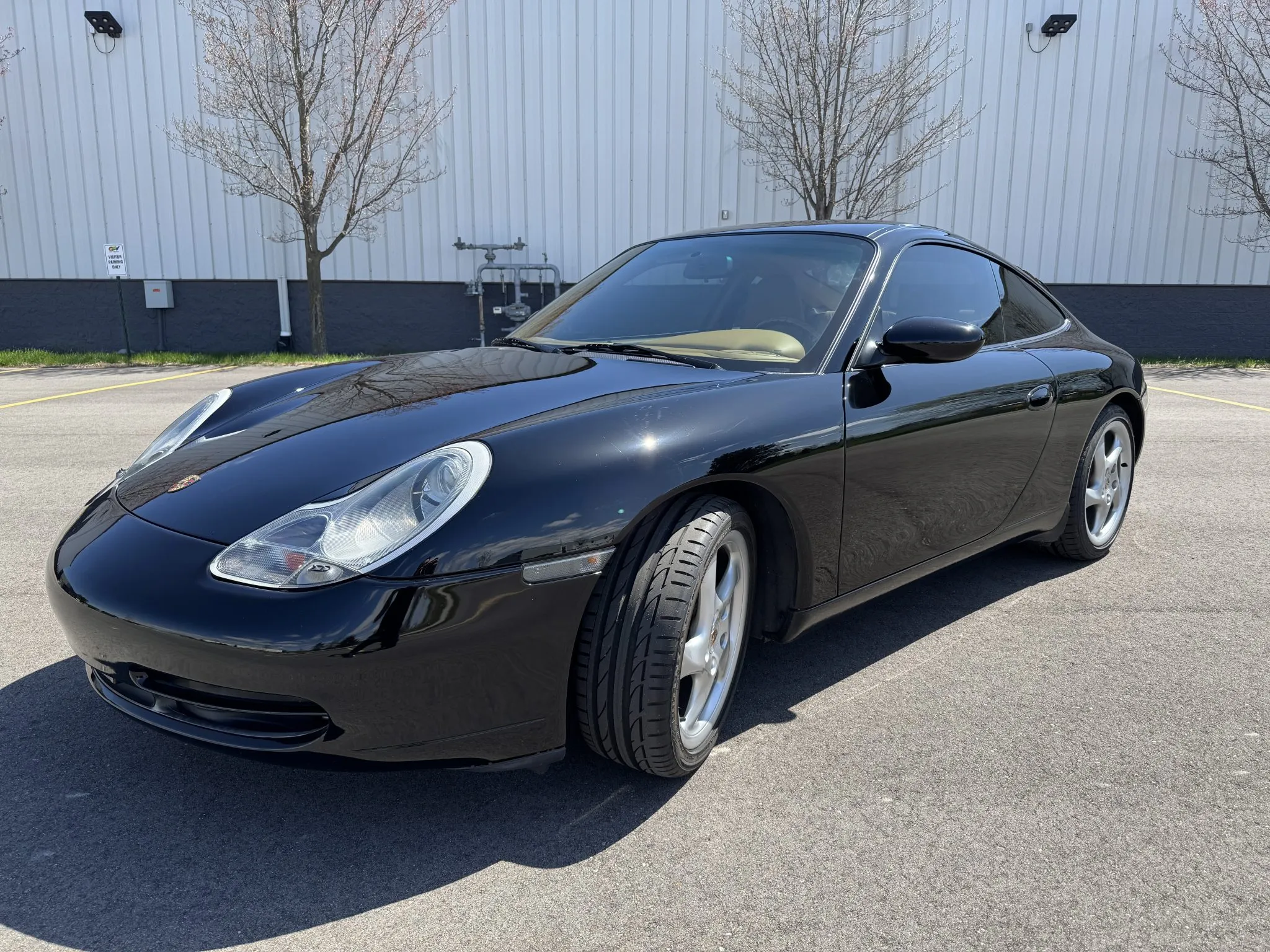 This 2001 Porsche 911 Carrera 4 coupe is finished in black over Savannah Beige leather and is powered by a 3.4-liter M96 flat-six that drives all four wheels through a six-speed manual transaxle.