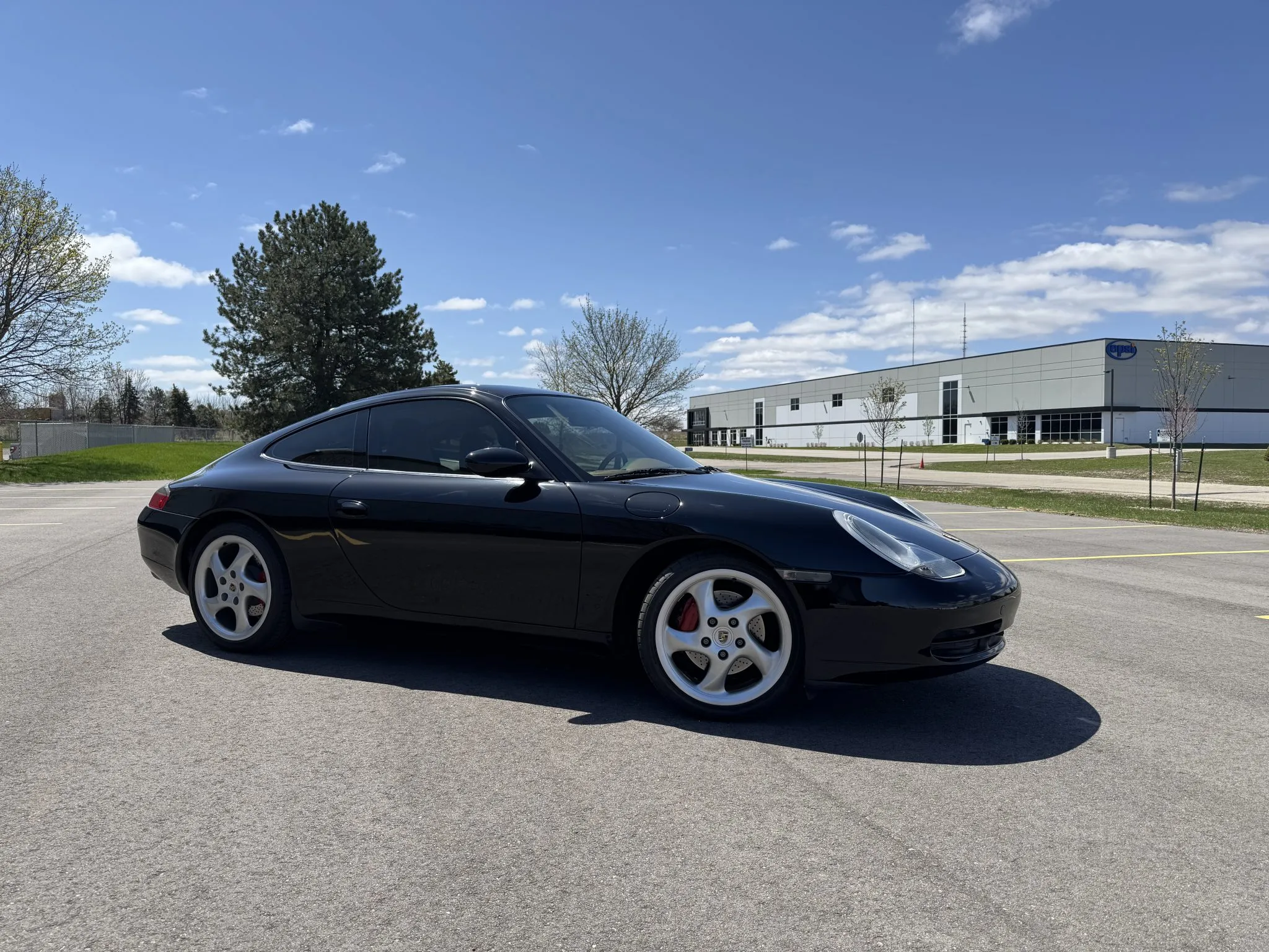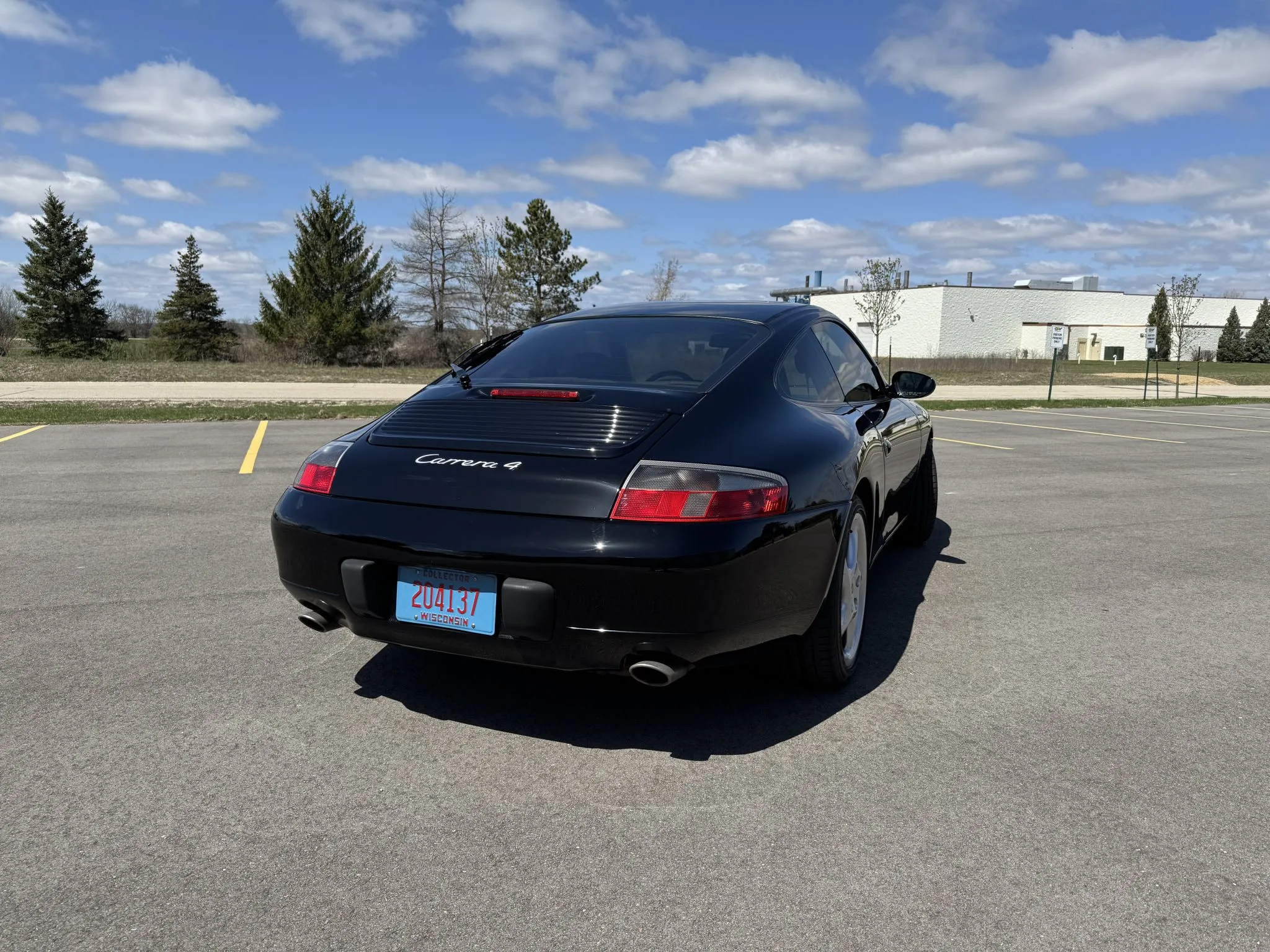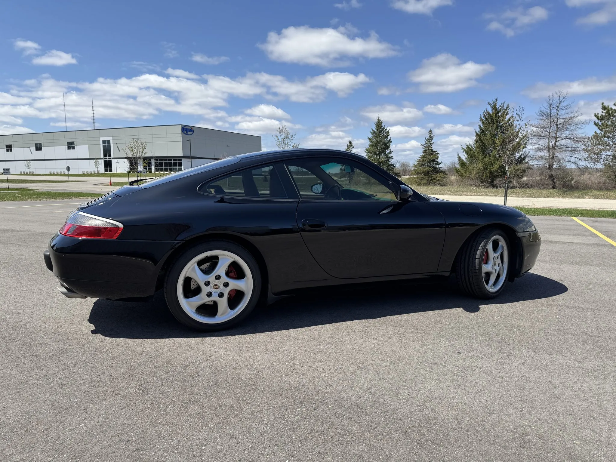 This 2001 Porsche 911 Carrera 4 coupe is finished in black over Savannah Beige leather and is powered by a 3.4-liter M96 flat-six that drives all four wheels through a six-speed manual transaxle.