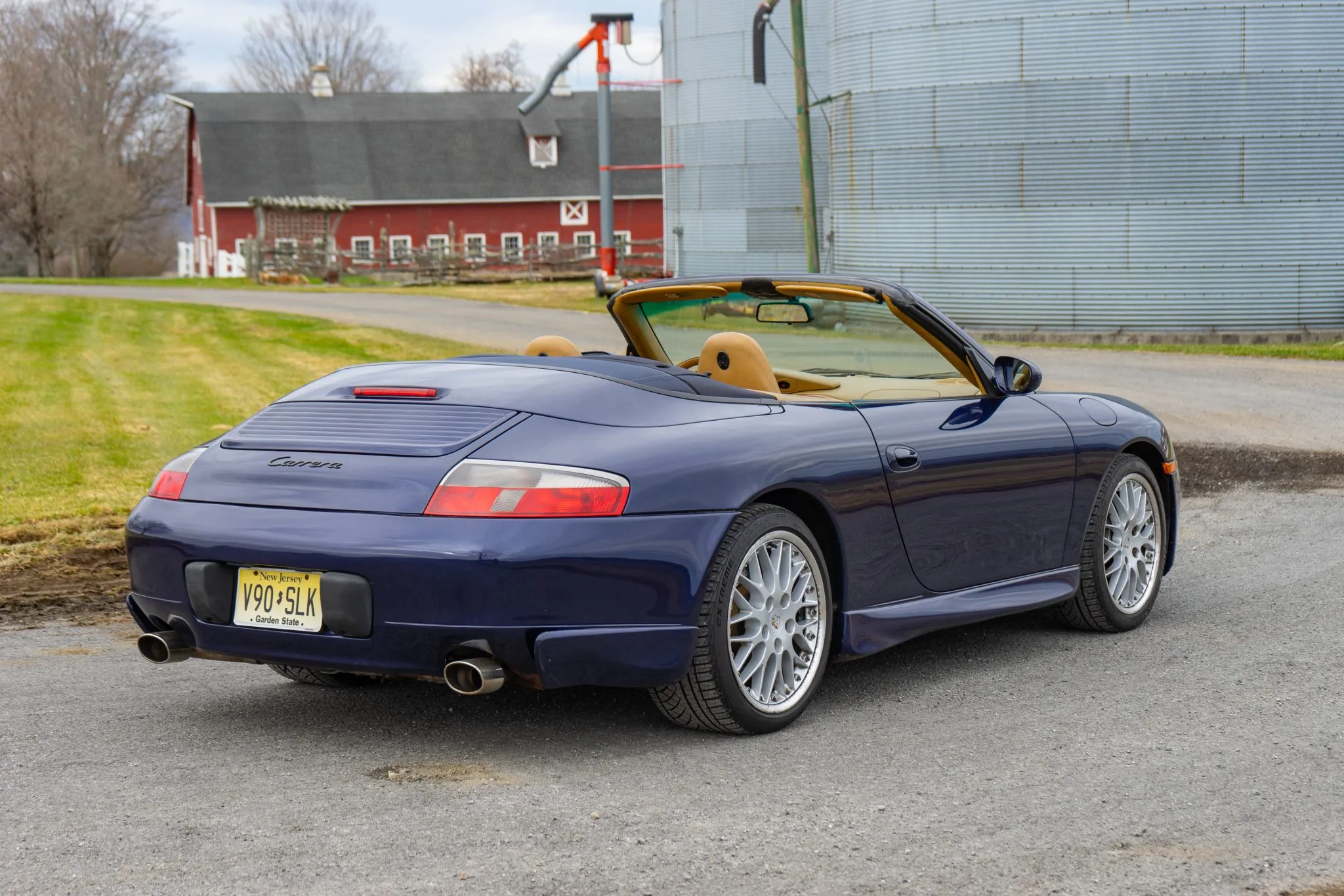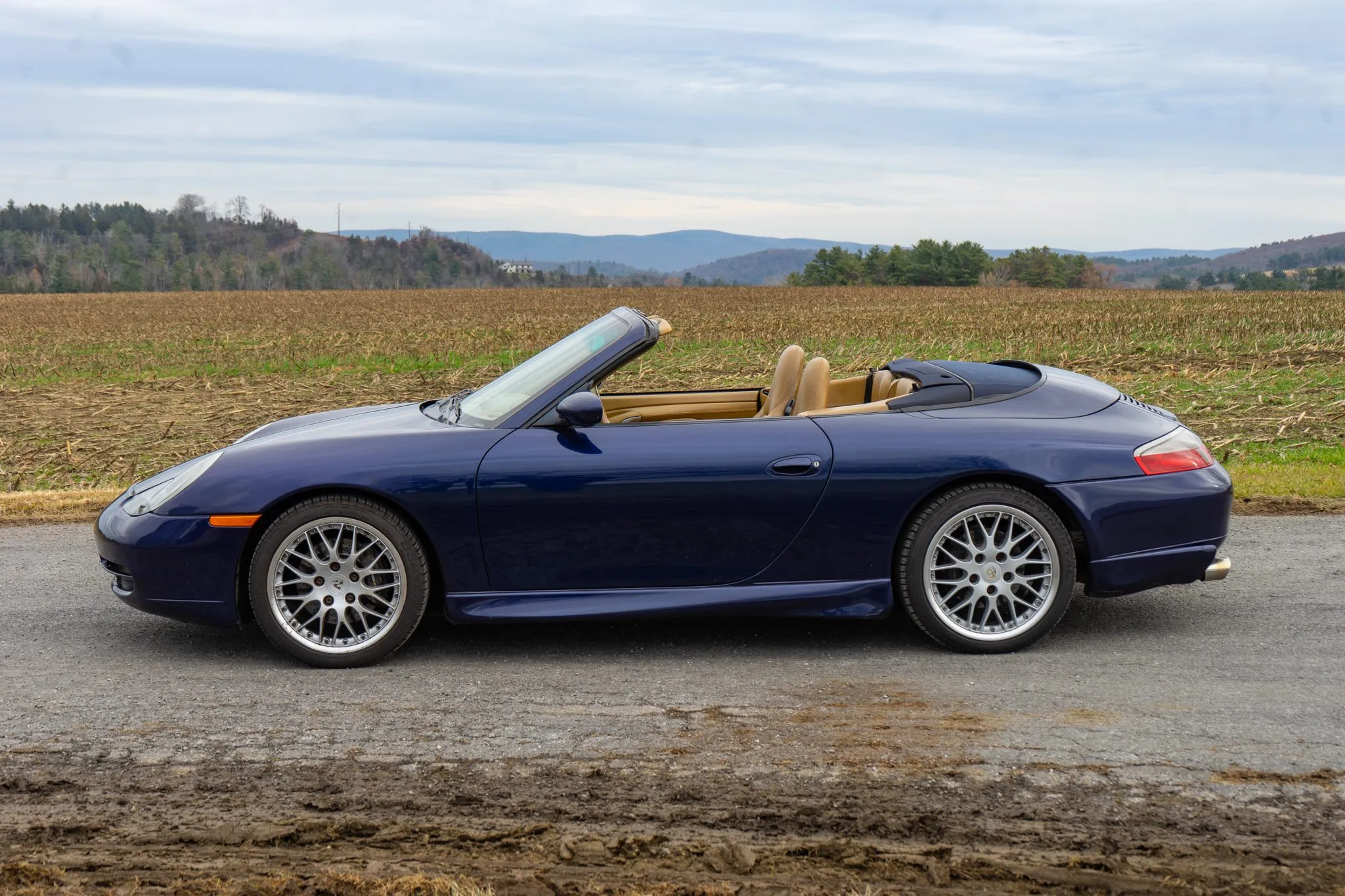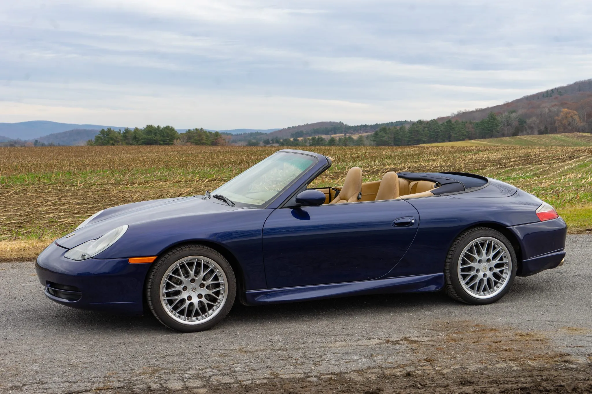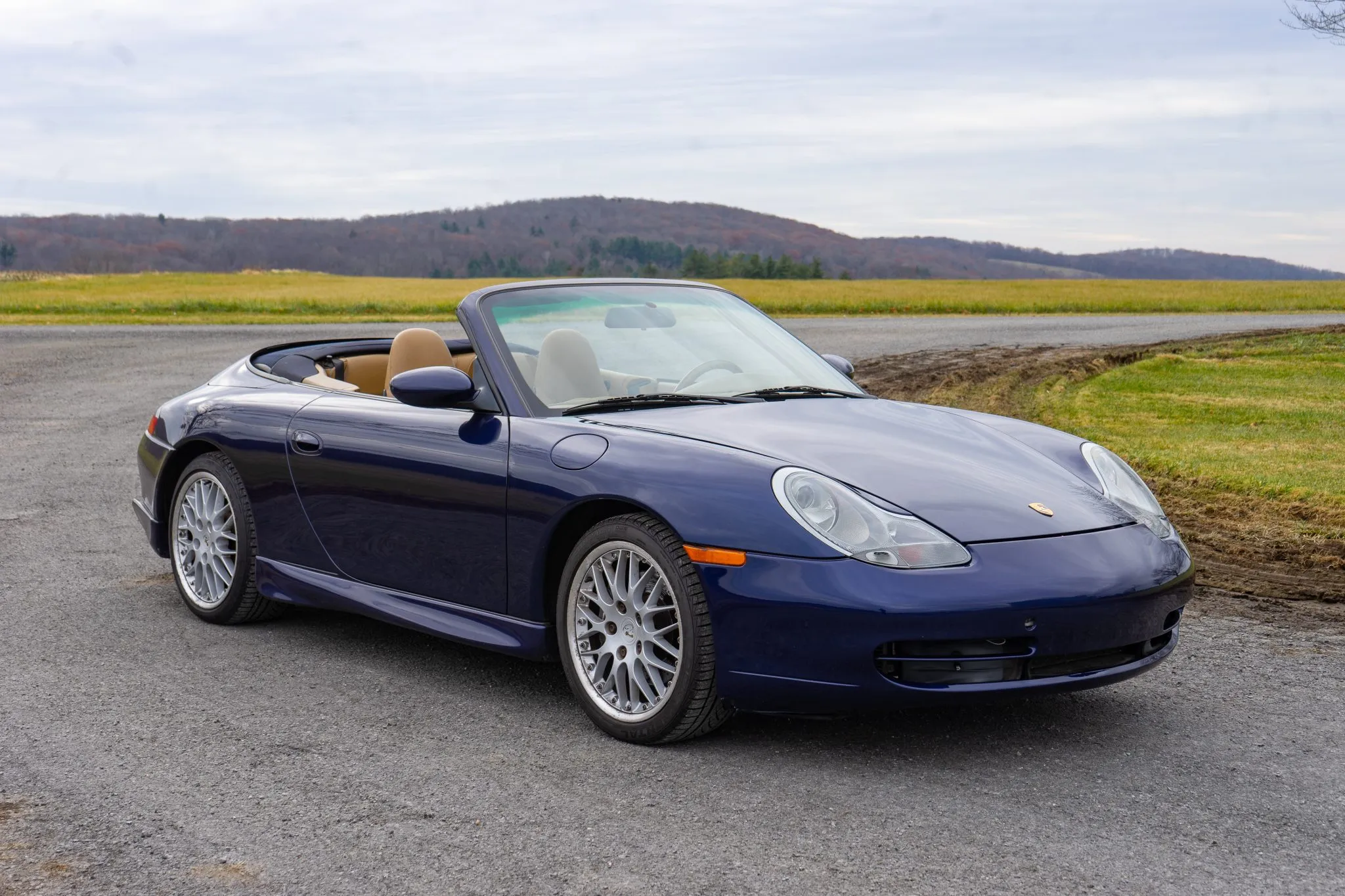 This 2001 Porsche 911 Carrera cabriolet is finished in Lapis Blue Metallic over Savanna Beige leather and is powered by a 3.4-liter M96 flat-six paired with a five-speed automatic transaxle.