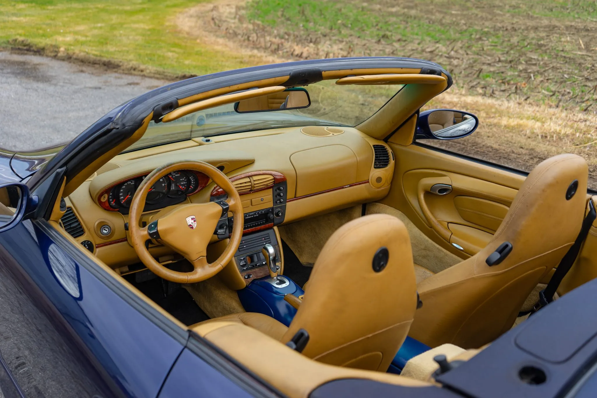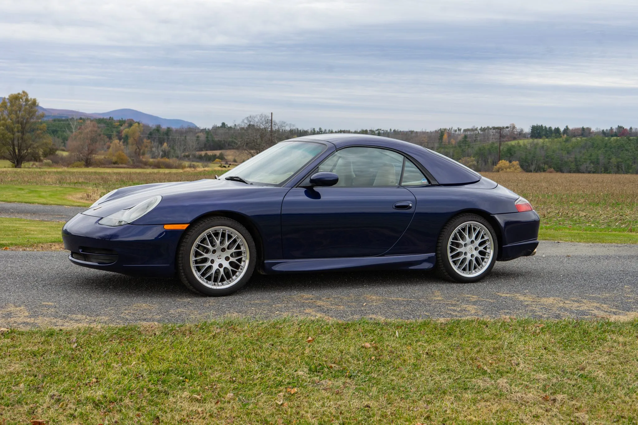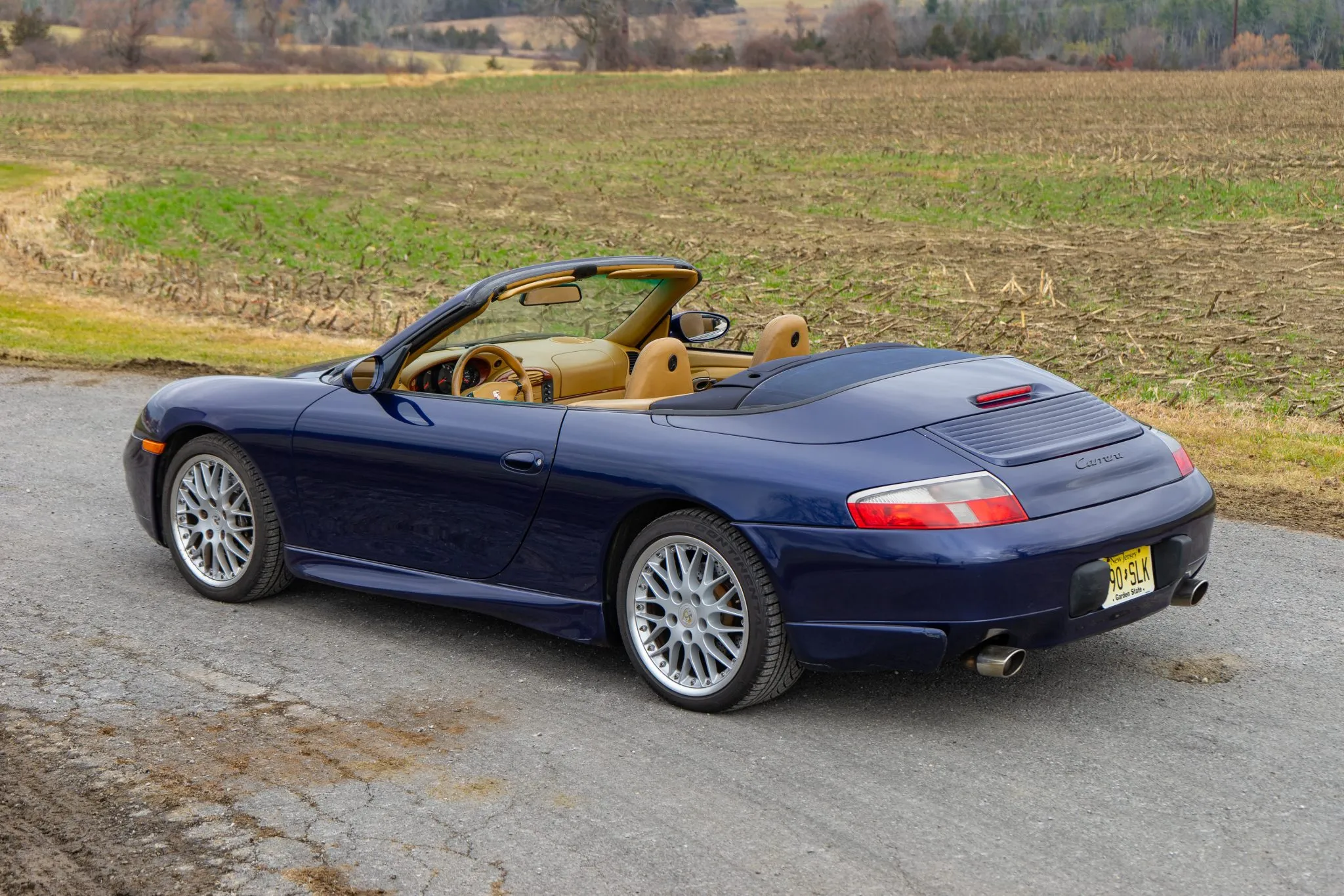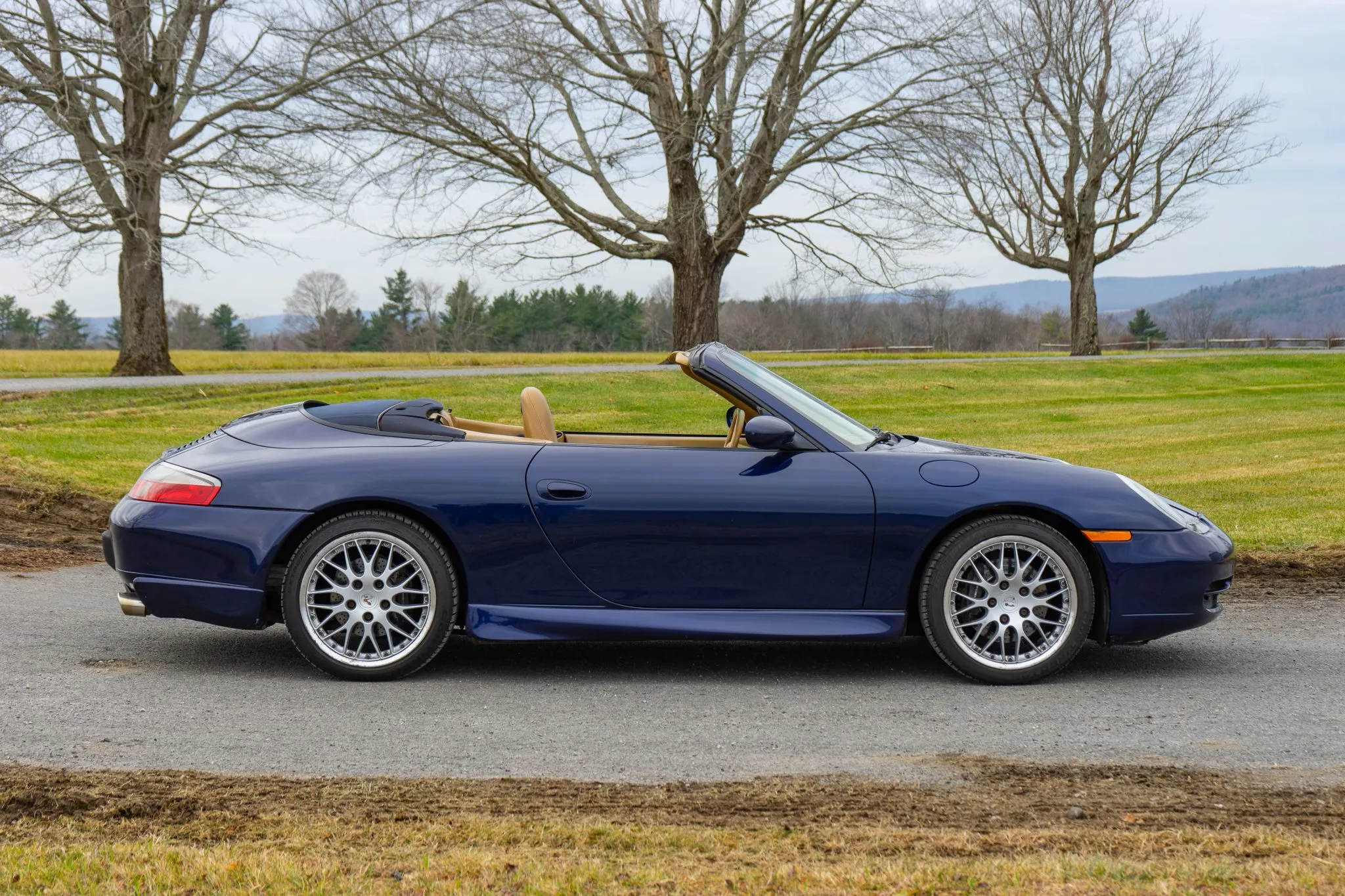 This 2001 Porsche 911 Carrera cabriolet is finished in Lapis Blue Metallic over Savanna Beige leather and is powered by a 3.4-liter M96 flat-six paired with a five-speed automatic transaxle.