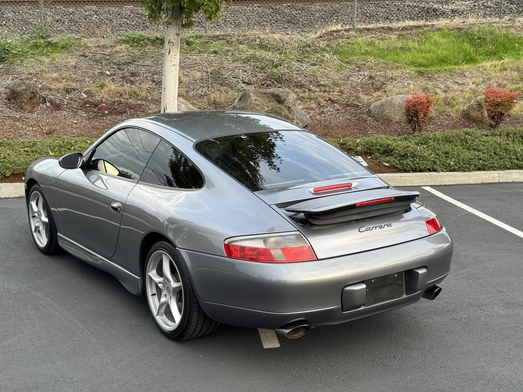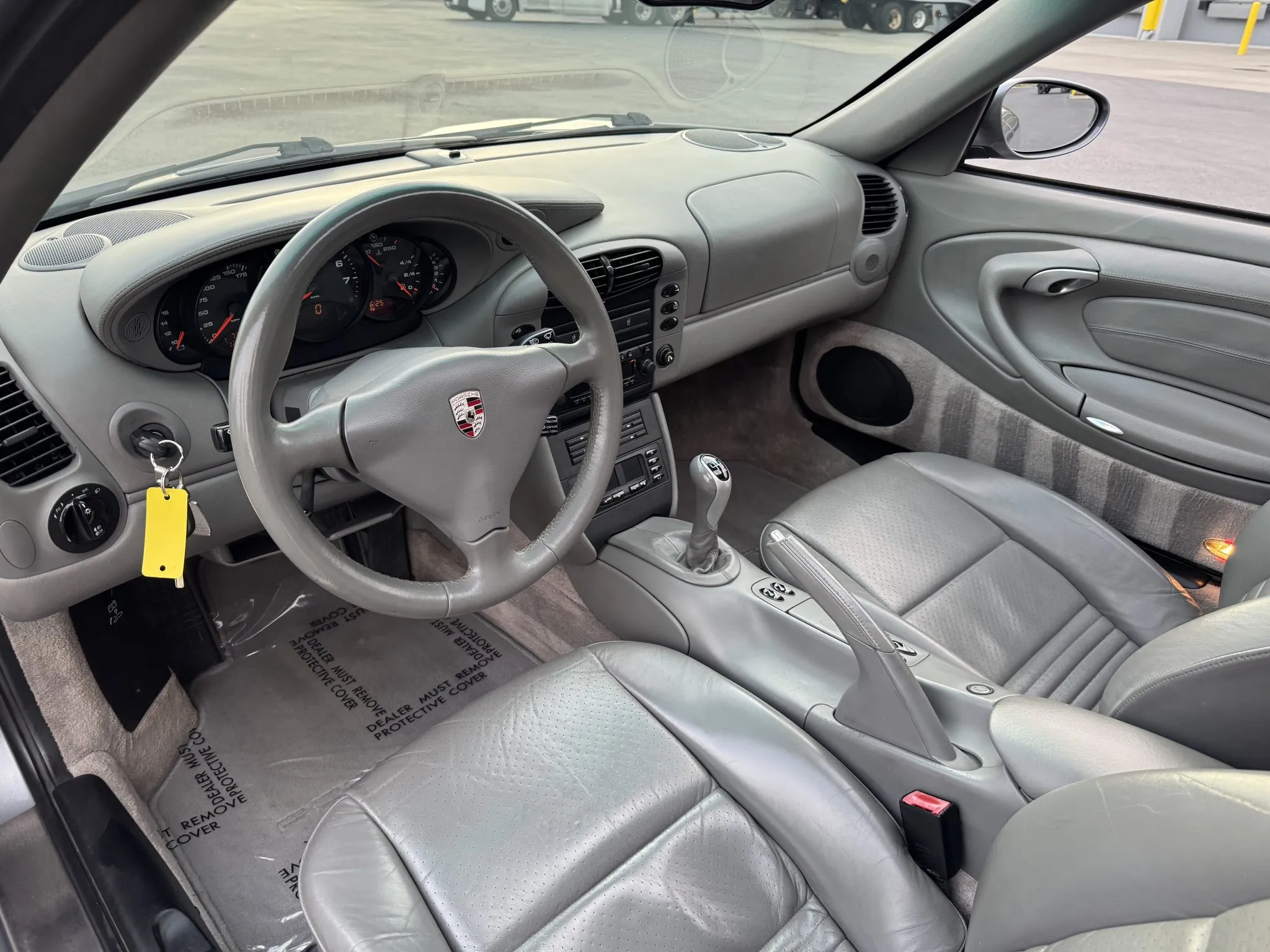 This 2001 Porsche 911 Carrera coupe is powered by a 3.4-liter M96 flat-six paired with a six-speed manual transaxle and is finished in Seal Gray Metallic over gray leather upholstery.