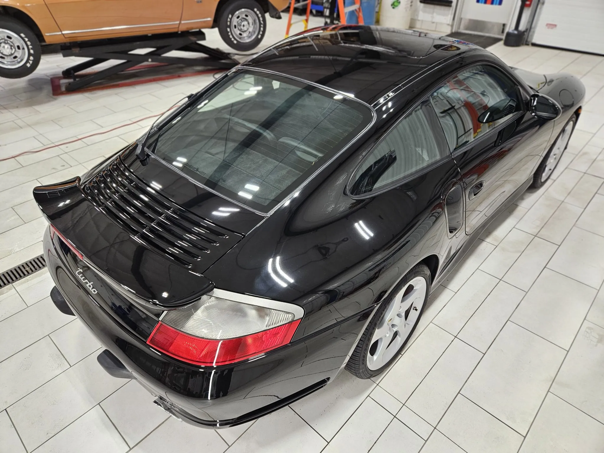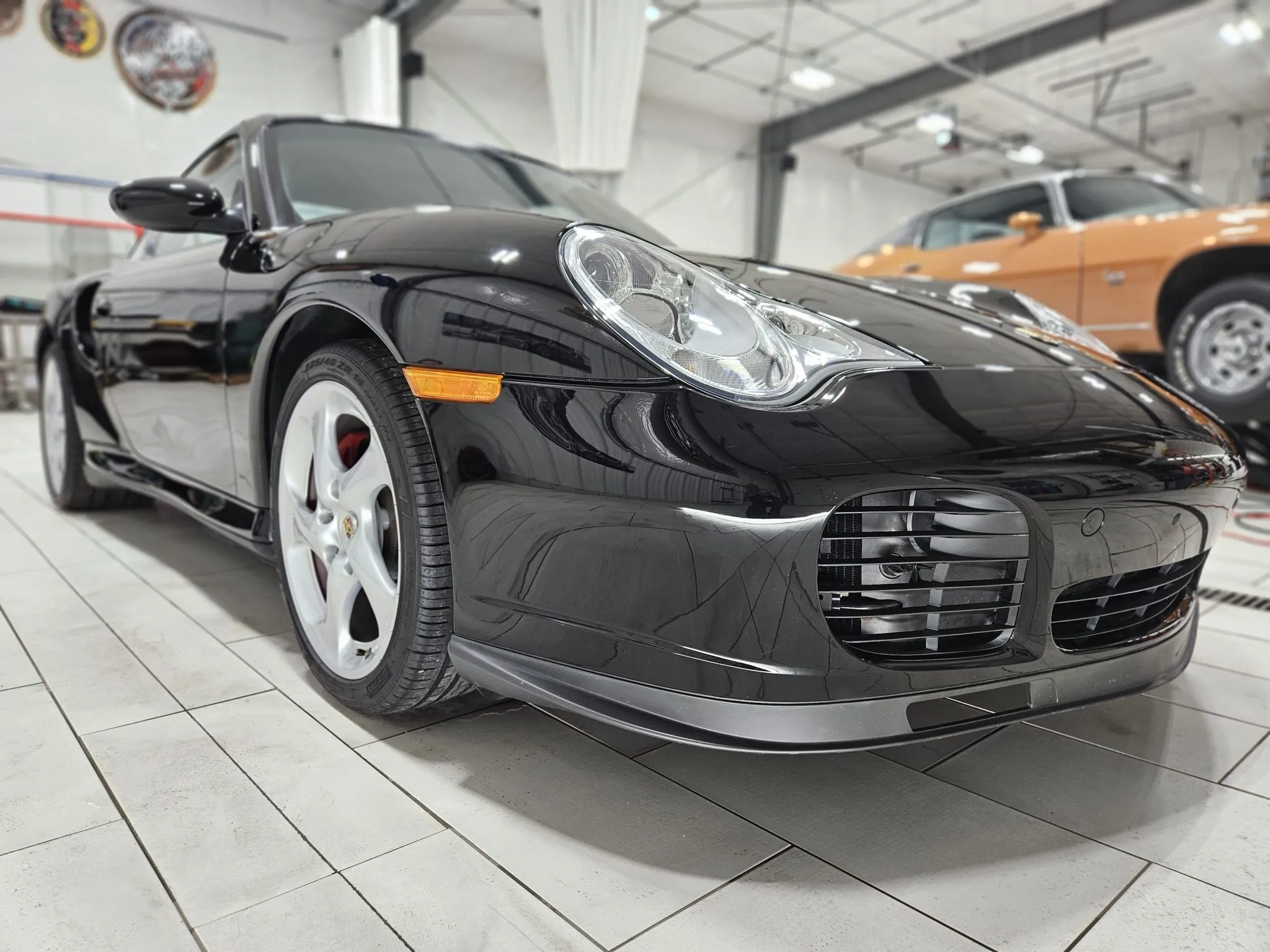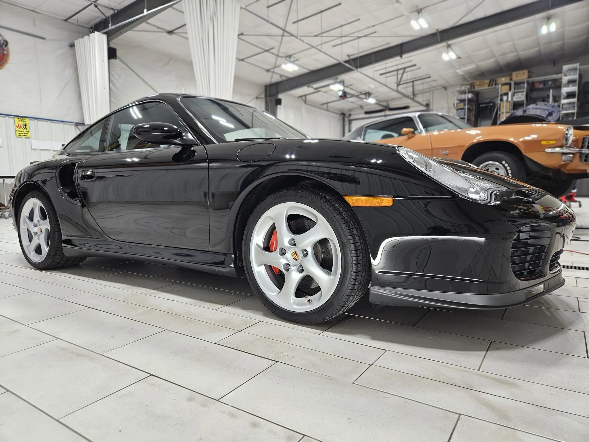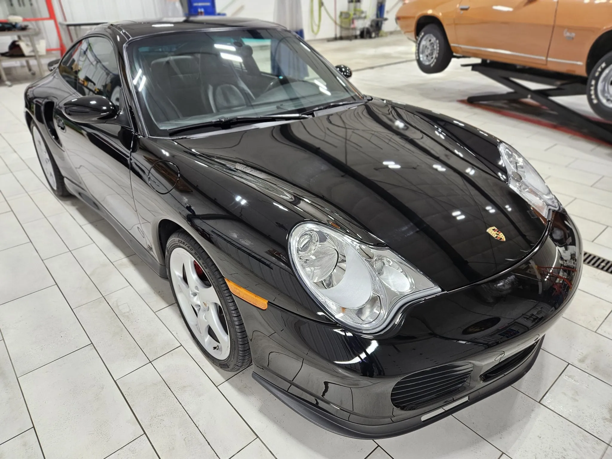 This 2002 Porsche 911 Turbo coupe was acquired in 2008 by the owner, with whom it has subsequently traveled 22k of its 34k miles. It is finished in Black over black leather and is powered by a twin-turbocharged 3.6L flat-six that drives all four wheels via a six-speed manual transaxle.