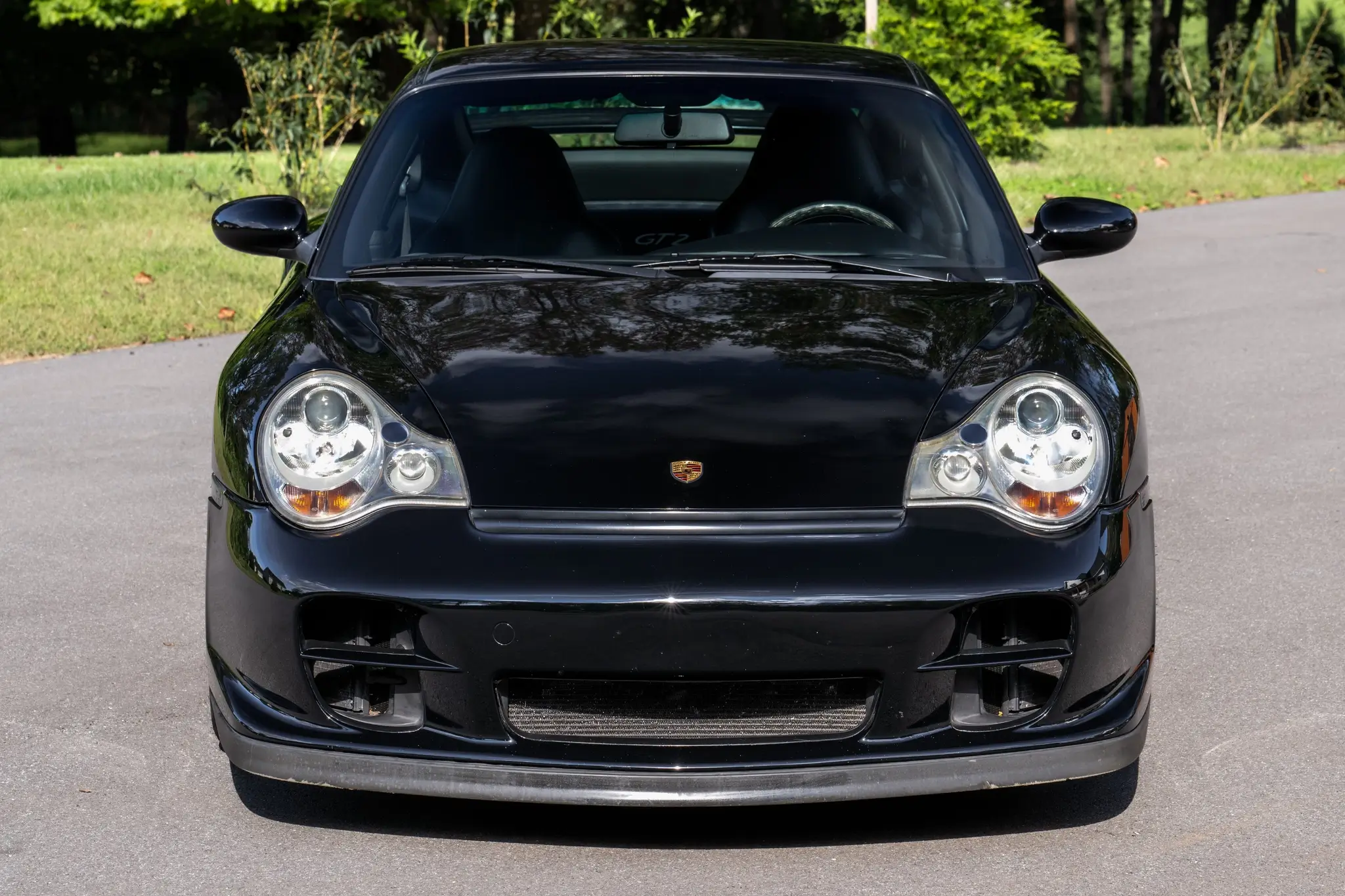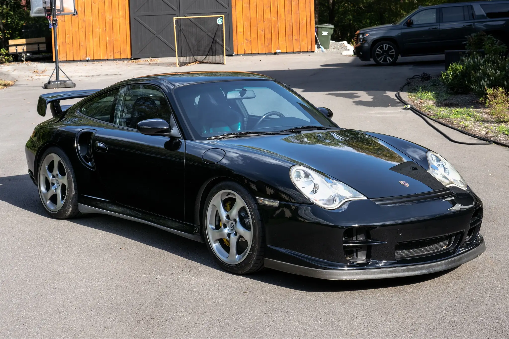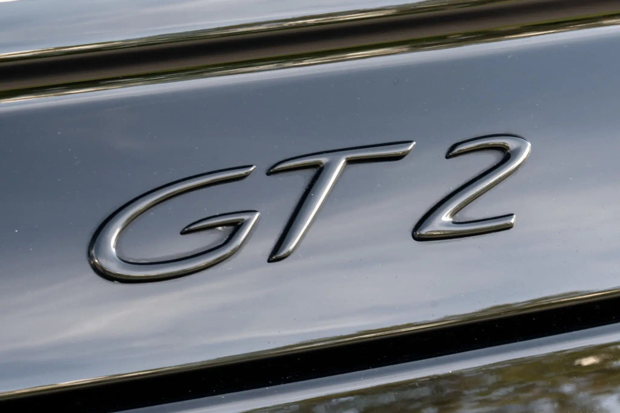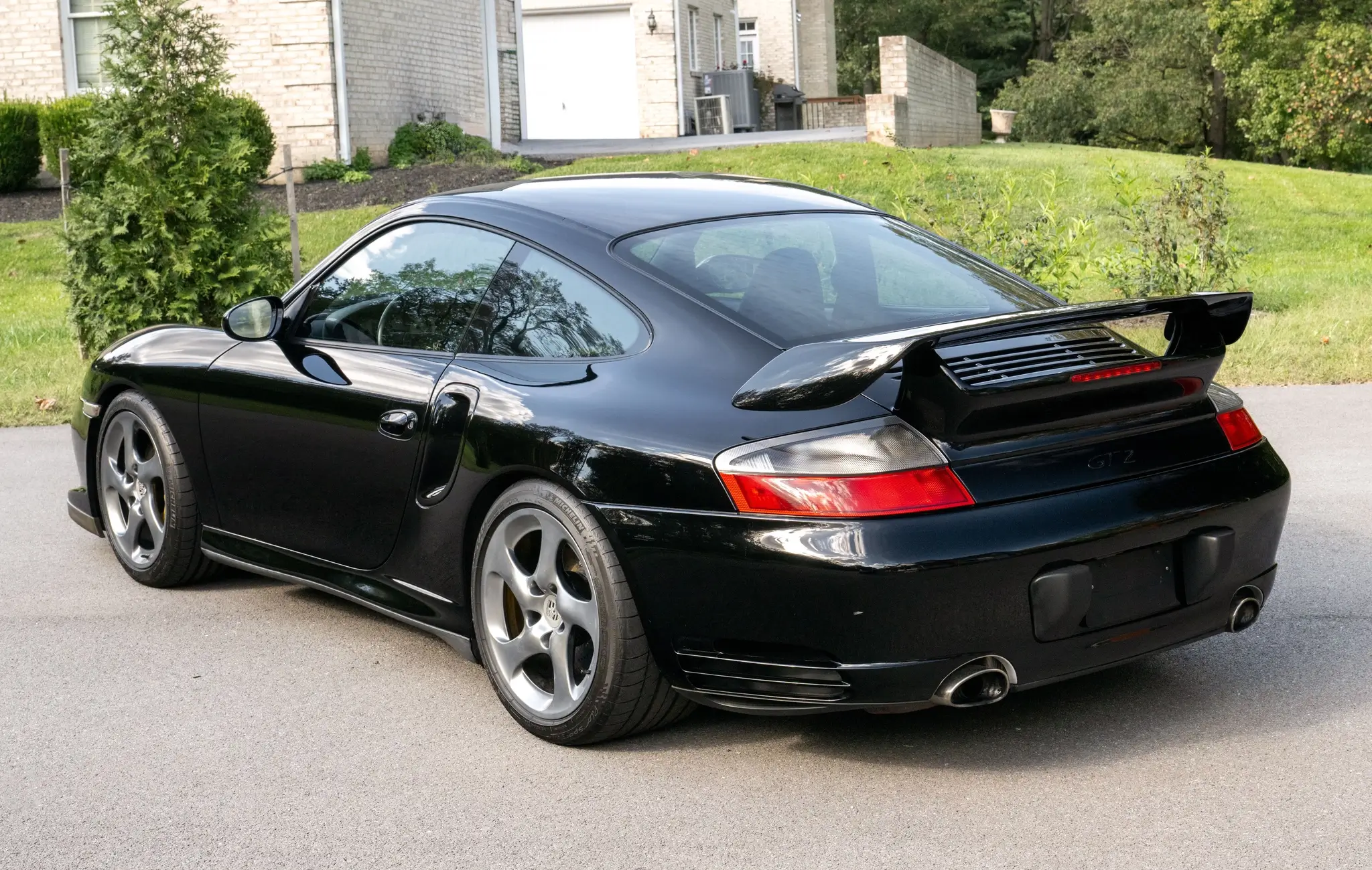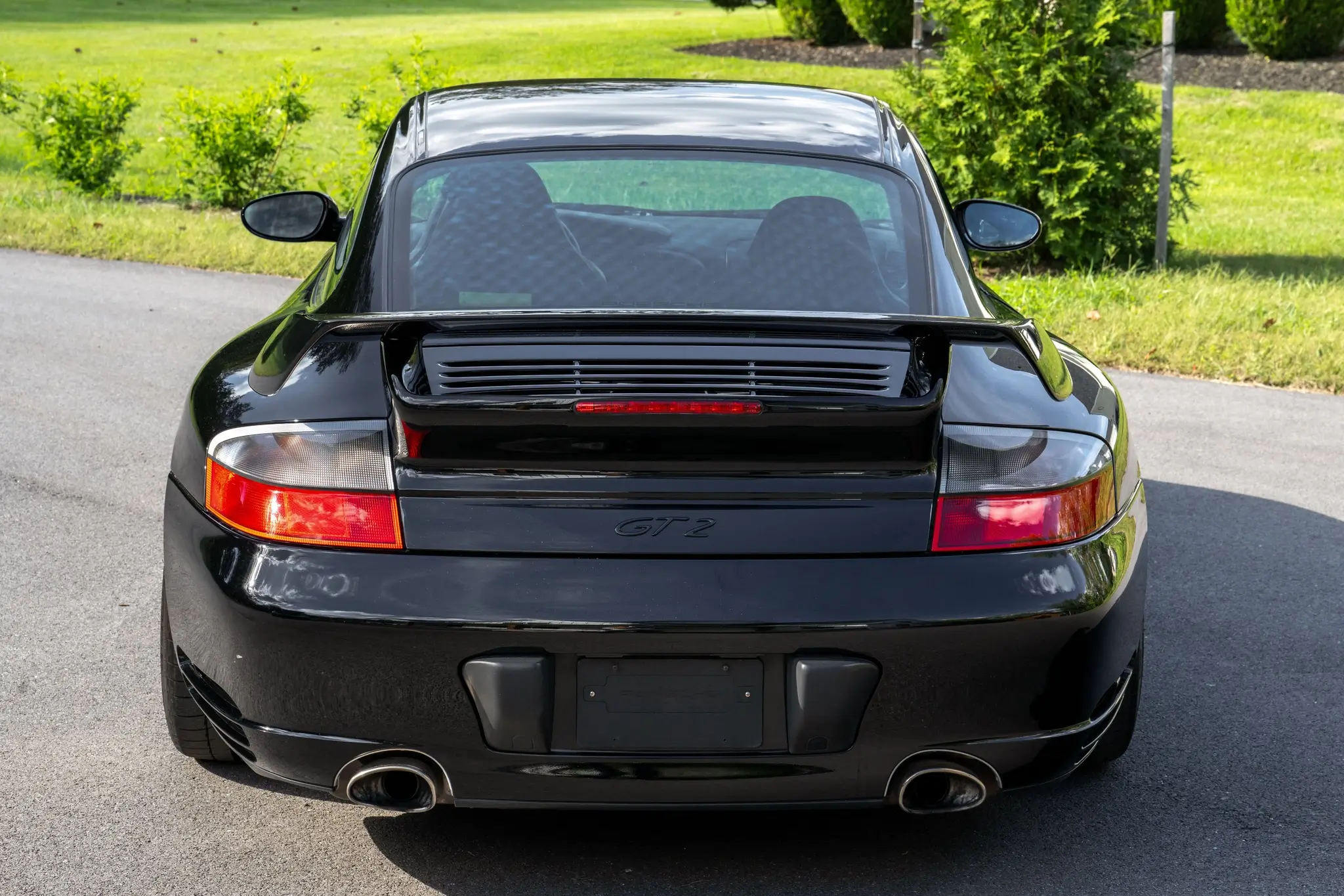 One of just 303 examples reportedly delivered to the United States, this 2002 GT2 is finished in Black over a matching interior and was optioned with aluminum instrument dials, a carbon fiber and leather-trimmed three-spoke steering wheel, carbon and aluminum-accented shift and brake levers, and a silver-painted rear center console.