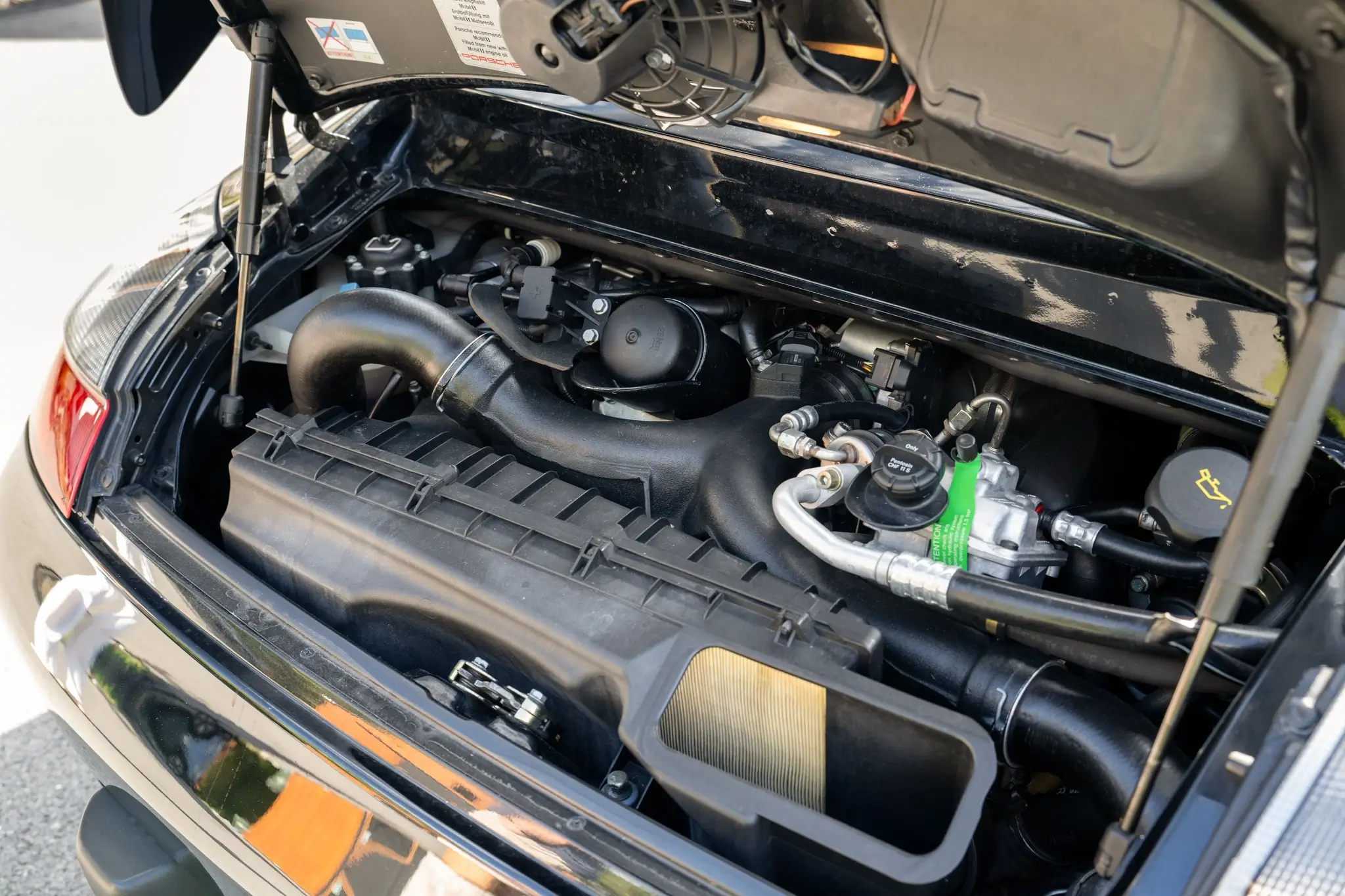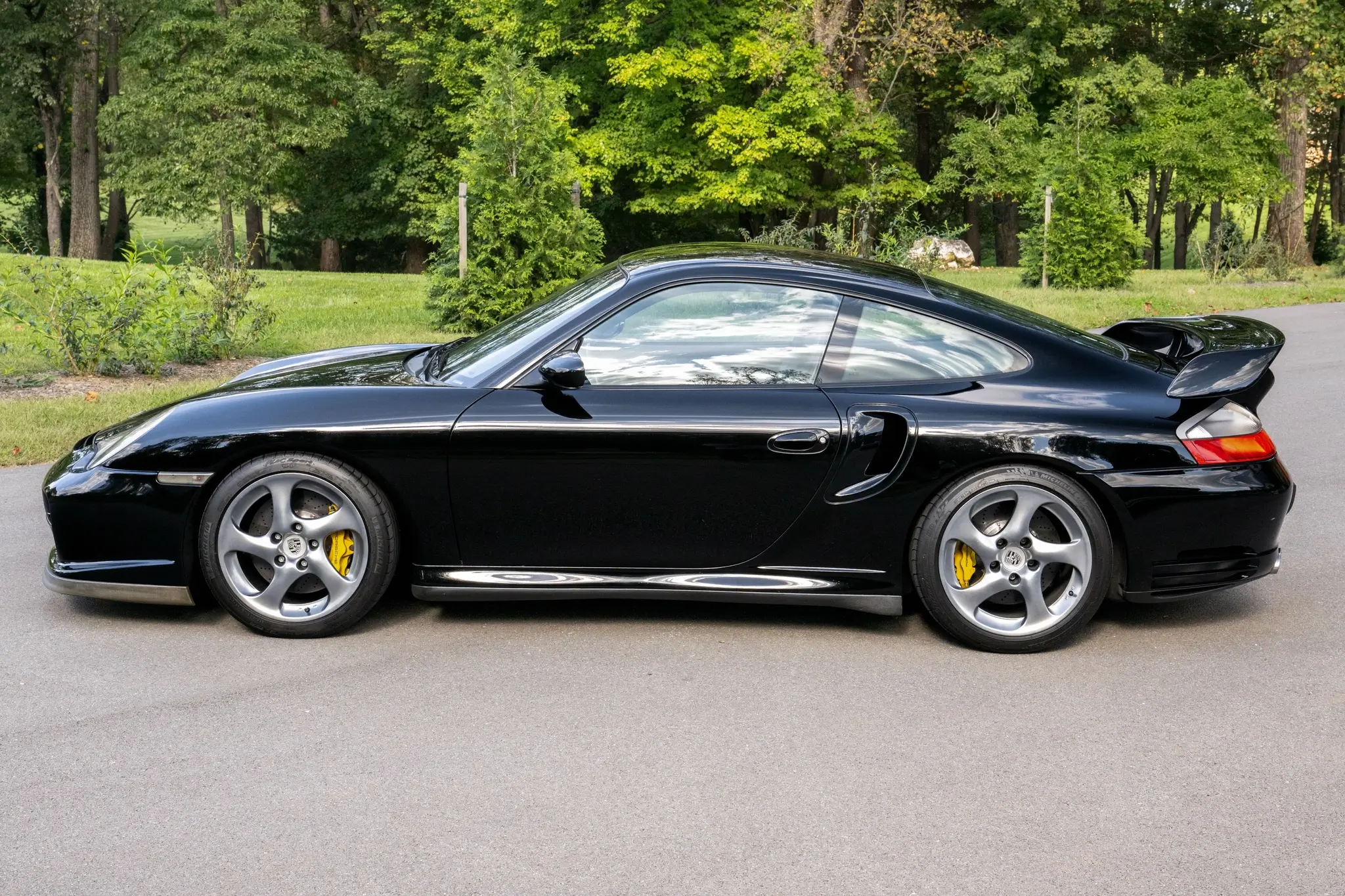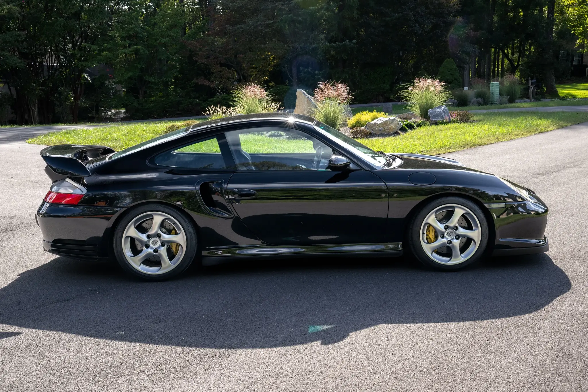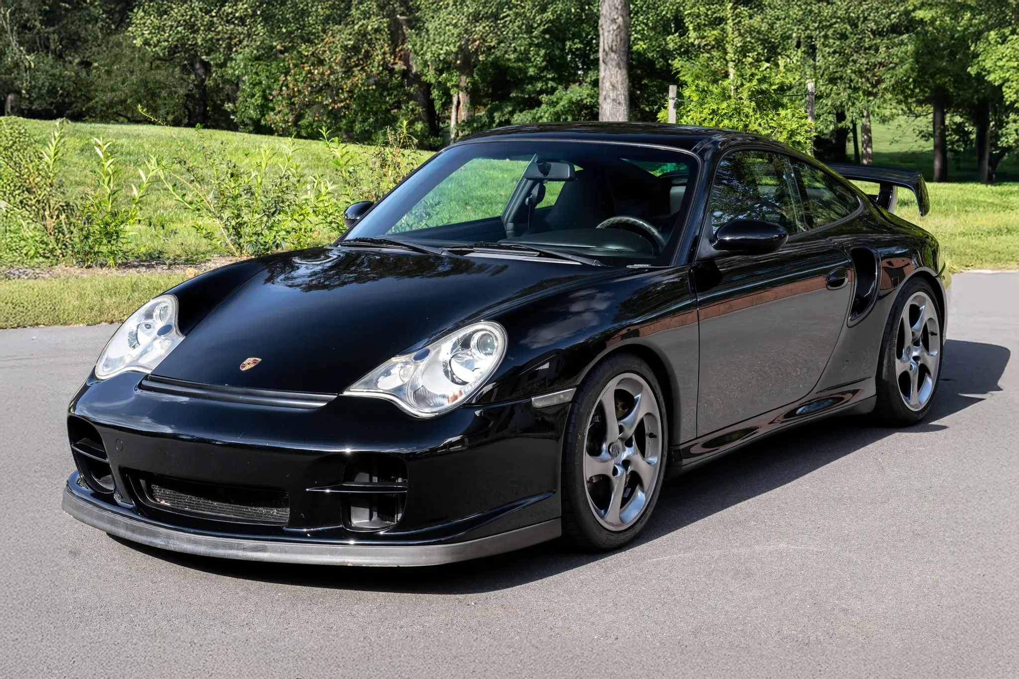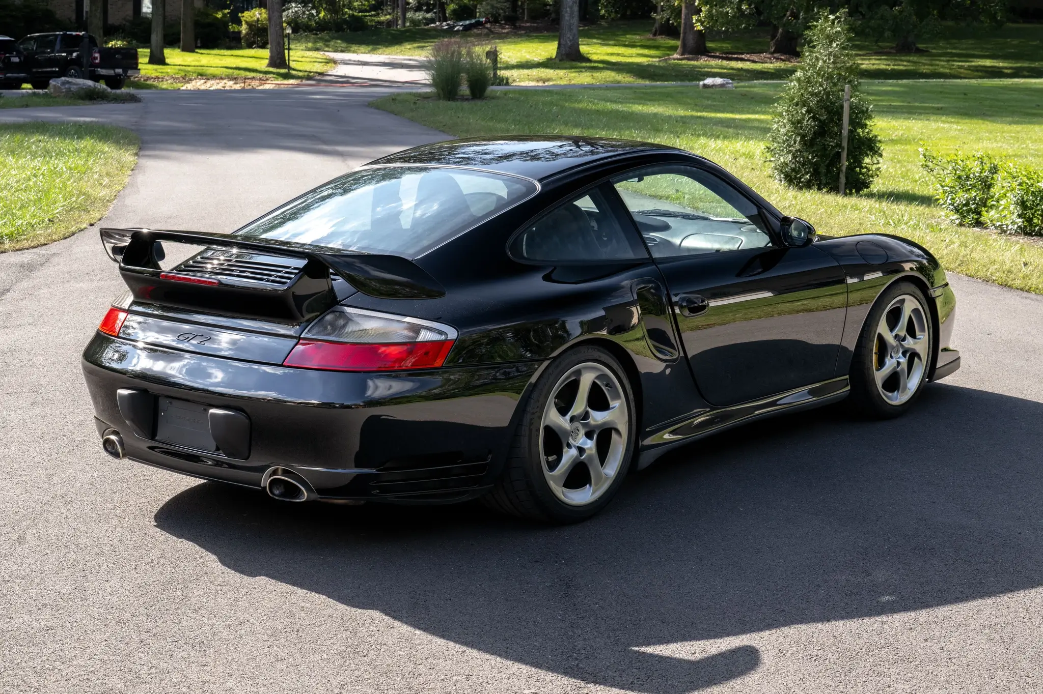One of just 303 examples reportedly delivered to the United States, this 2002 GT2 is finished in Black over a matching interior and was optioned with aluminum instrument dials, a carbon fiber and leather-trimmed three-spoke steering wheel, carbon and aluminum-accented shift and brake levers, and a silver-painted rear center console.