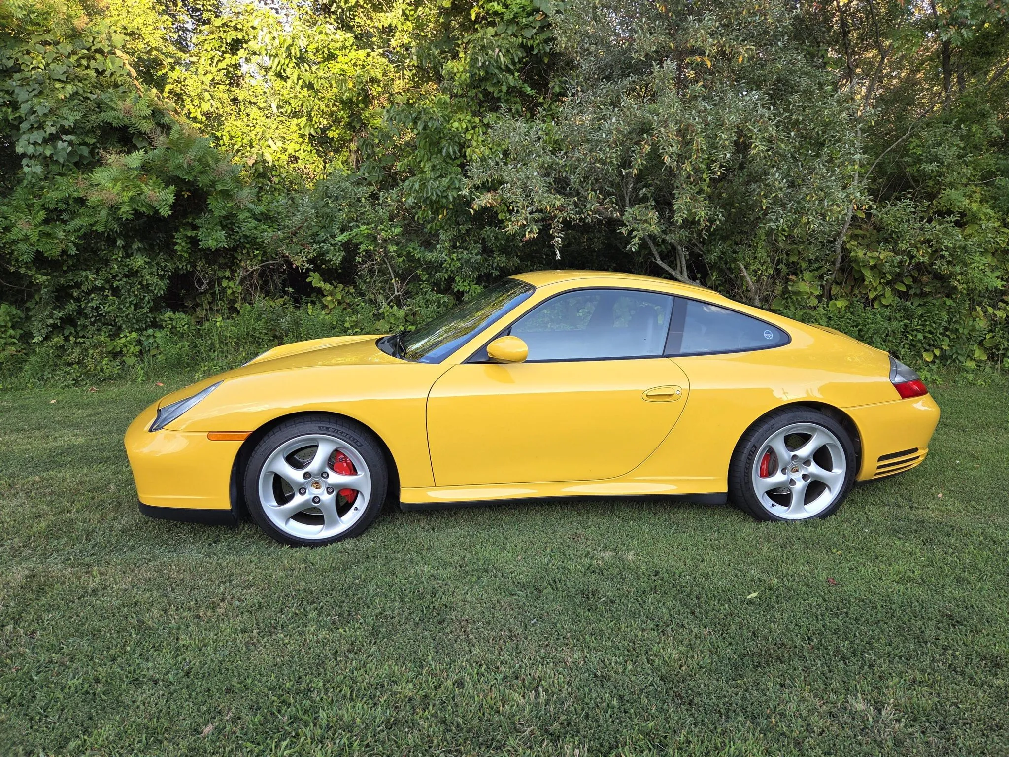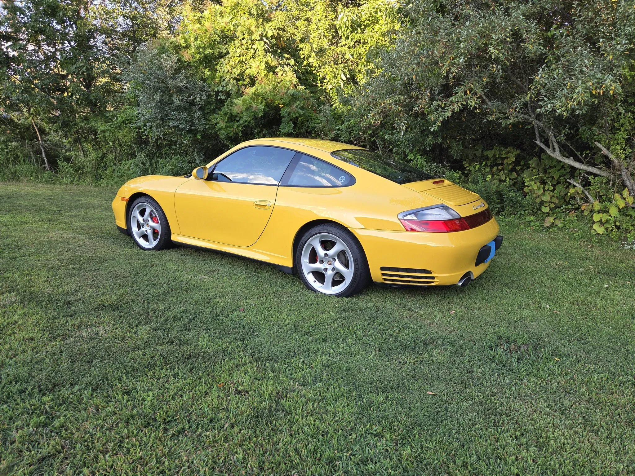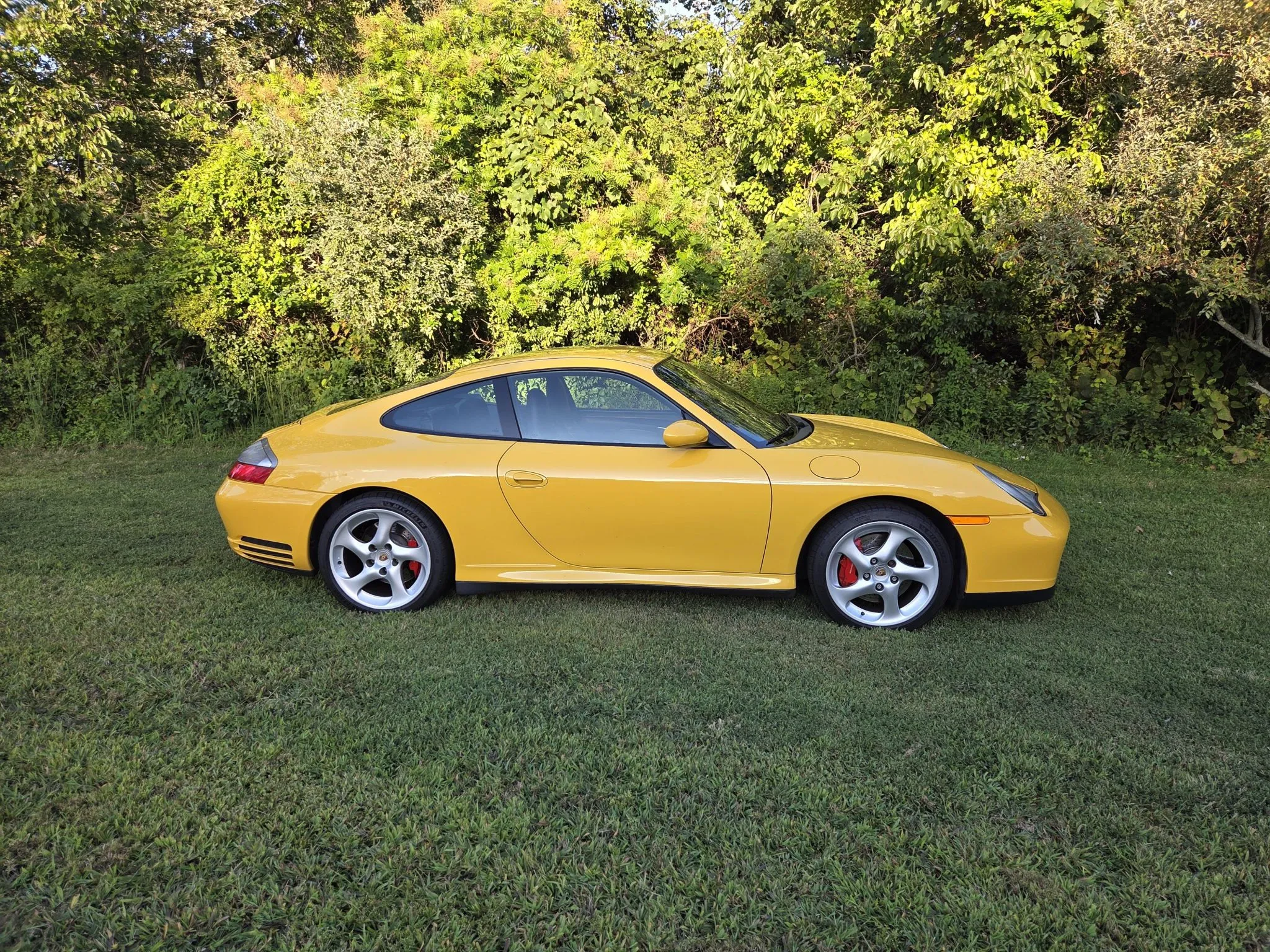 This 2003 Porsche 911 Carrera 4S is a Speed Yellow-finished coupe that was purchased by the seller in 2025 and has 66k miles following registration history in Pennsylvania, New York, and New Jersey.