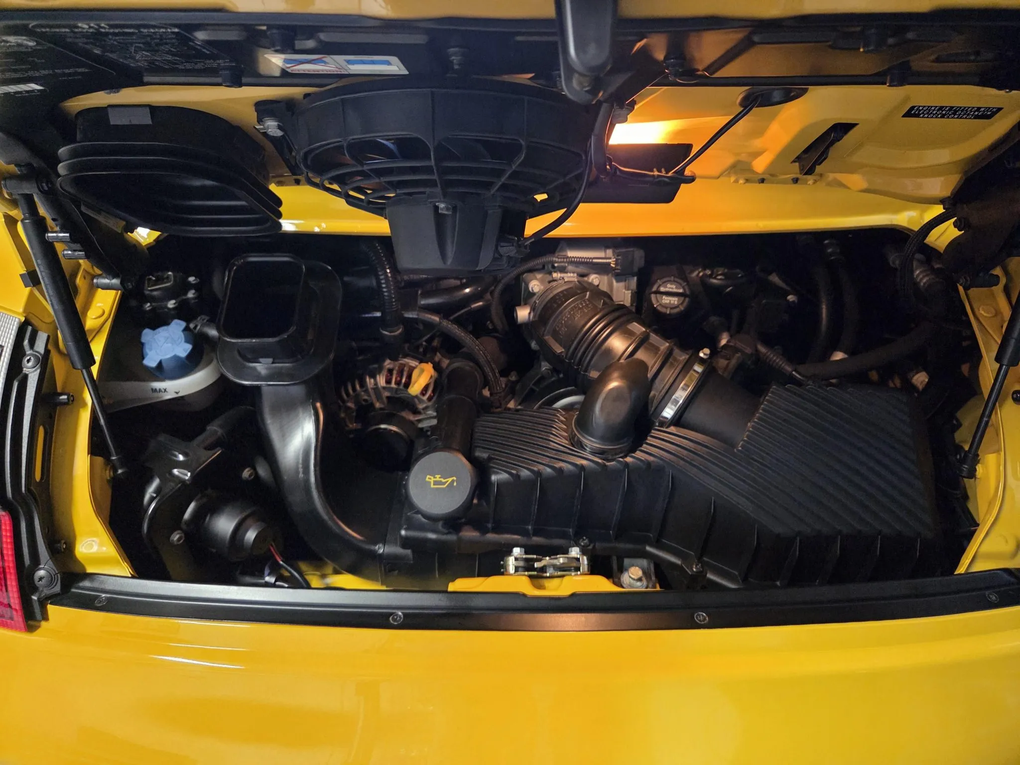 It is powered by a replacement 3.6-liter flat-six that was replaced in 2009, and shifting is through a six-speed manual transaxle. Features include a speed-activated rear spoiler, a sunroof, xenon headlights, fog lights, 18″ Turbo-look wheels, heated power-adjustable front seats, a CDR23 stereo, a Bose sound system, and automatic climate control.