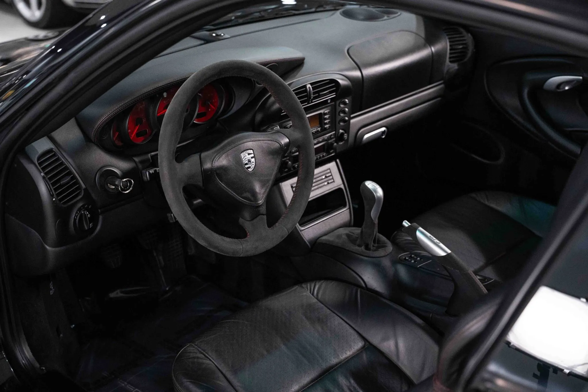 This 2004 Porsche 911 GT3 has 14k miles following time spent with three registered owners since new. It is finished in Basalt Black Metallic over black full leather, and it is powered by a 3.6-liter Mezger flat-six linked with a six-speed manual transaxle and a limited-slip differential.