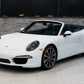 Powered by a 3.8-liter flat-six paired with a six-speed manual transaxle, the car is equipped with the Bose High-End Sound, Power Seat, and Sport Chrono Plus packages as well as a Sport shifter, bi-xenon headlights, heated front seats, 19″ Carrera Classic wheels, a Cocoa soft top, and PCM with navigation.