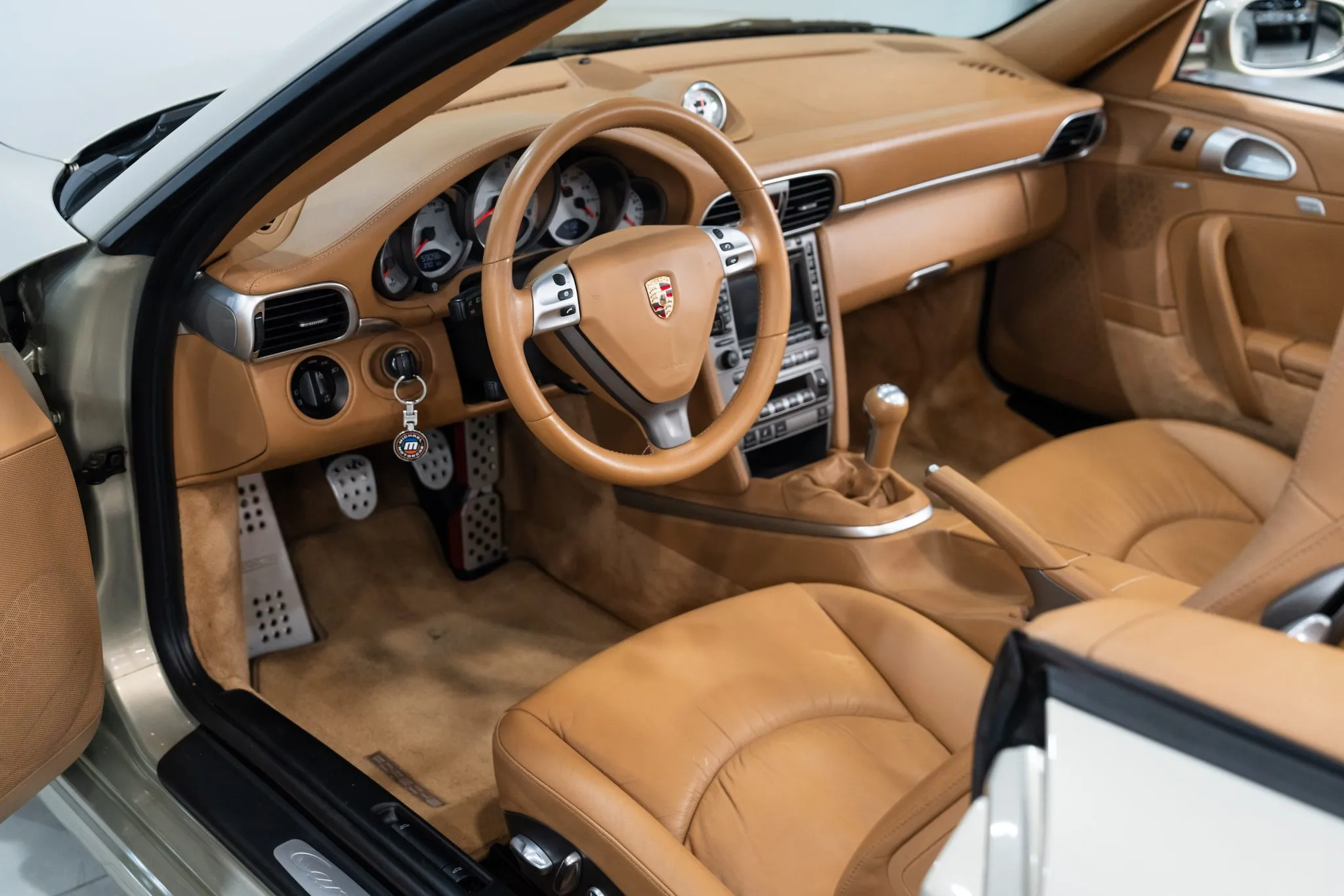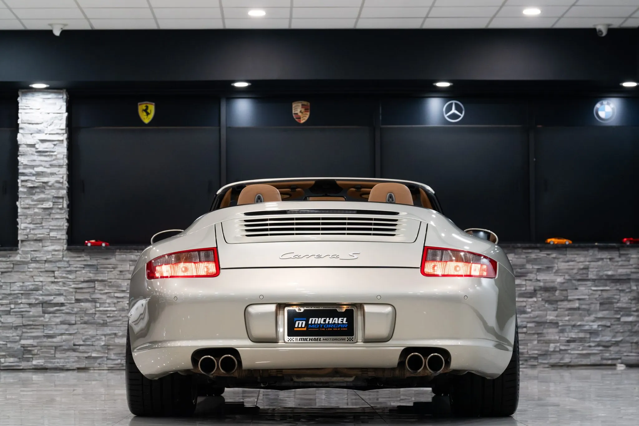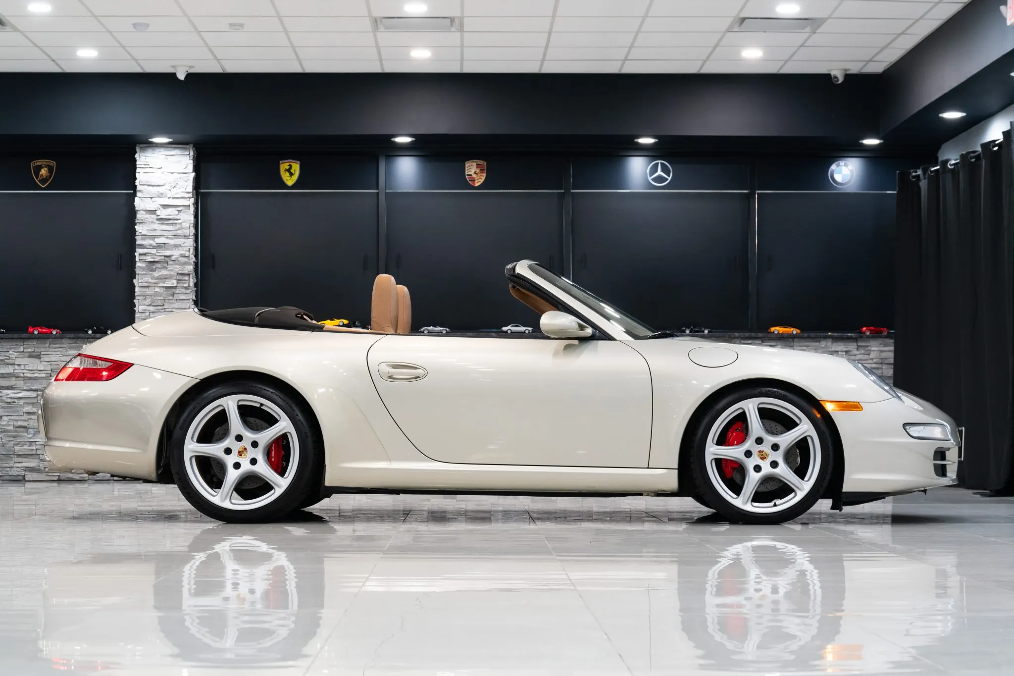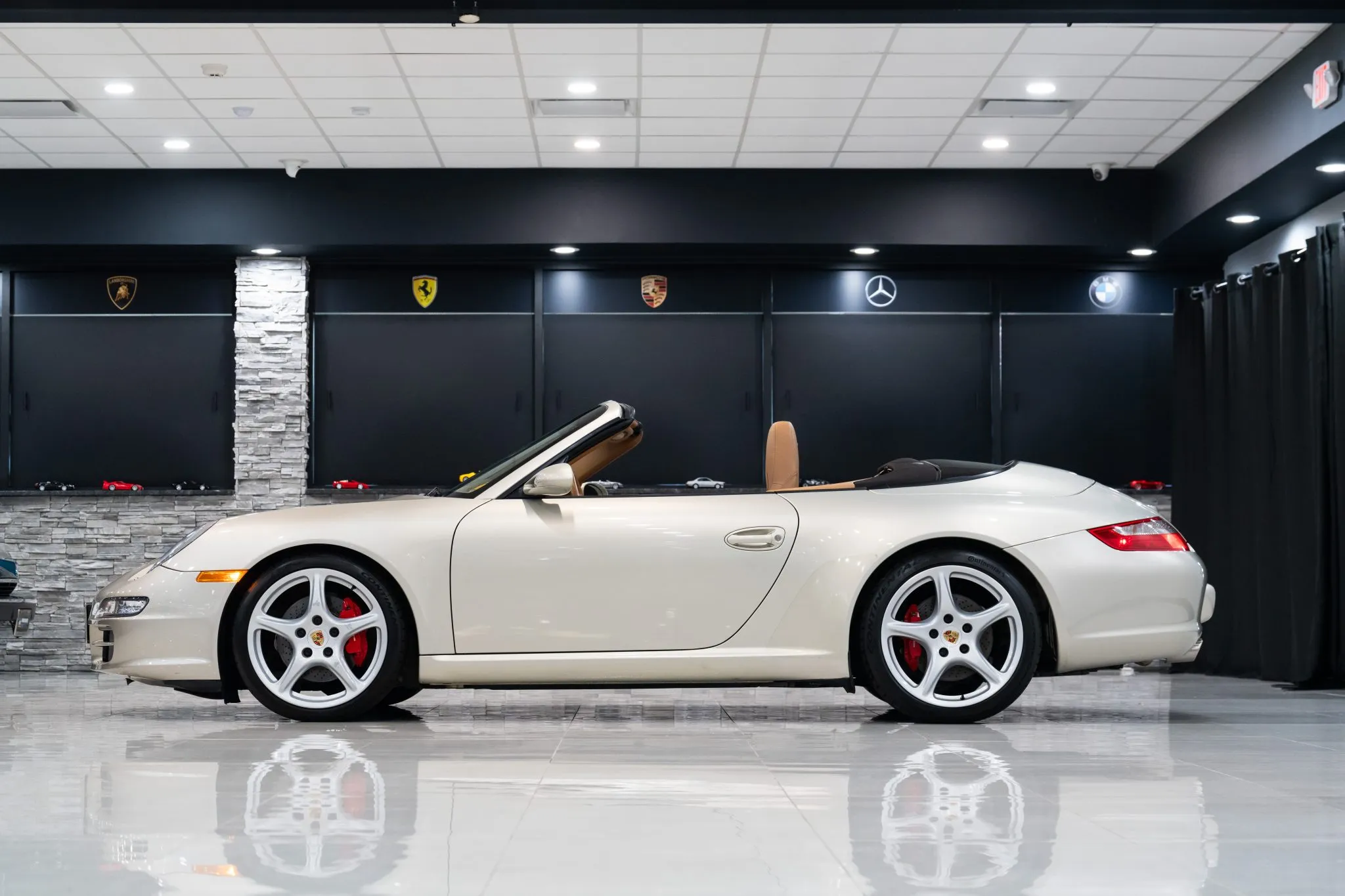 This 2005 Porsche 911 Carrera S cabriolet is finished in paint-to-sample Prosecco Metallic over Sand Beige Full Supple leather and has 59k miles following history in Virginia, Arkansas, Michigan, and Ontario, Canada.